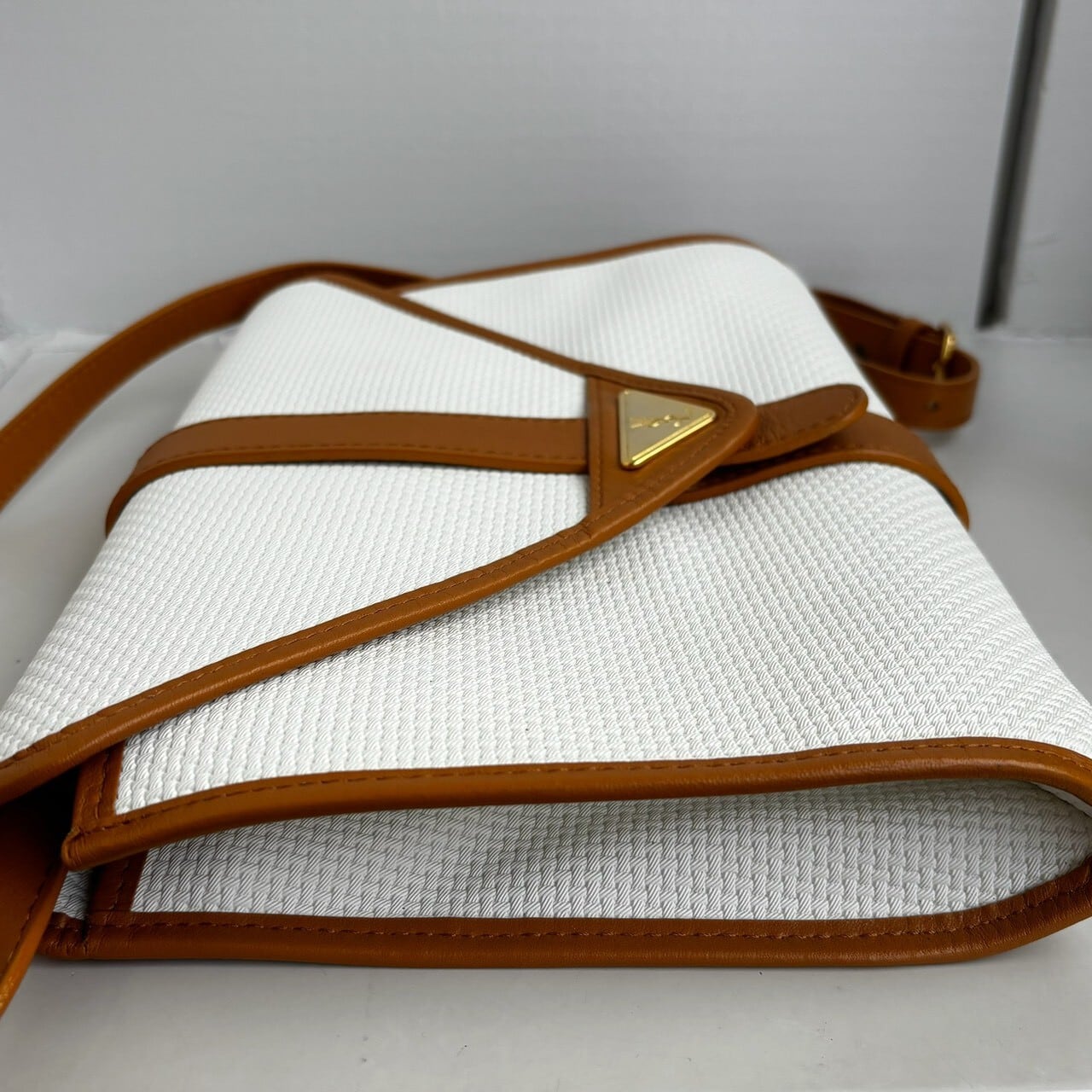 太めのショルダーとさりげないロゴ金具が上品な印象。
