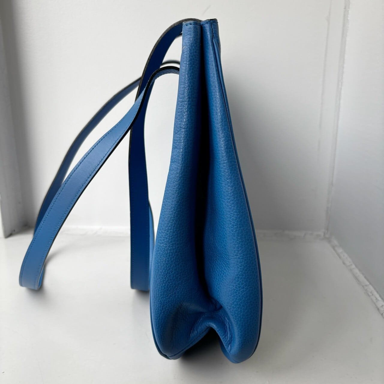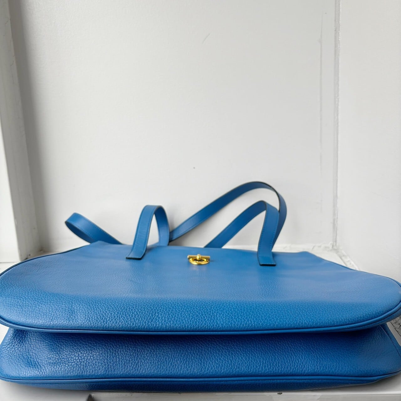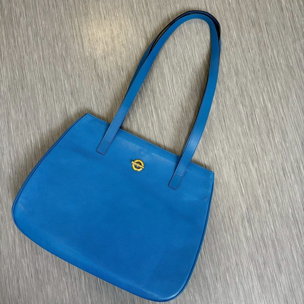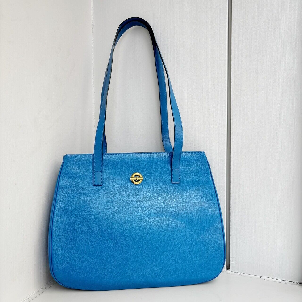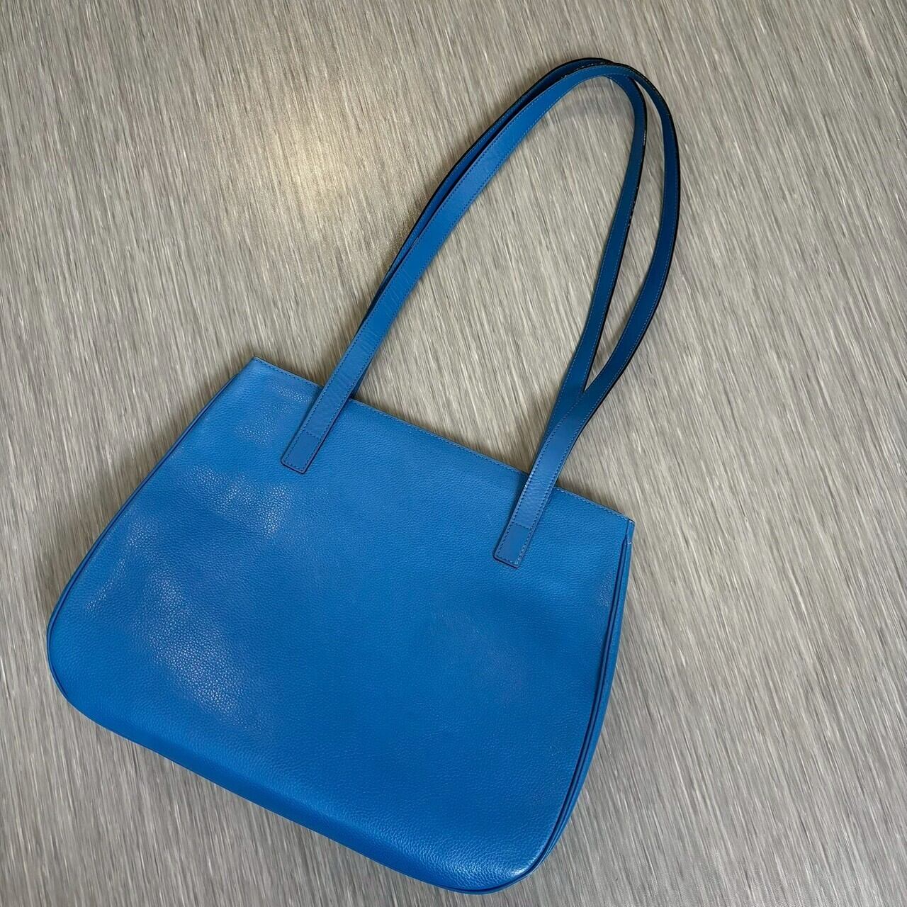鮮やかなロイヤルブルーが目を惹くCELINEのレザートートバッグ。