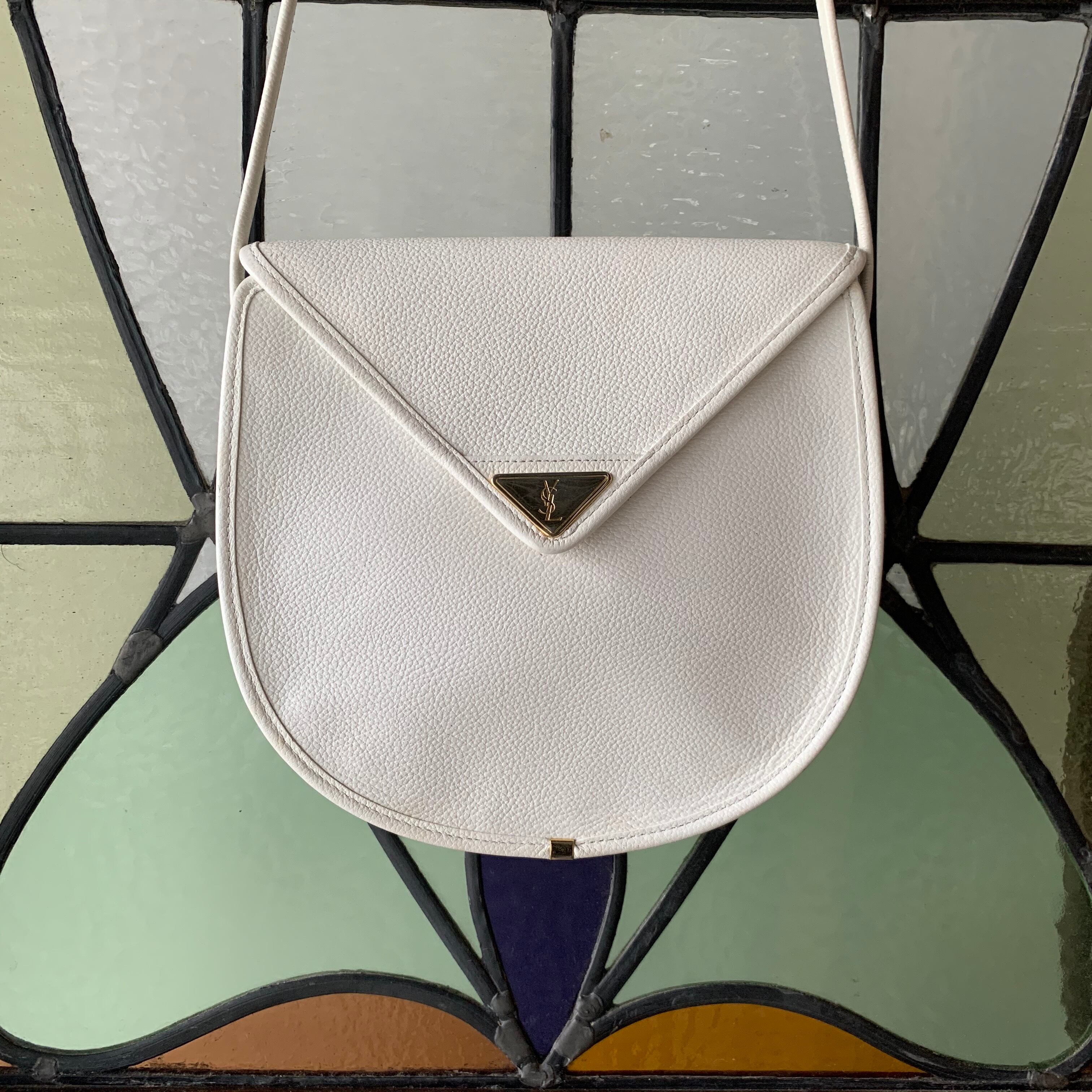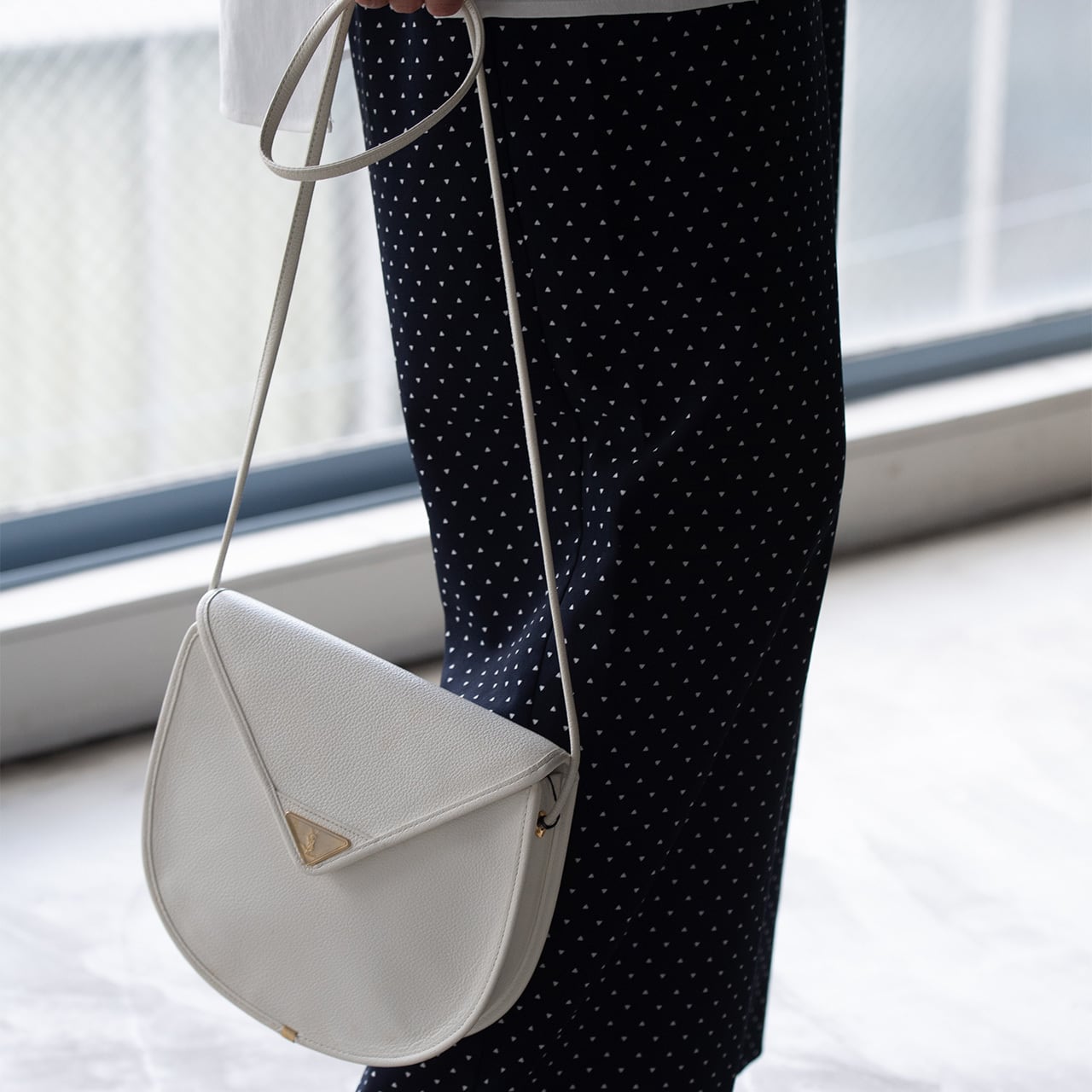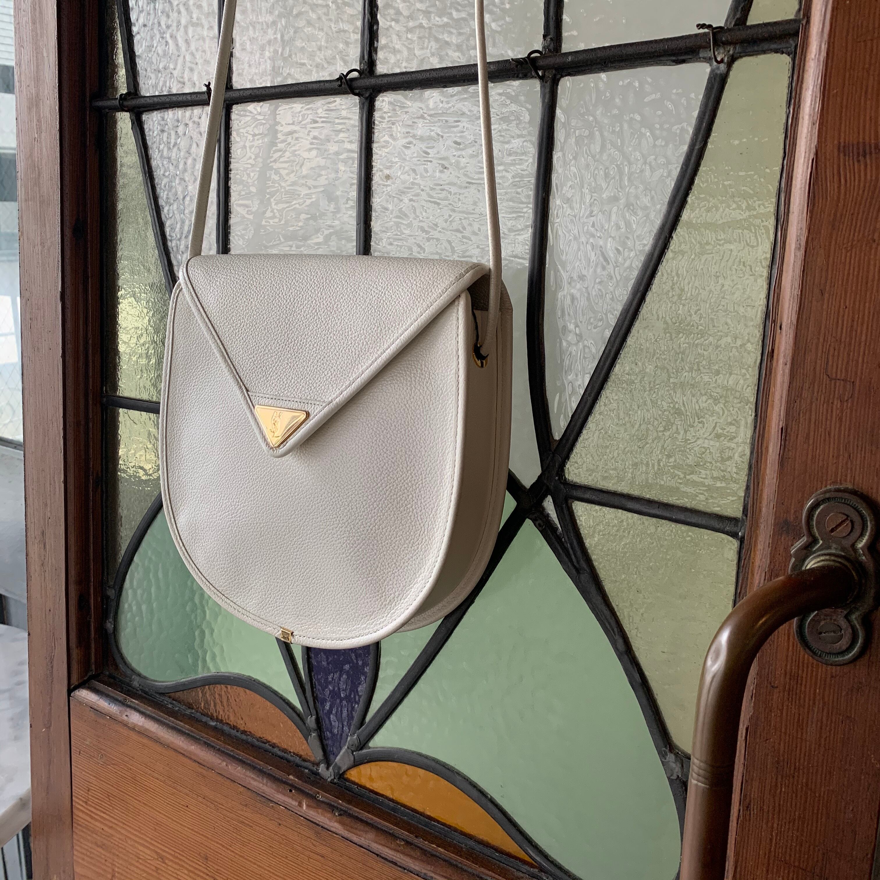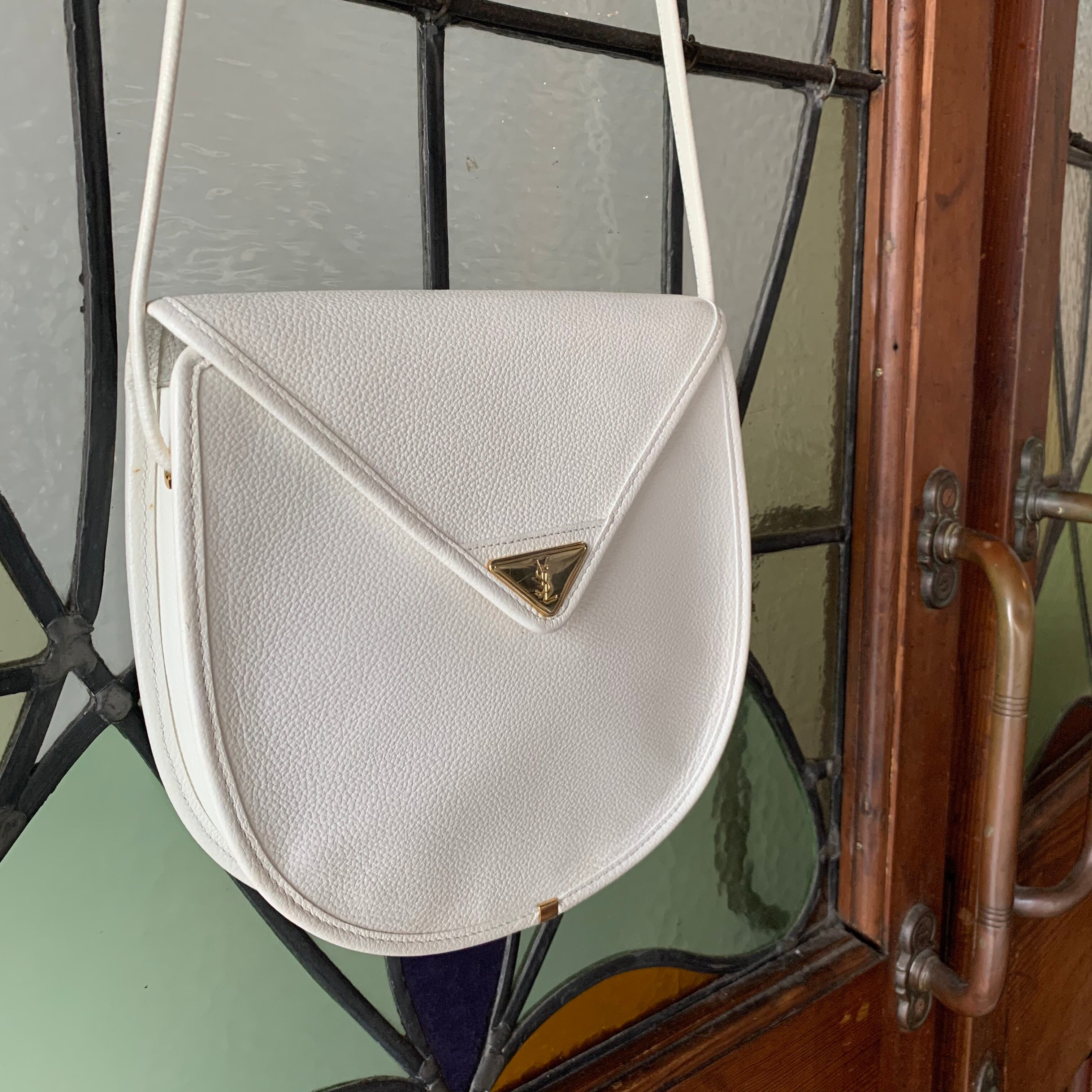 ホワイトのボディが目を引くYSLのショルダーバッグ。