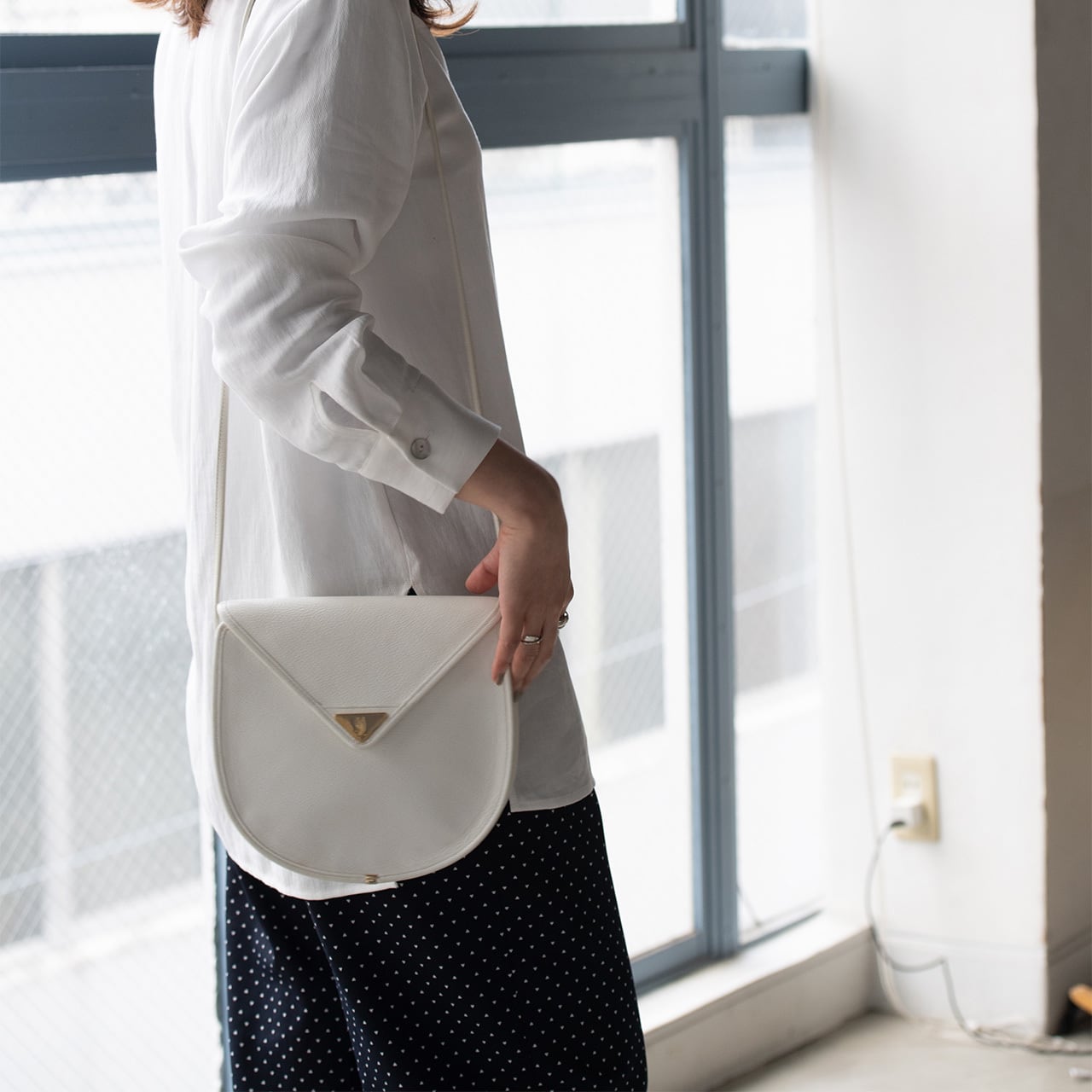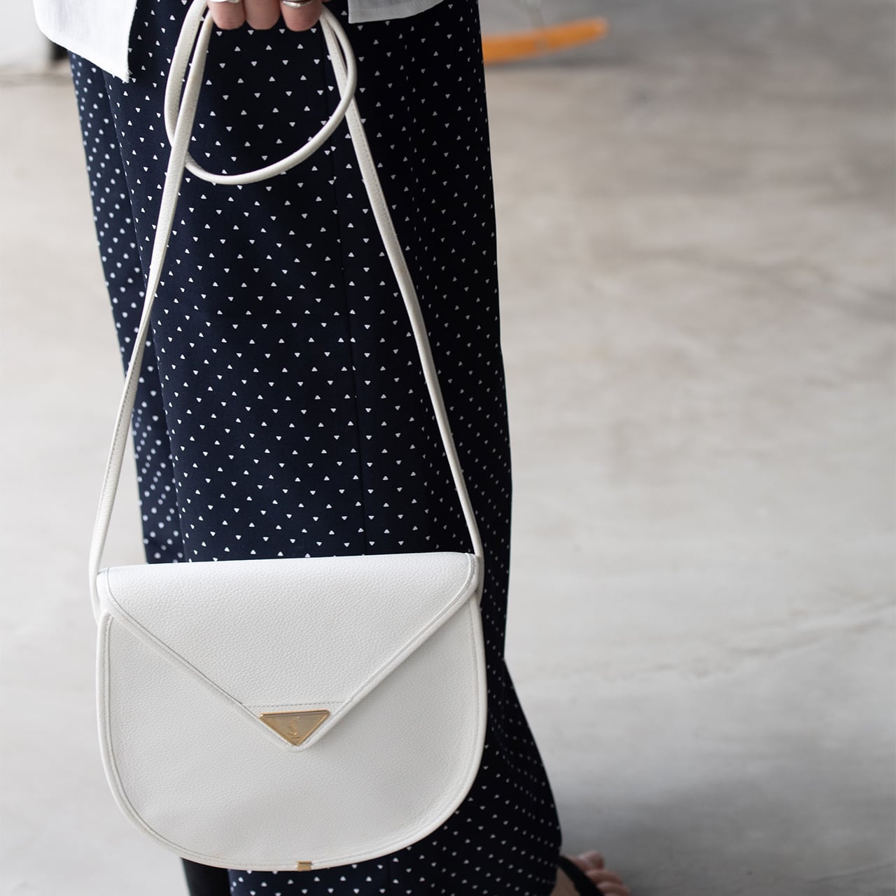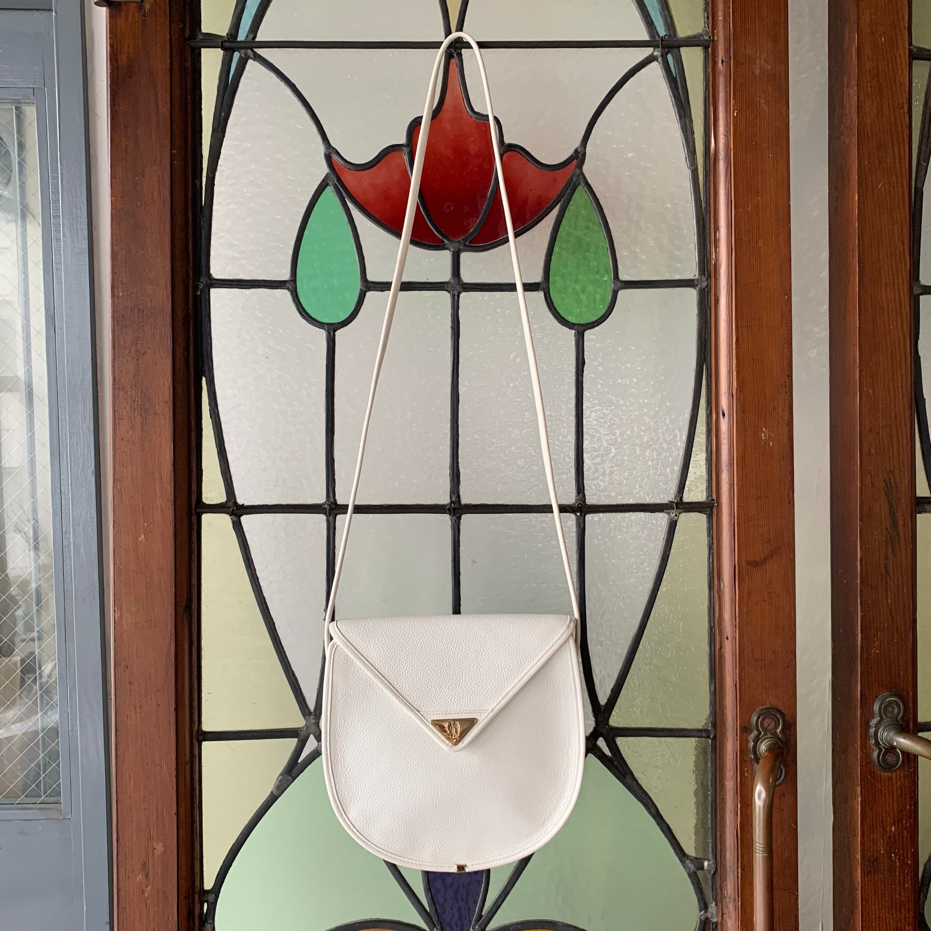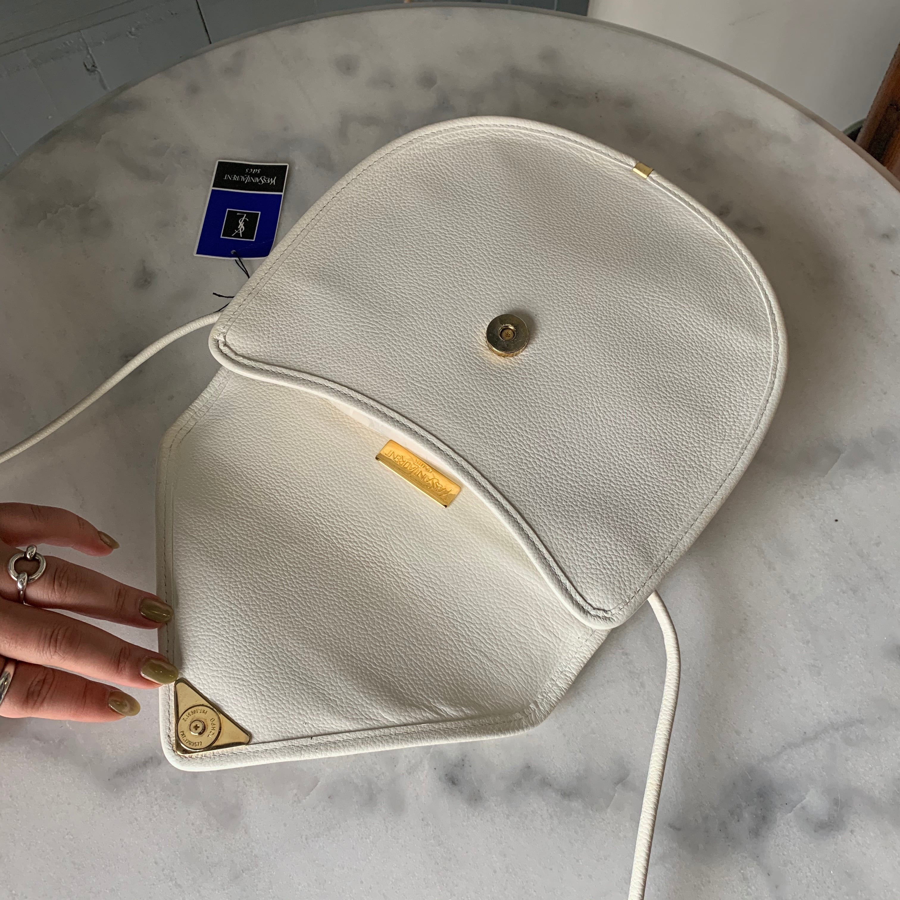 ホワイトのボディが目を引くYSLのショルダーバッグ。