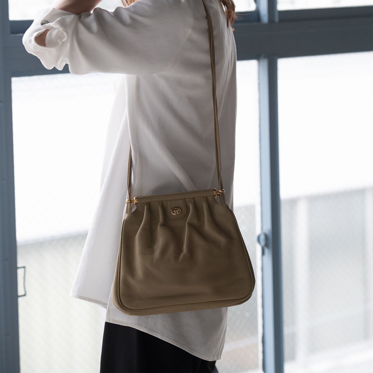 一見シンプルながま口タイプのショルダーバッグ。