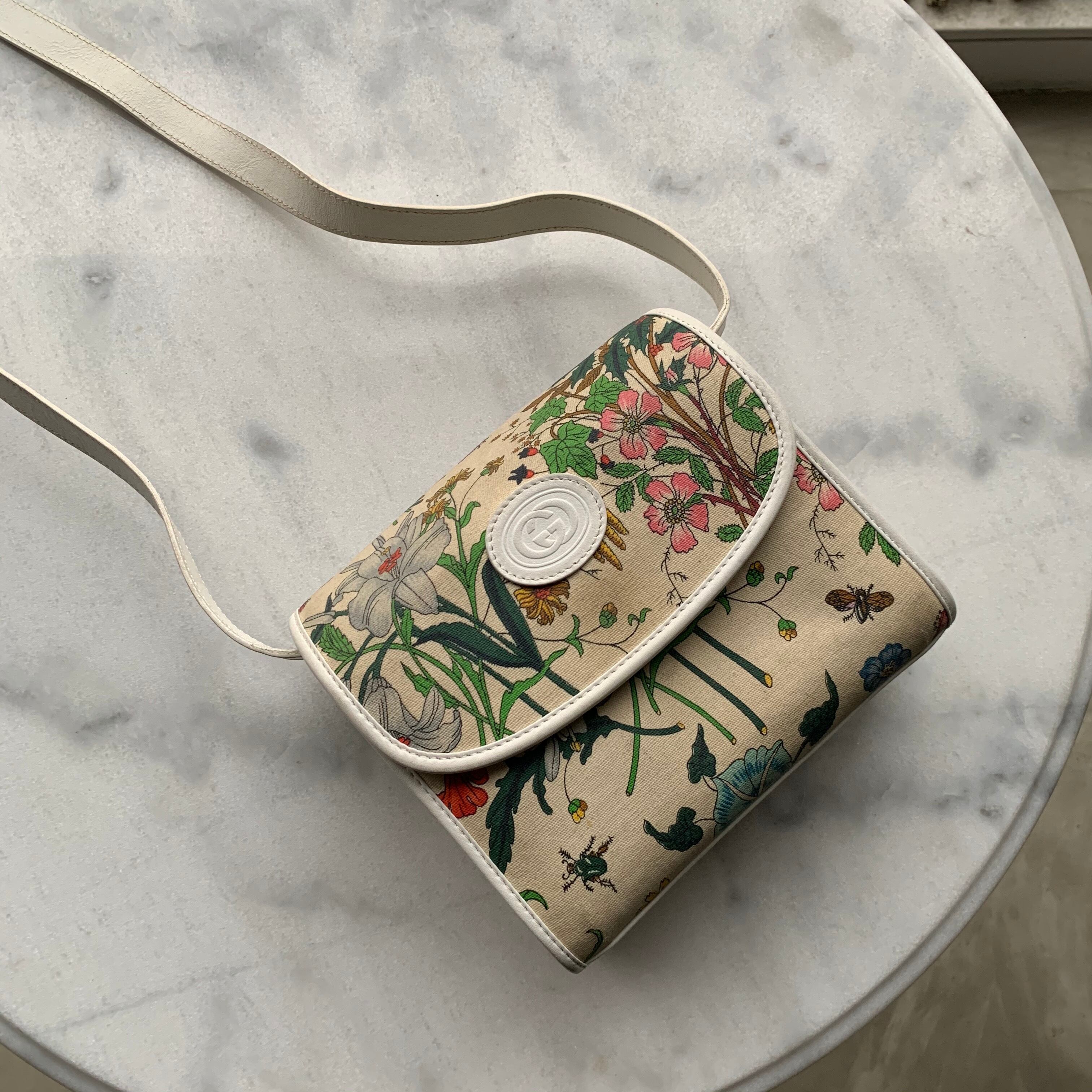 70年代~80年代GUCCIの代表作の一つ、フローラプリントが施されたバッグ。