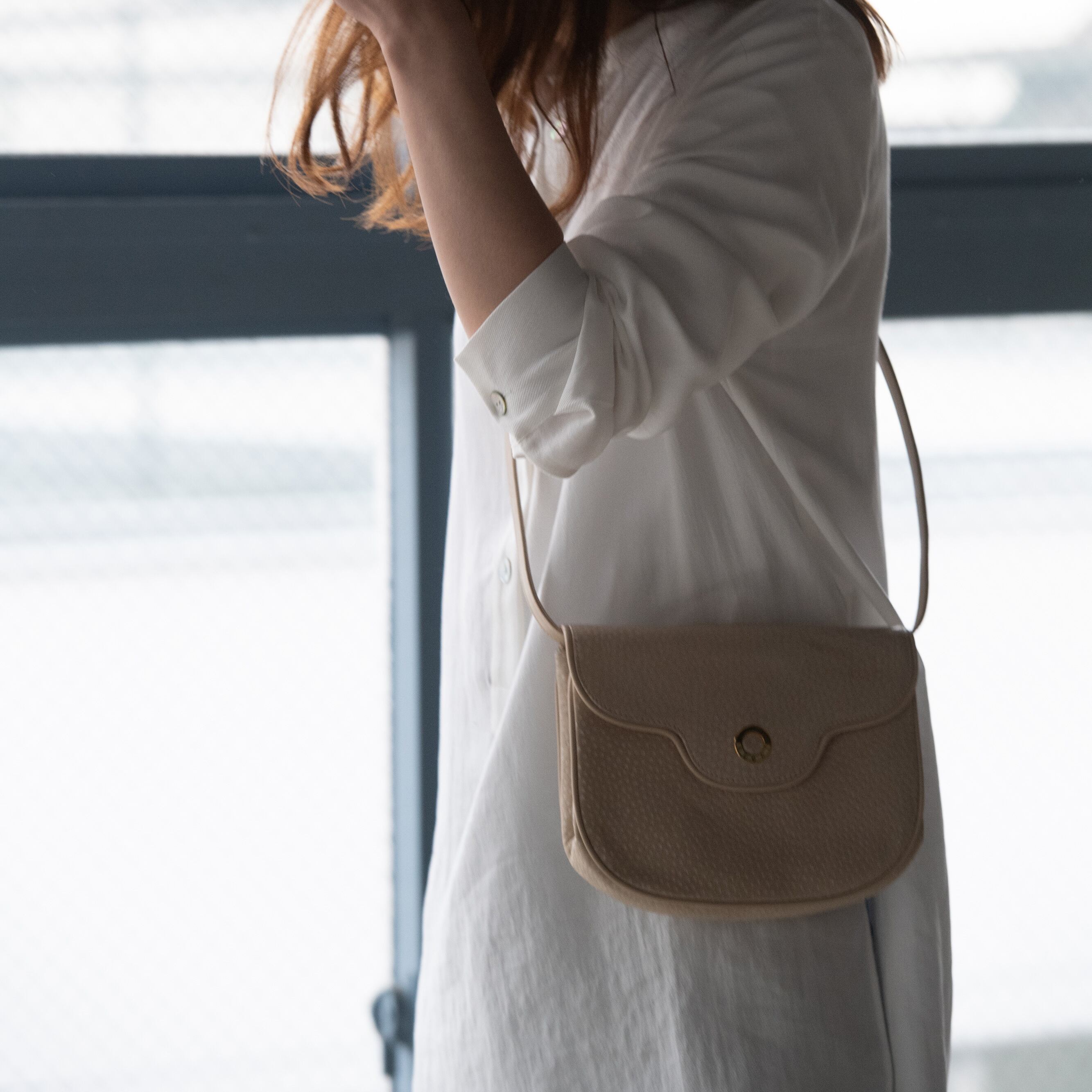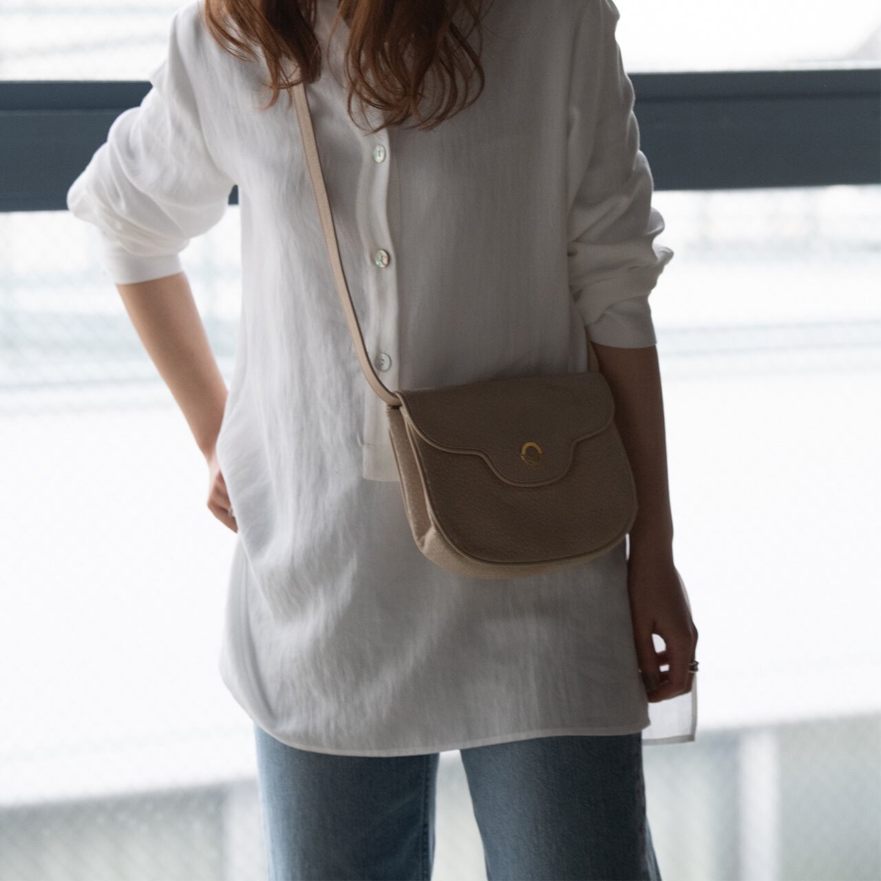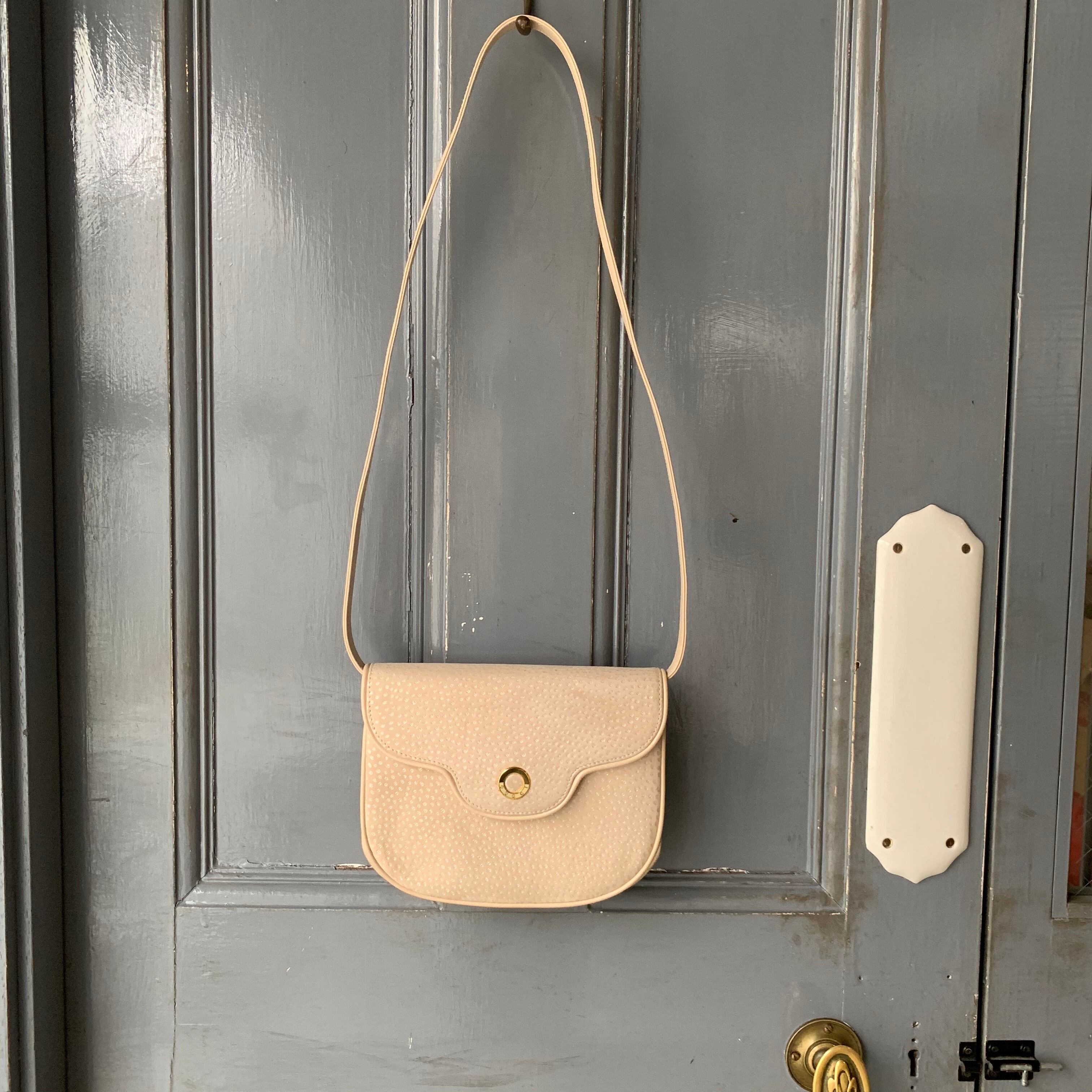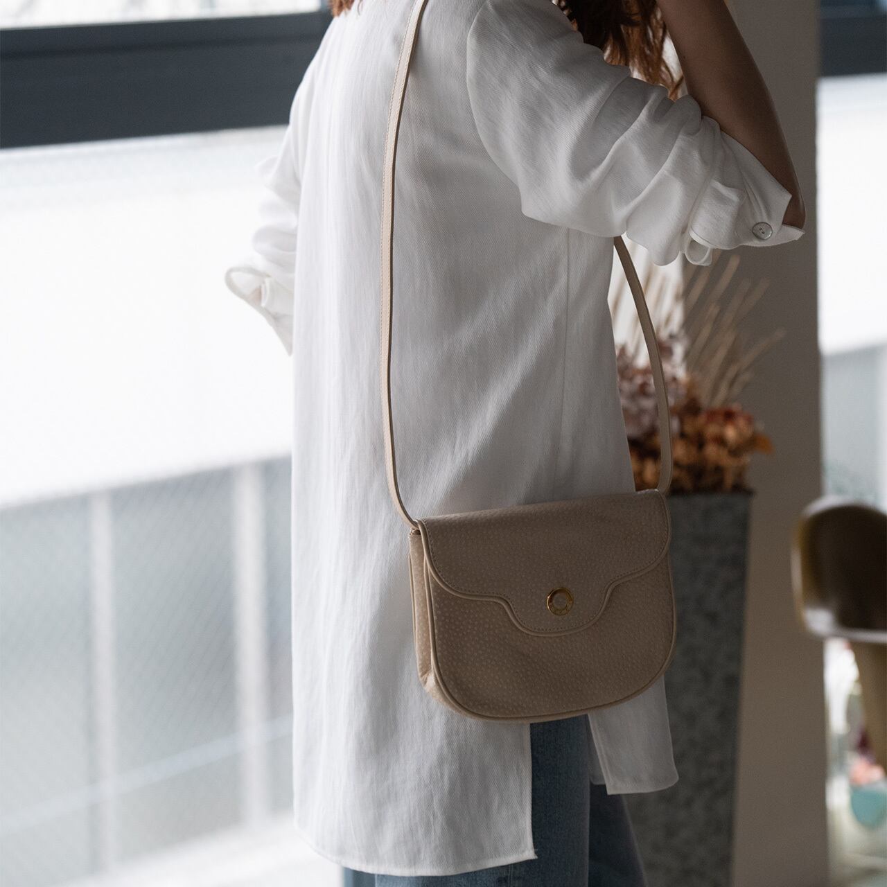 優しいクリームカラーが、柔らかな印象を与えるショルダーバッグ。