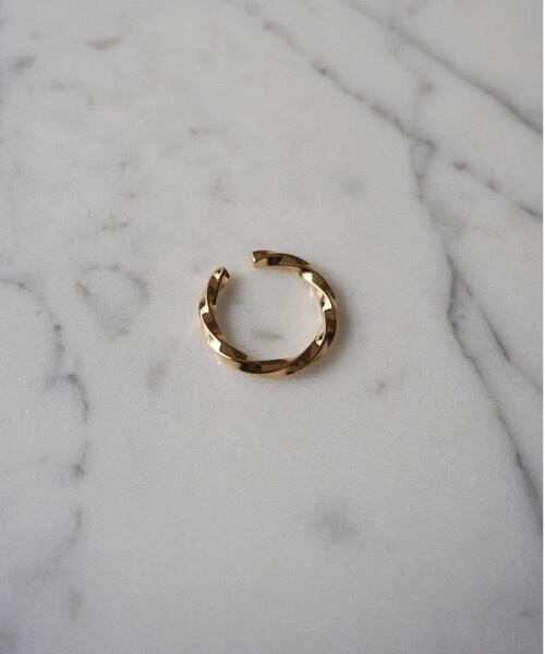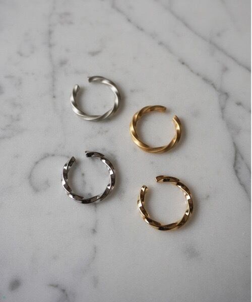 シンプルなフープにねじりを加えて自然な陰影を作り出したメタルイヤーカフ。