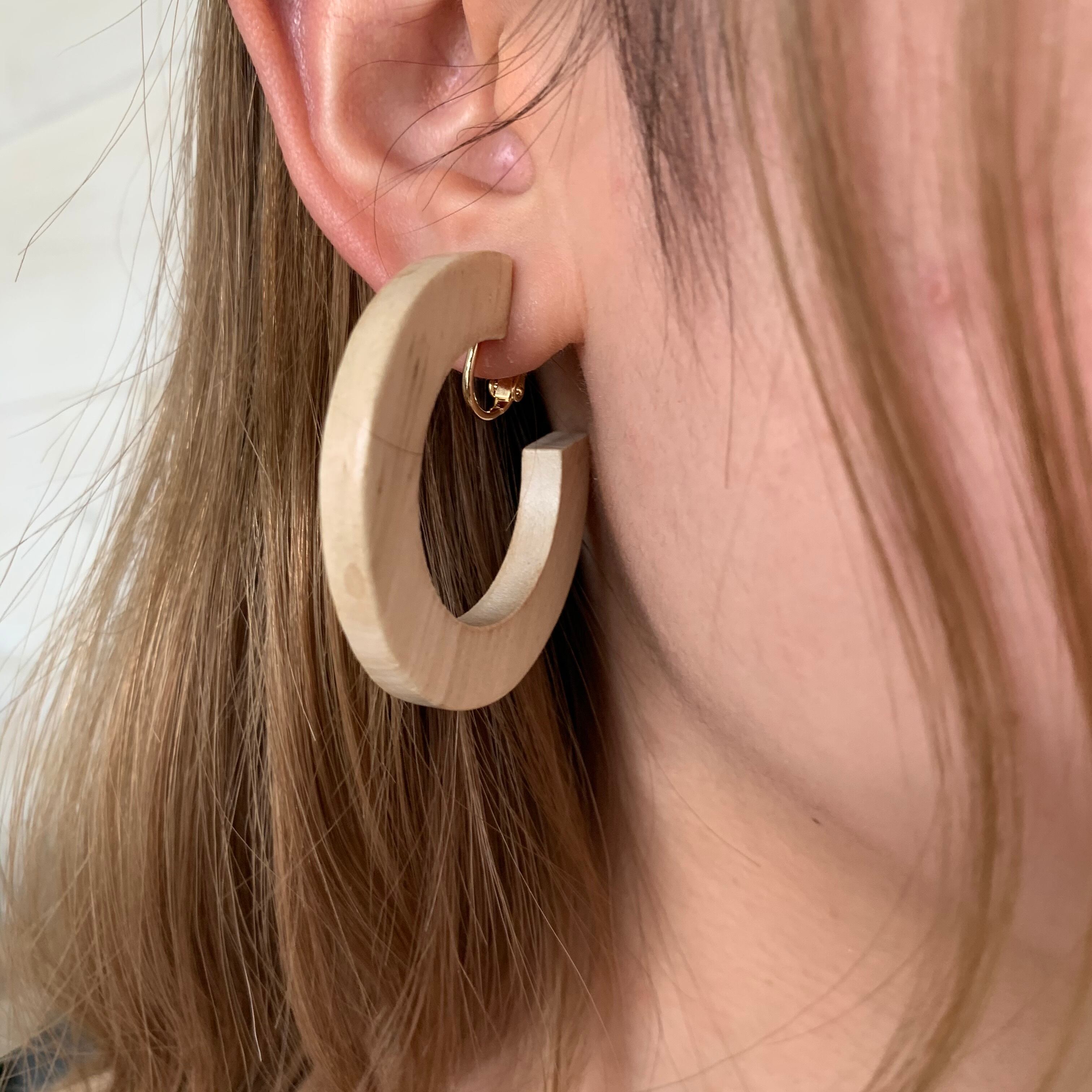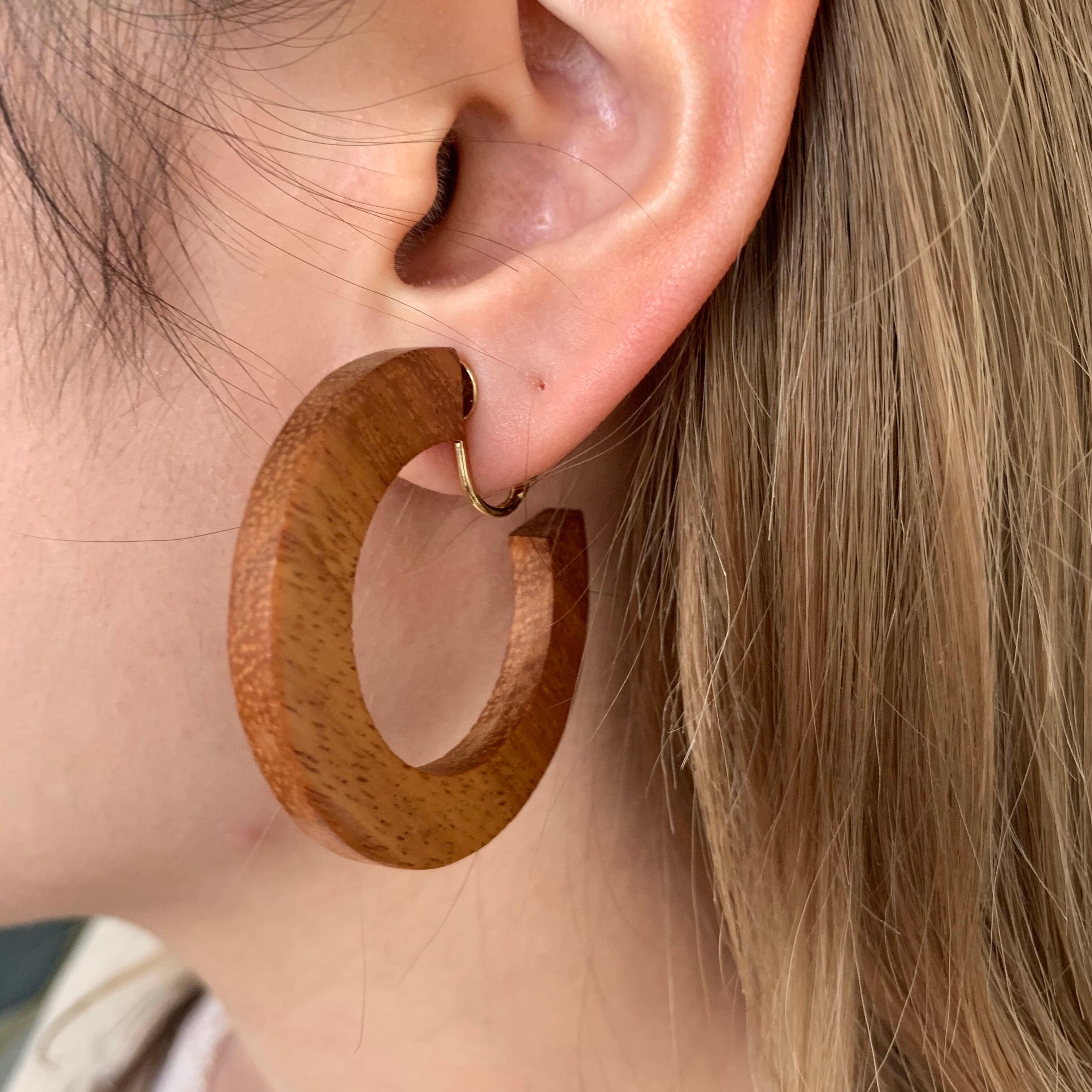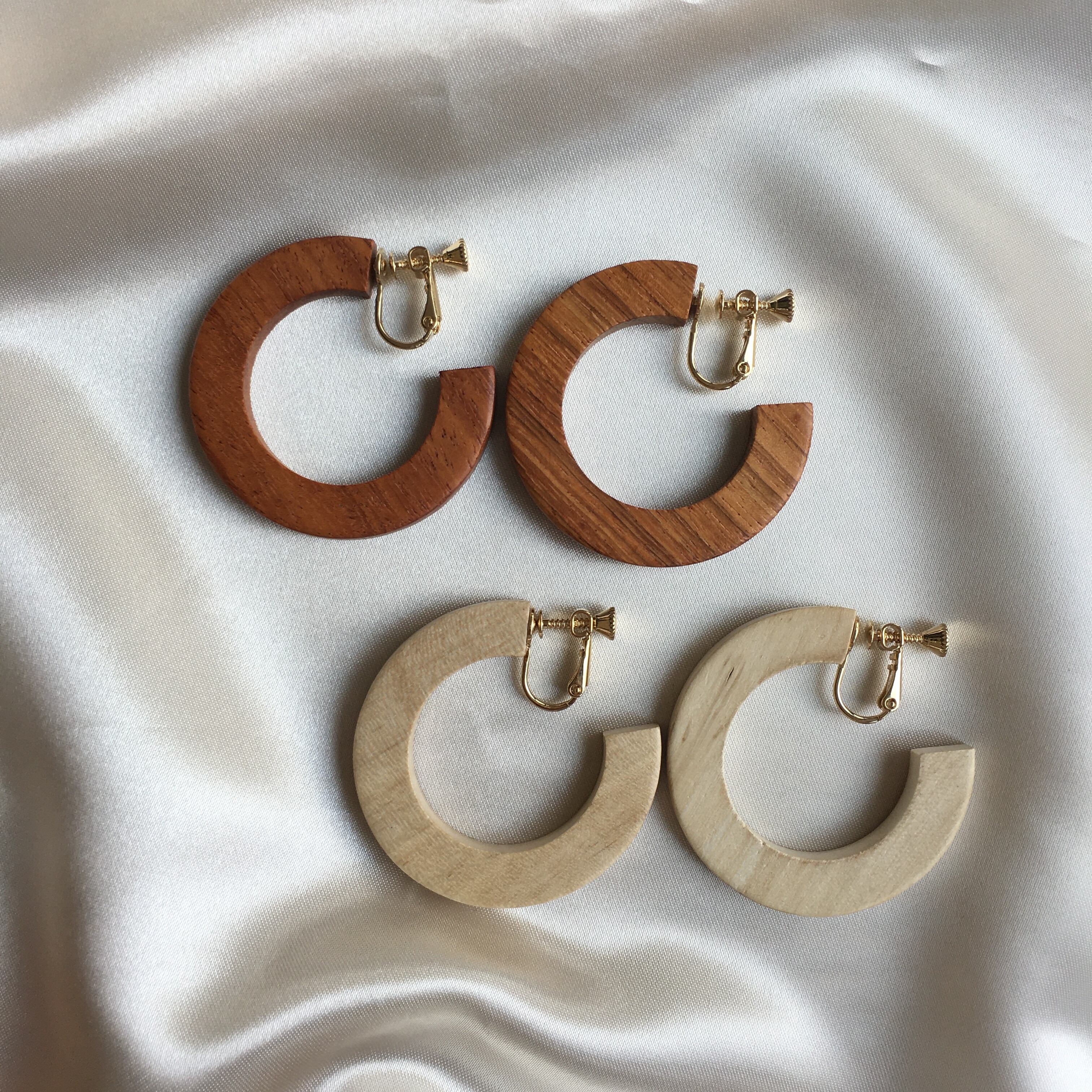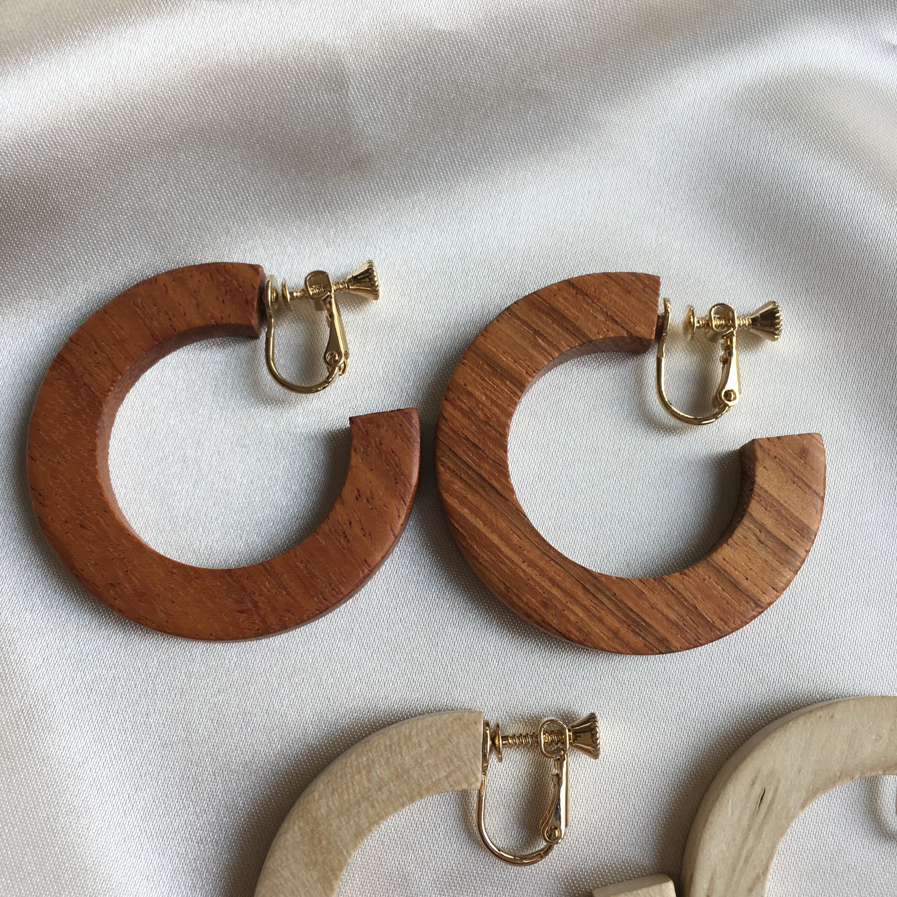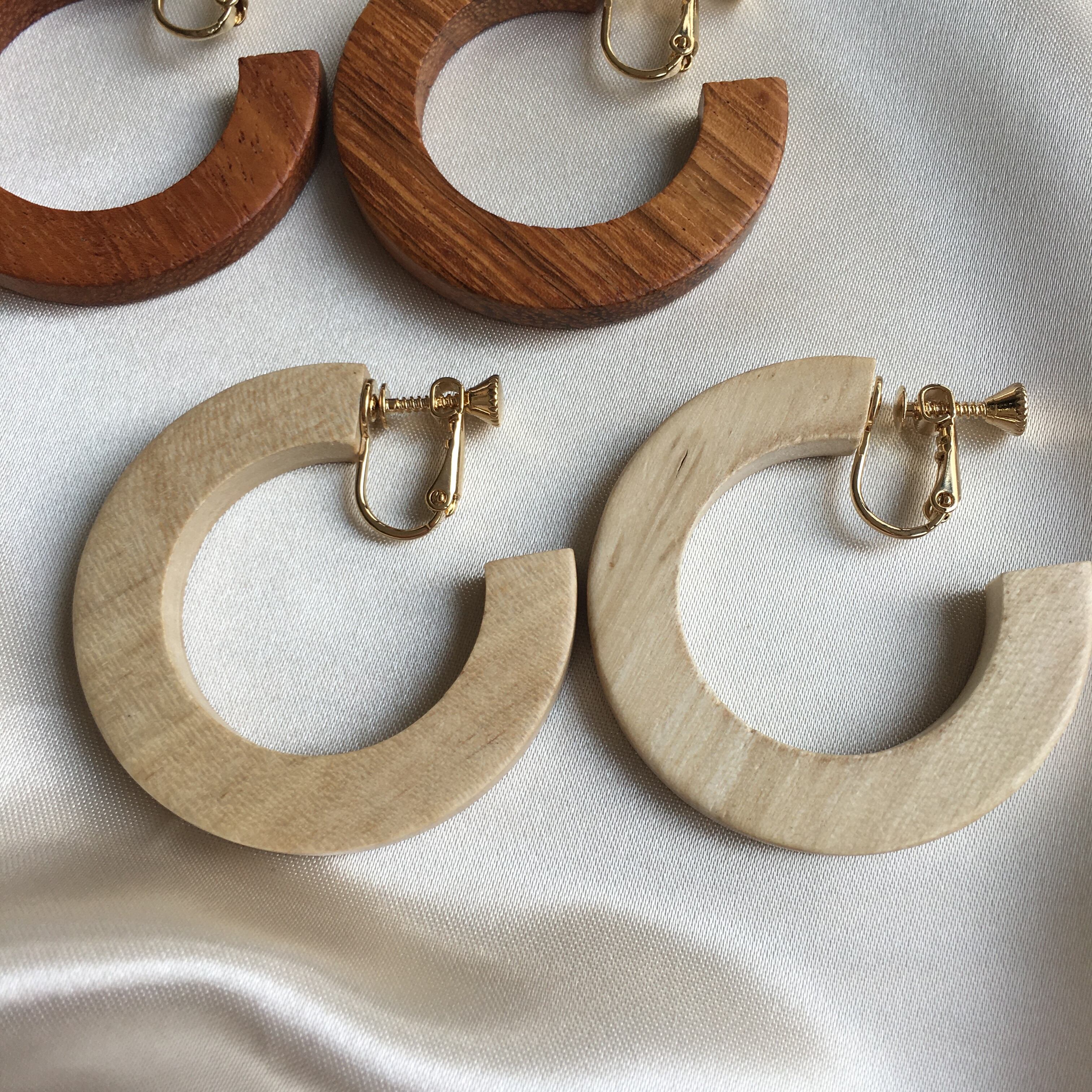 〈イヤリング〉ウッド フープ イヤリング E-012
