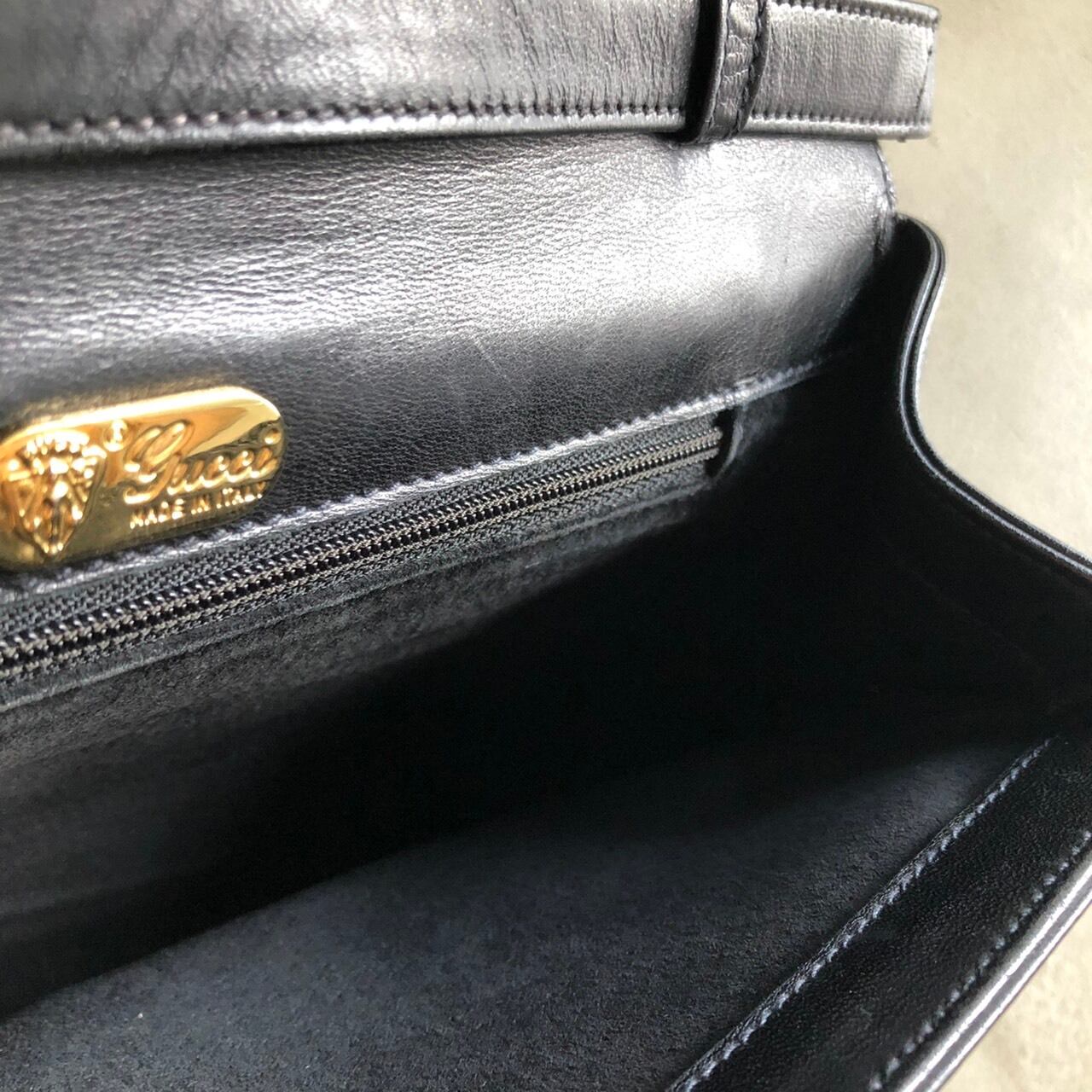 クラシカルな印象のGUCCIのブラックショルダーバッグ。