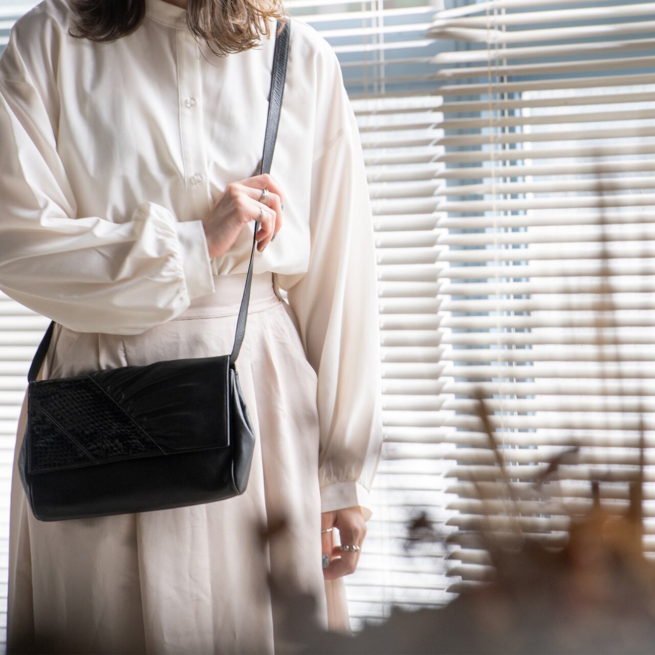 柔らかいスムースレザーにプリーツをあしらった中々出会えない珍しいデザインです。