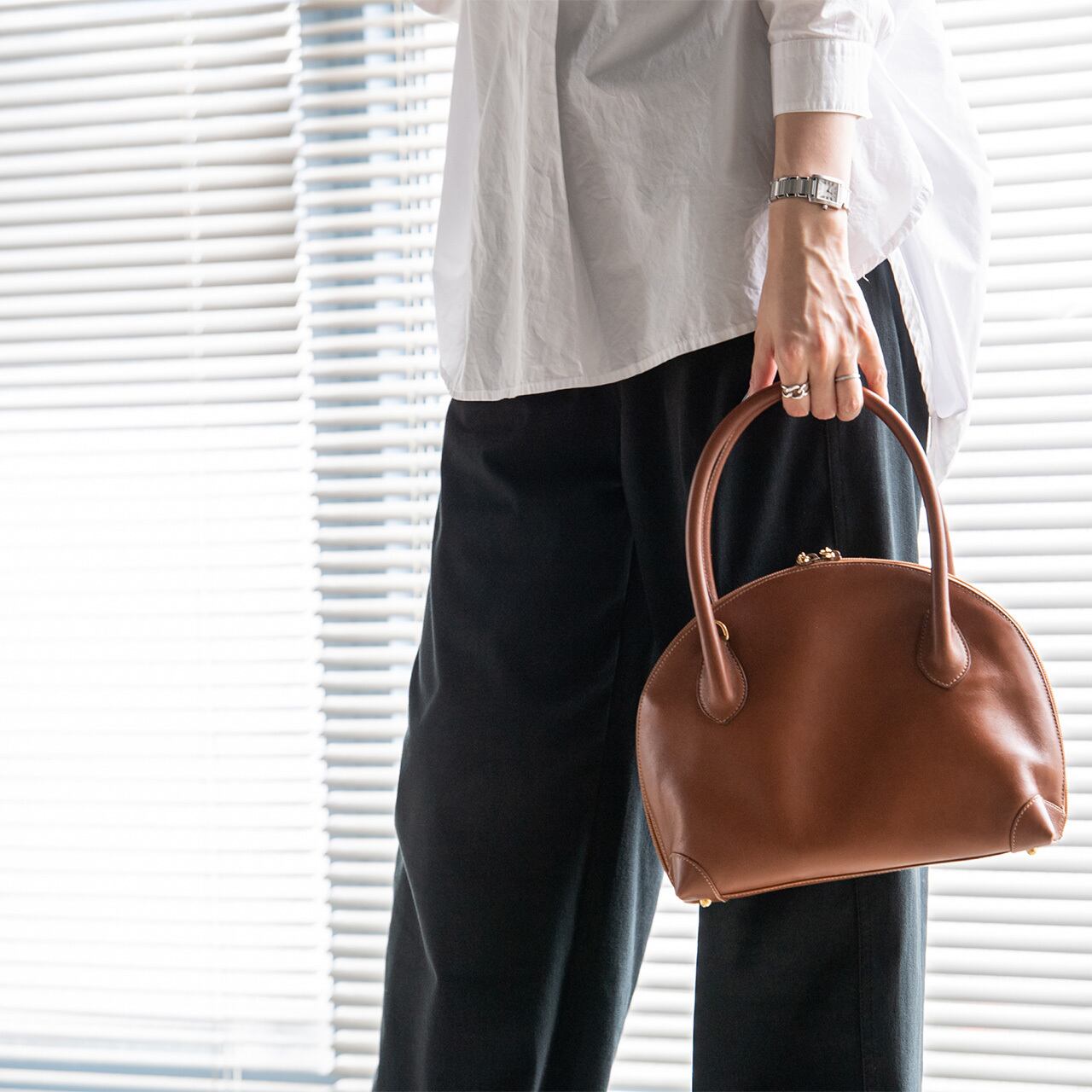 落ち着いたブラウンはスタイルを選ばないので、様々なシーンで重宝します。