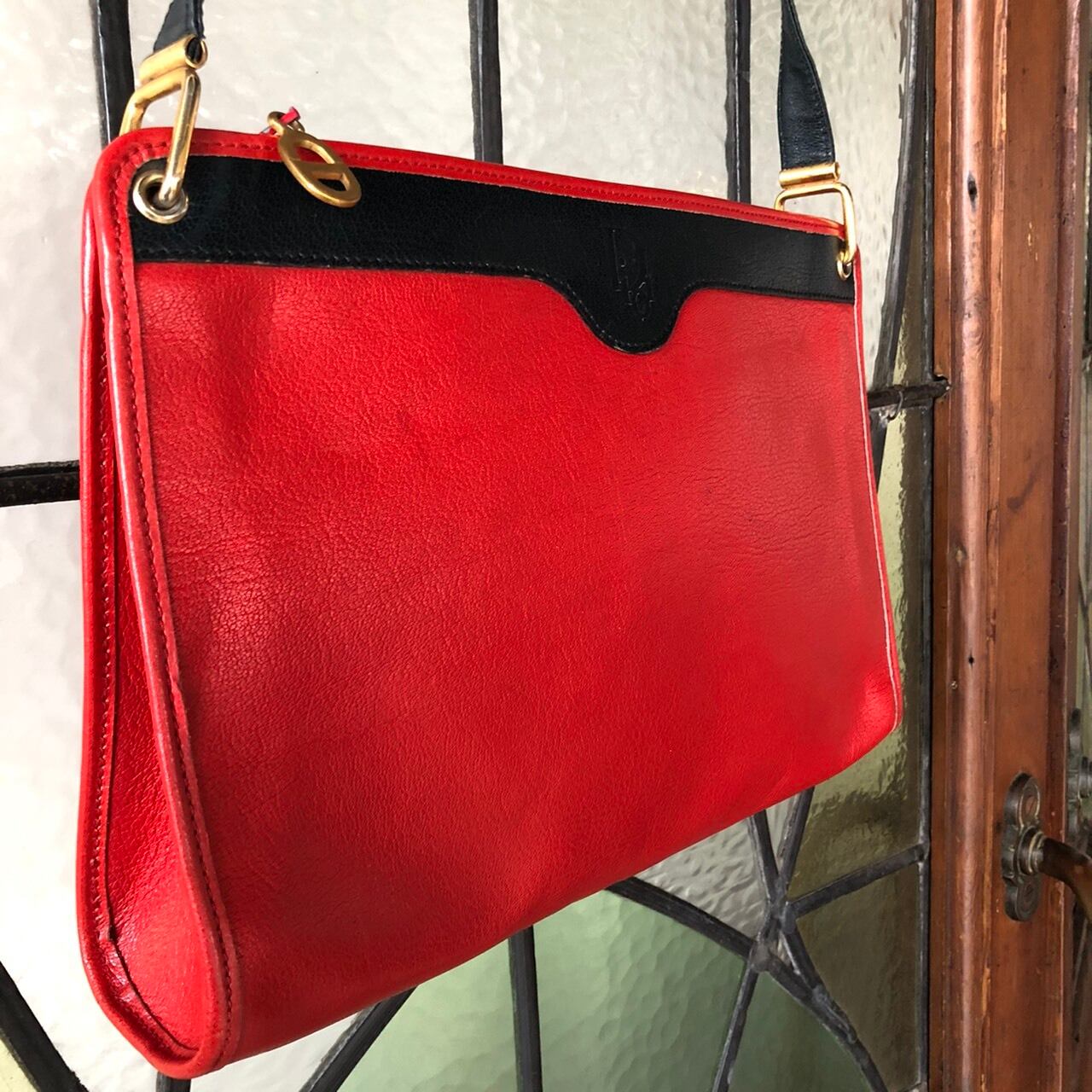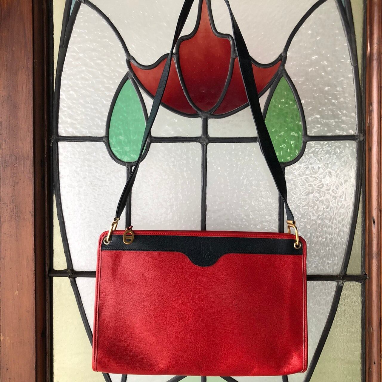 真っ赤なボディが目を引くvintage Diorのショルダーバッグ。