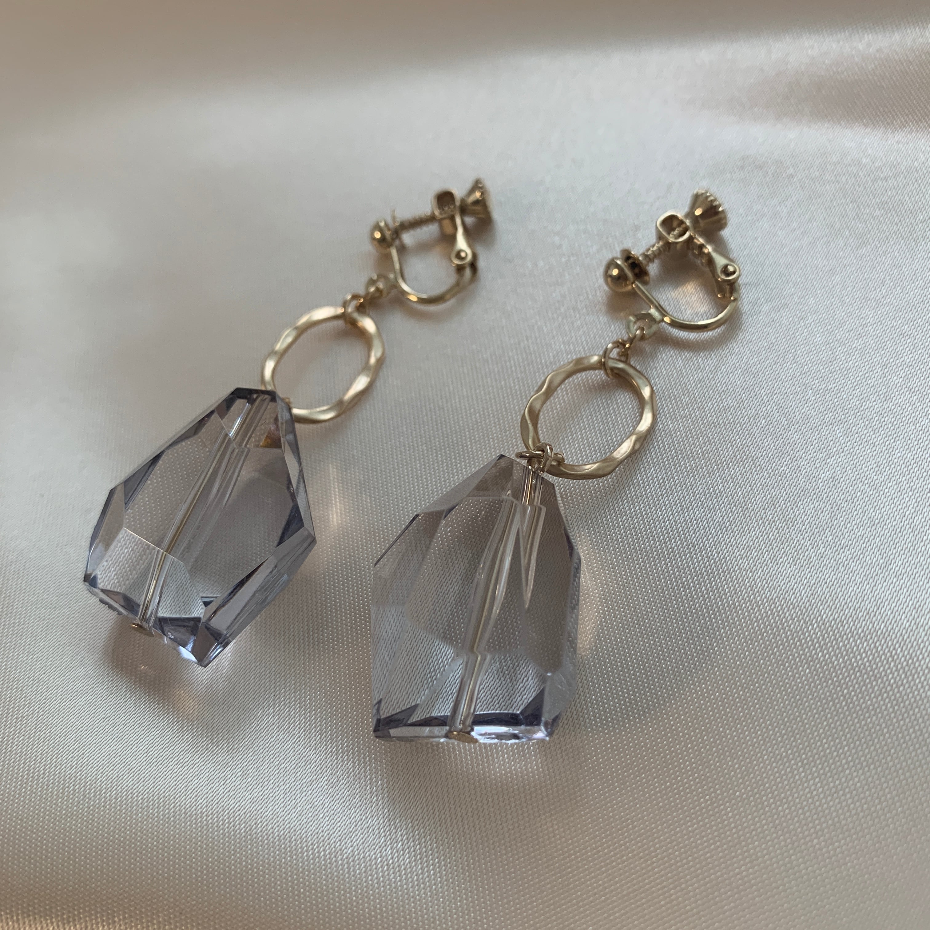 艶やかでぷっくりとしたフォルムが女性らしく、透き通ったクリアは耳元に程よい抜け感を。