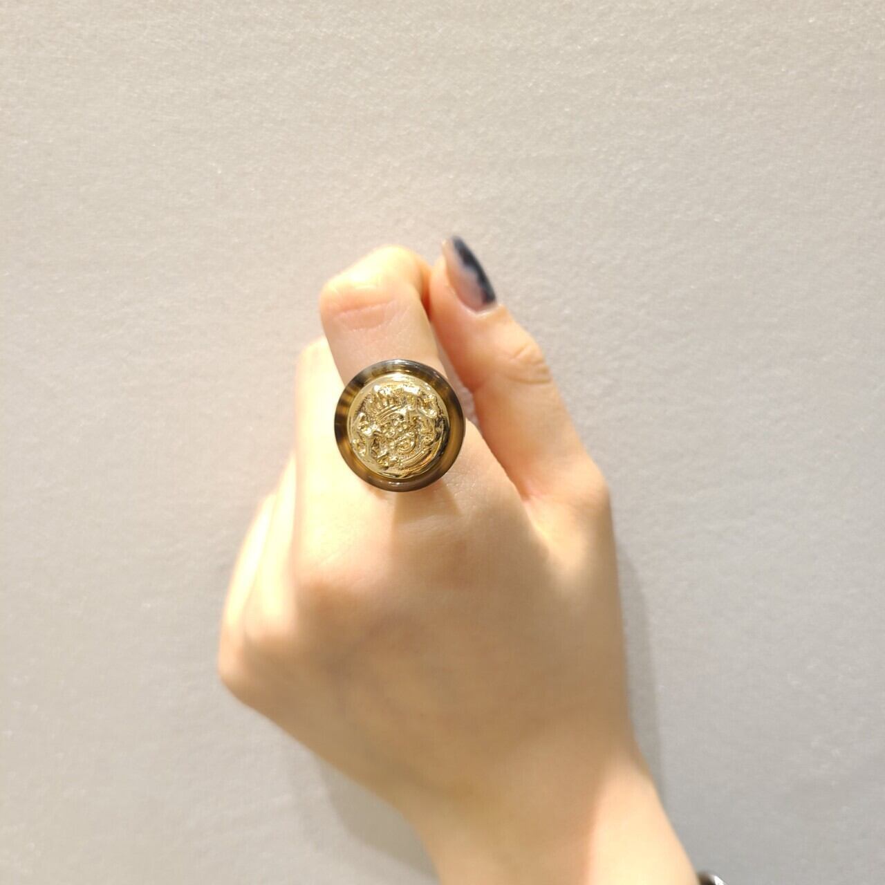 ころんとしたアンティークのボタンのようなパーツをあしらったリング。