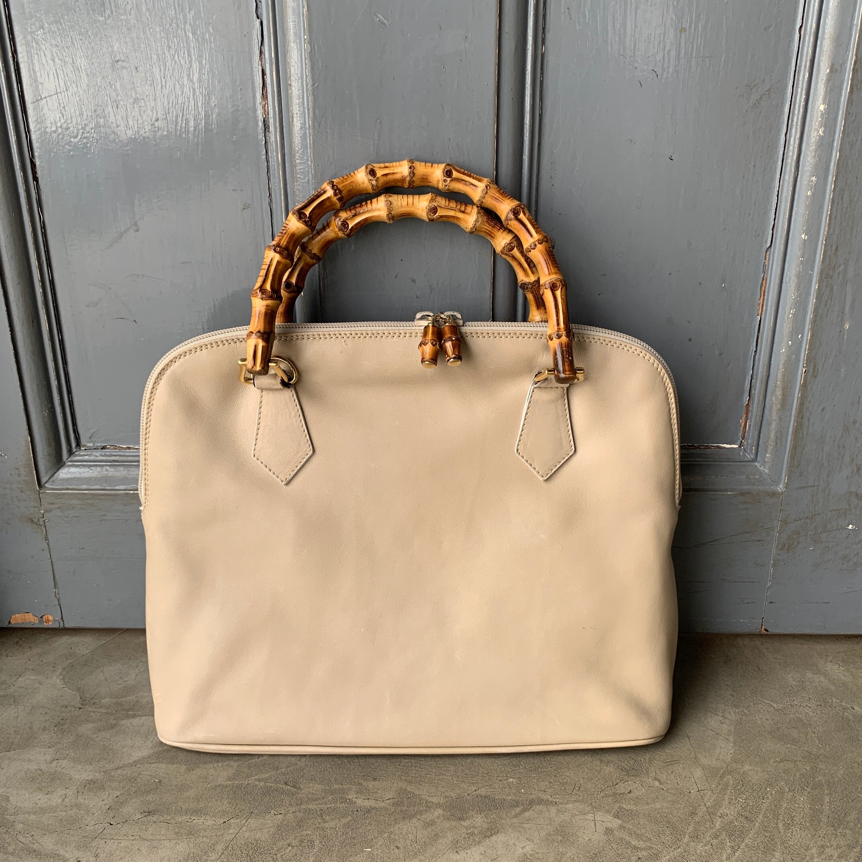 GUCCIらしいバンブーをふんだんに盛り込んだハンドバッグ。