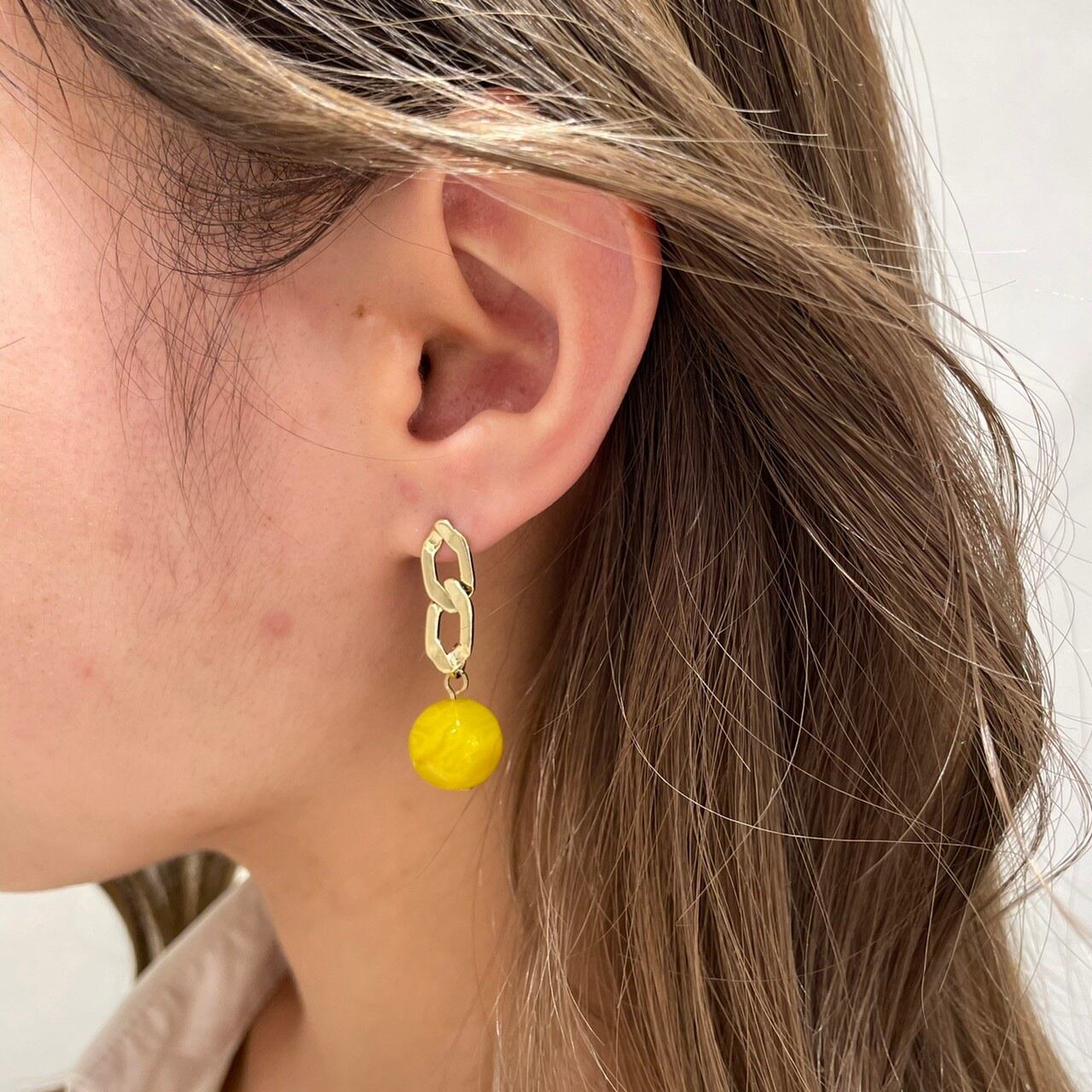 〈ピアス〉 メタルチェーン アクリルボール ピアス P-0344