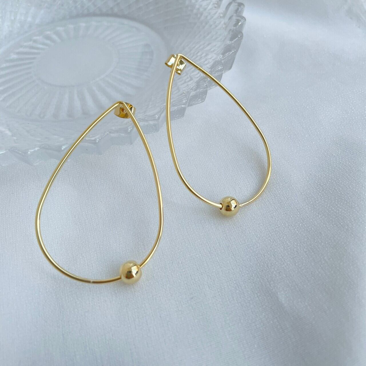 大き目のしずく型のフープにメタルボールの通ったデザインが人気のピアス。