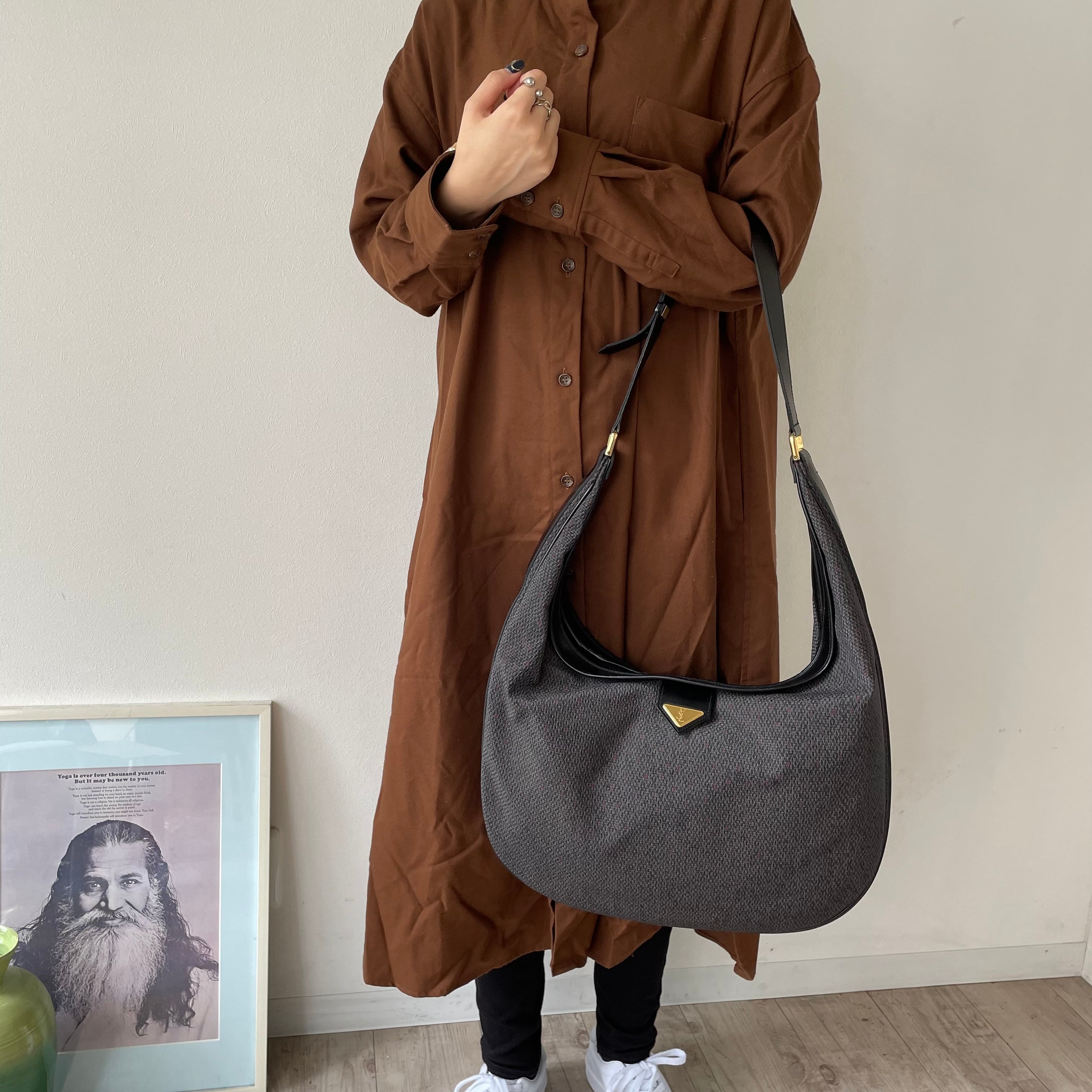 三日月のような形にデザインされたボリュームのあるショルダーバッグ。