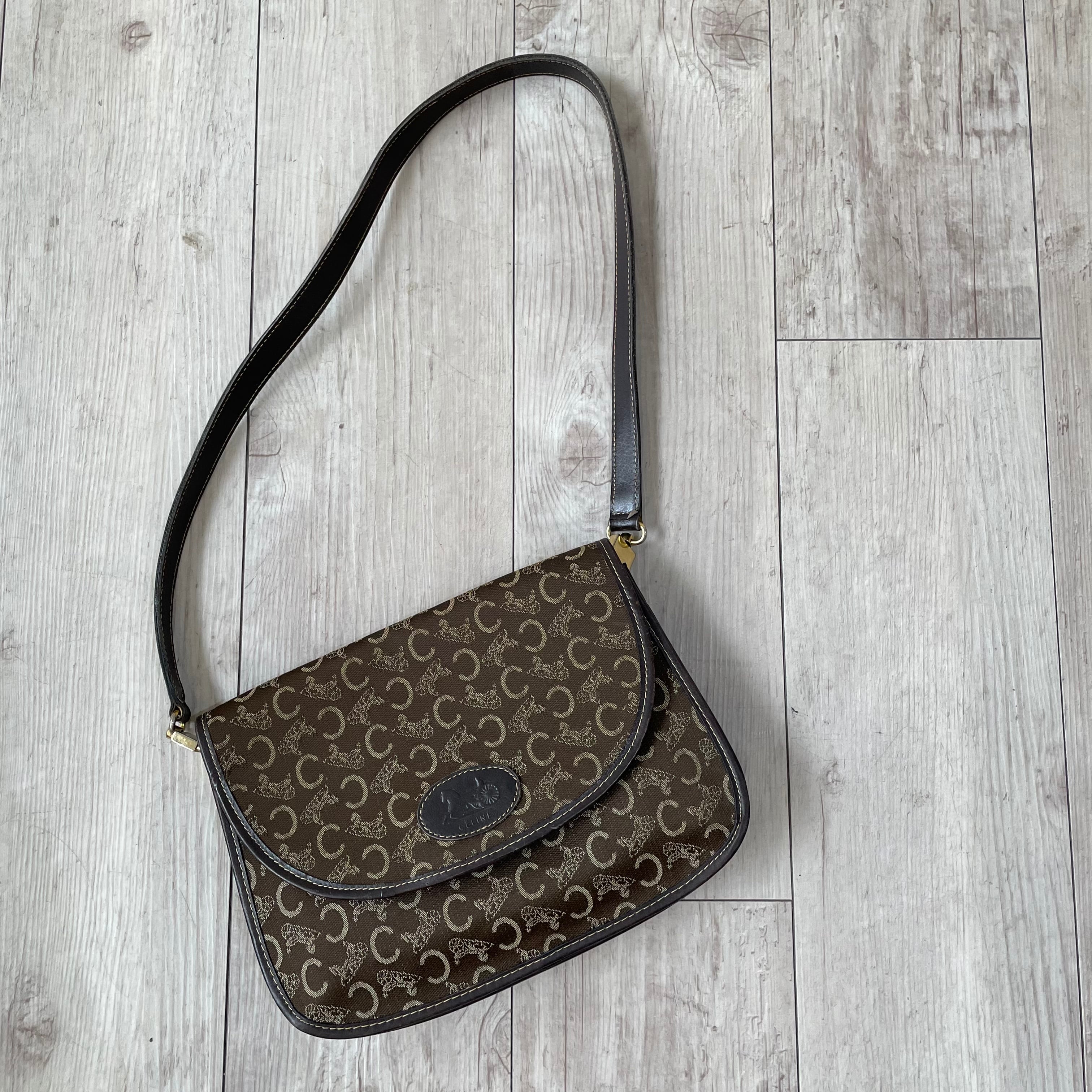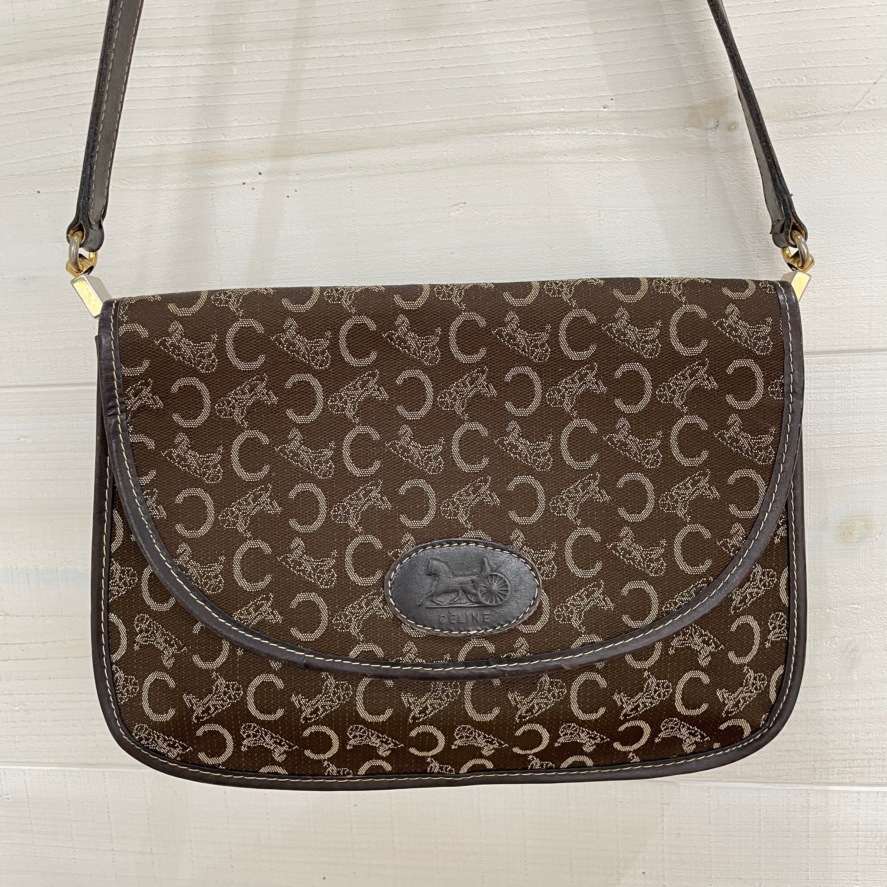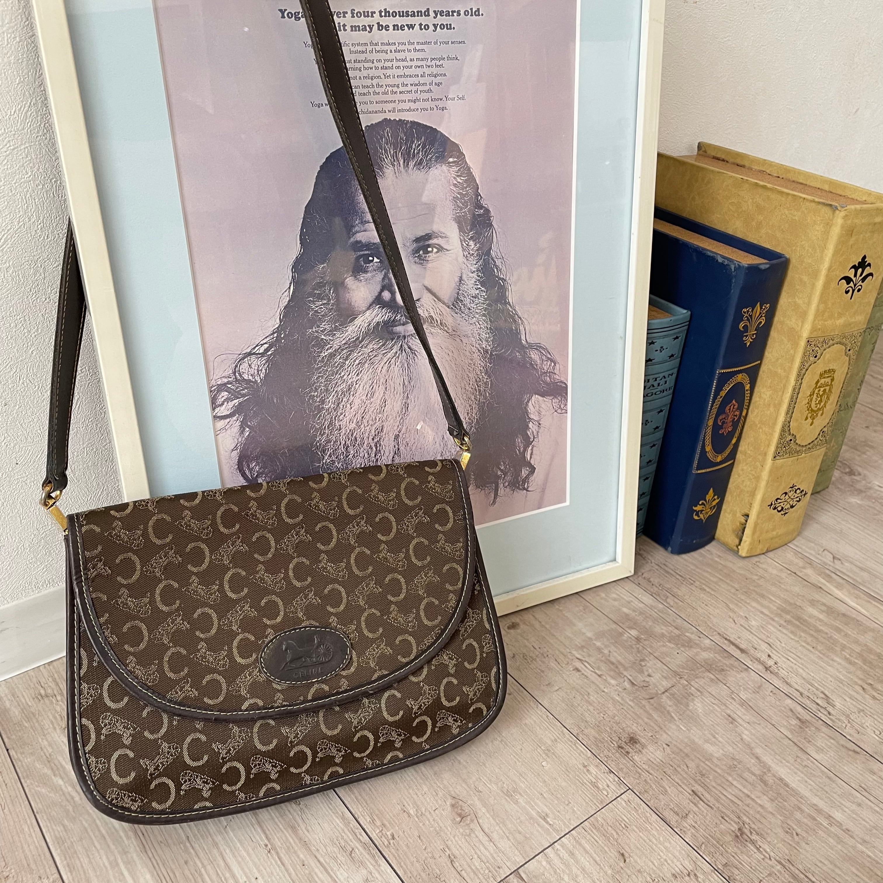 深みのあるブラウンカラーにサルーキ柄が鮮やかなvintage CELINEのショルダーバッグ。
