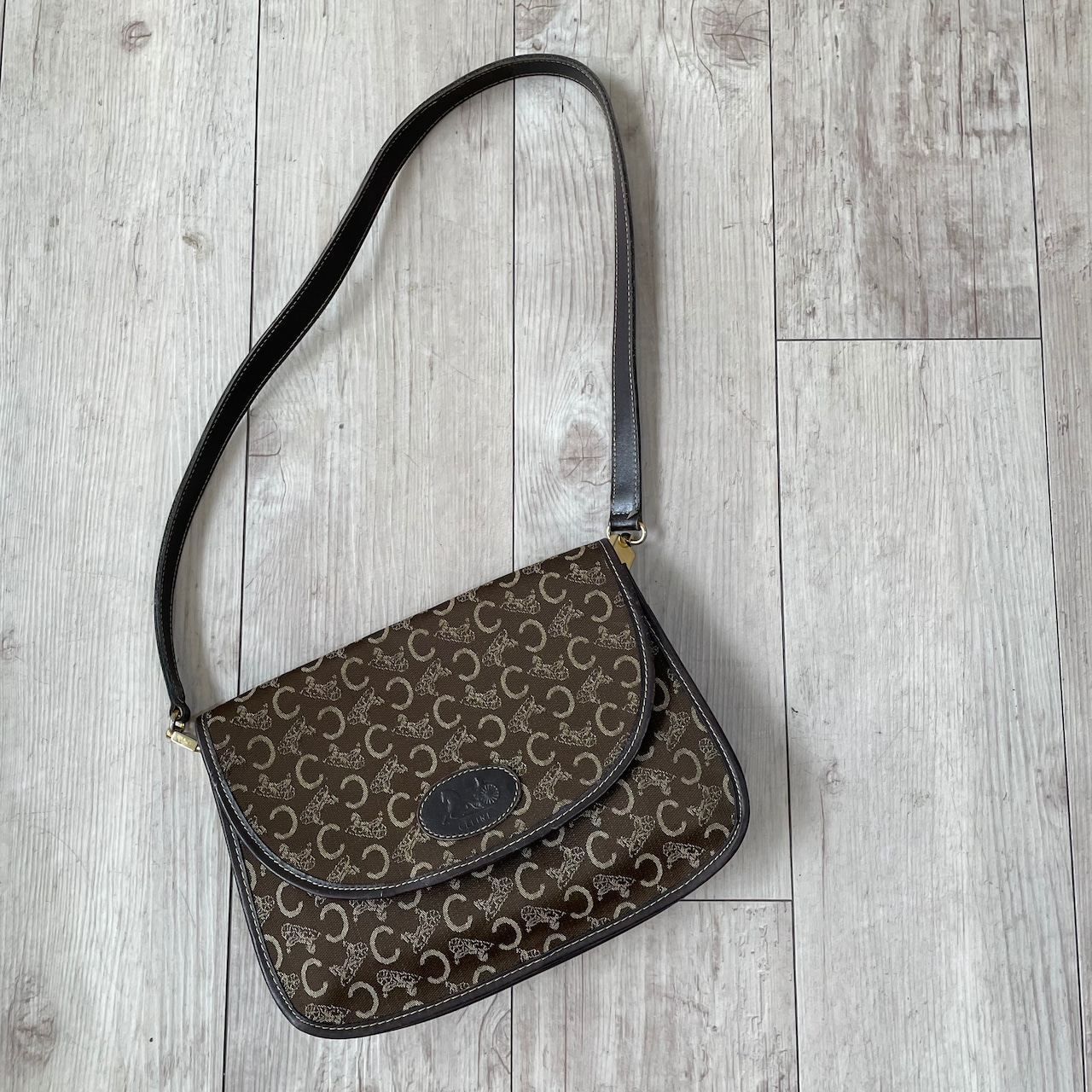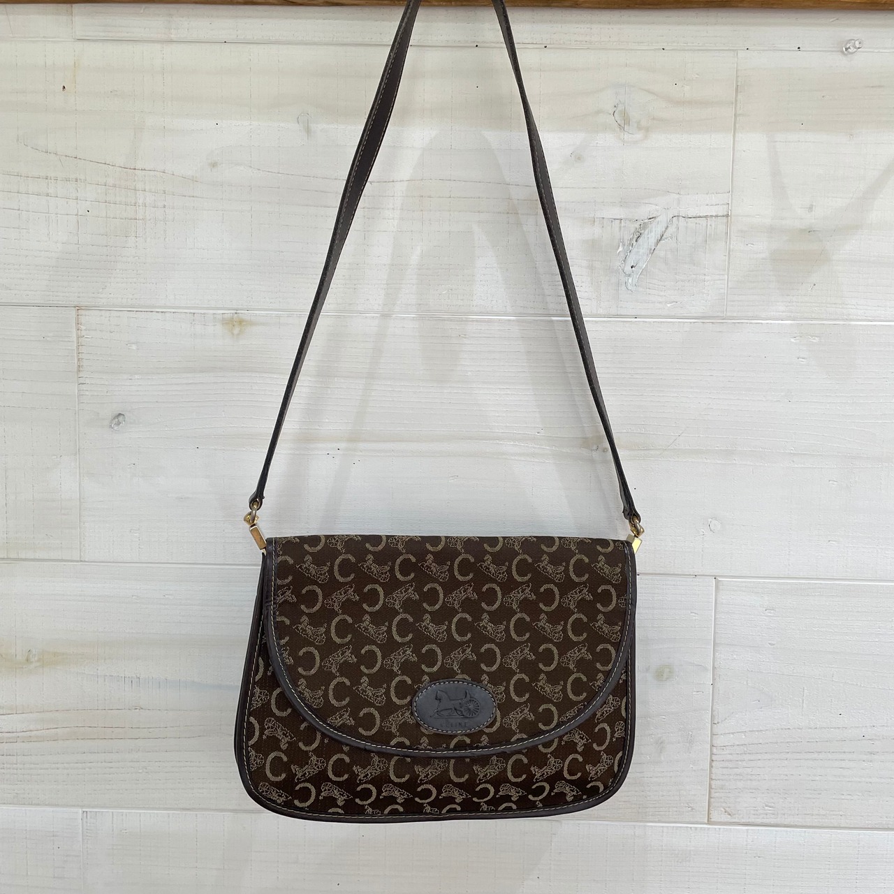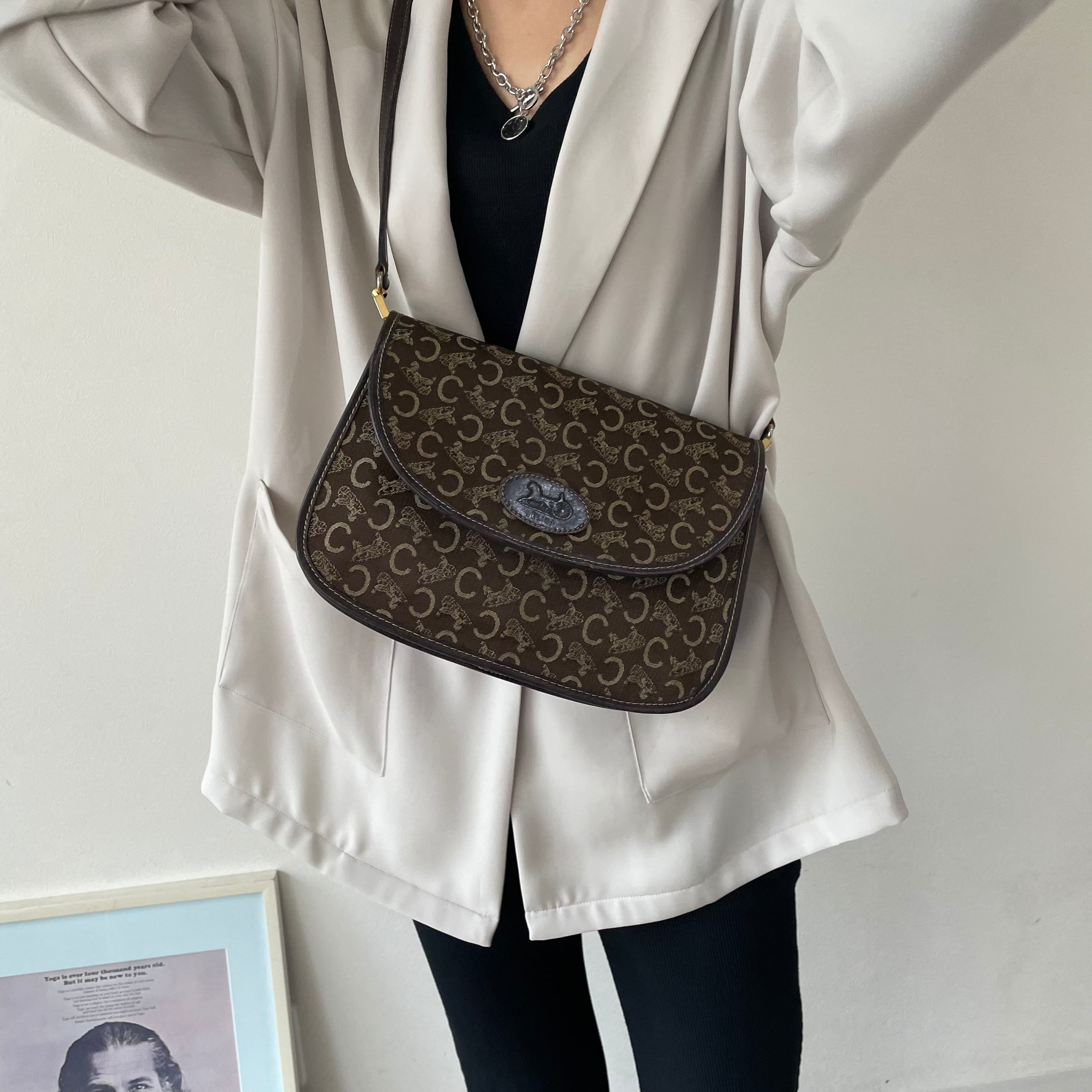 深みのあるブラウンカラーにサルーキ柄が鮮やかなvintage CELINEのショルダーバッグ。