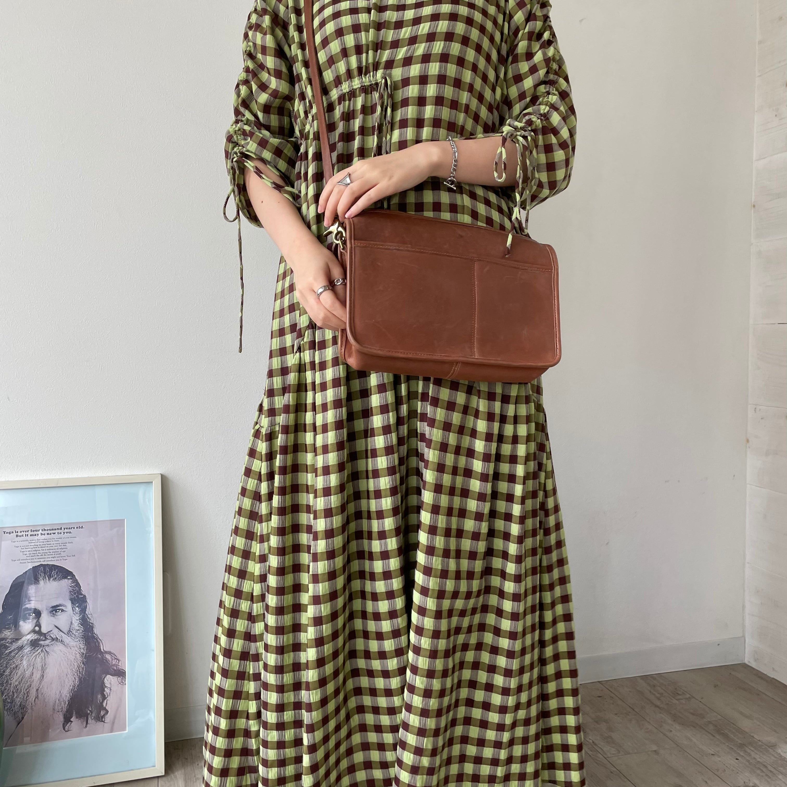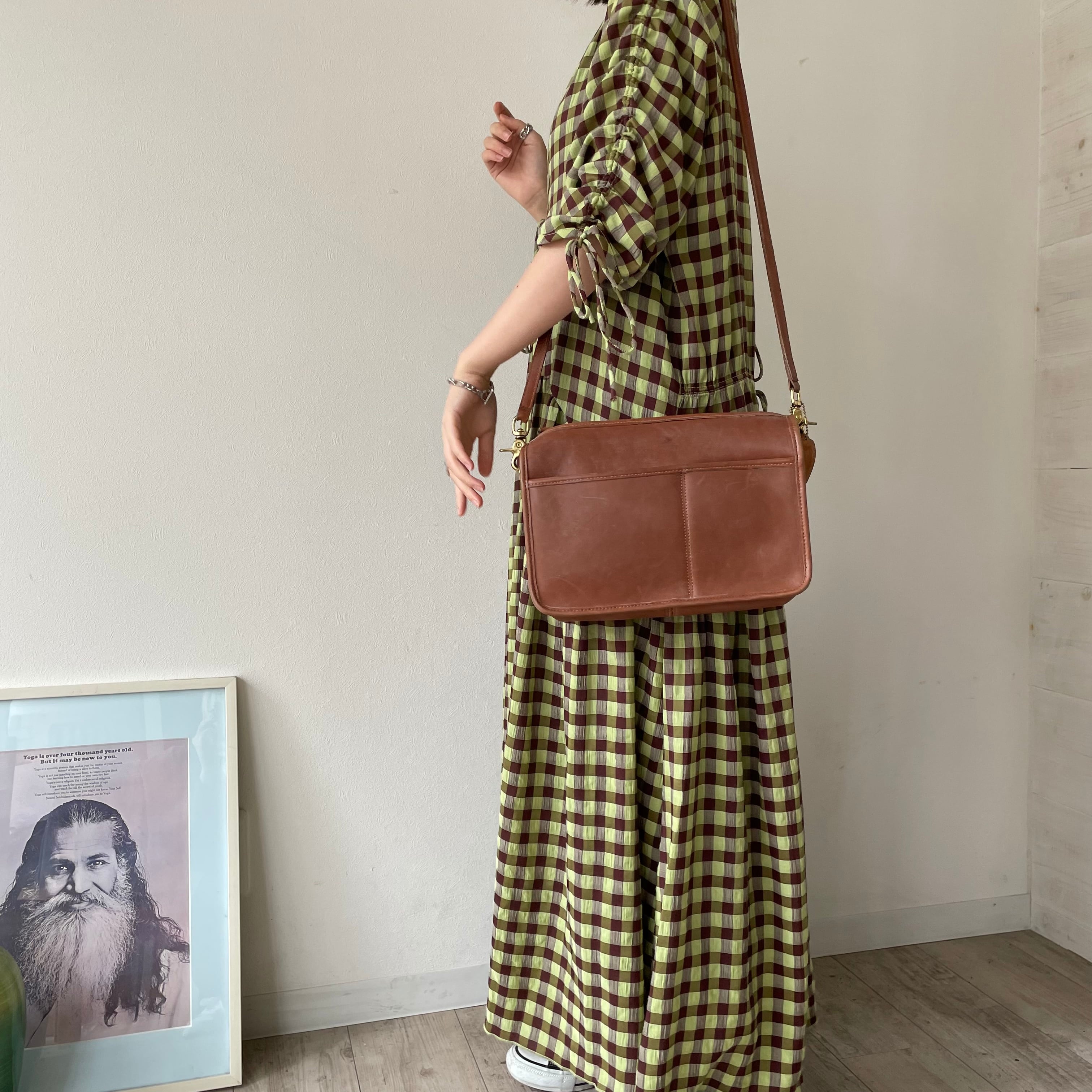 マットな質感とゴールドの金具がポイントのOLD COACHのショルダーバッグ。