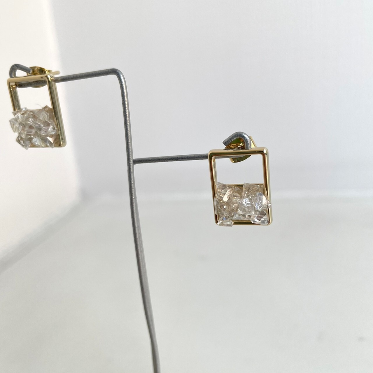 クリアのガラスの欠片のようなストーンをたっぷりと埋め込んだミニピアス。