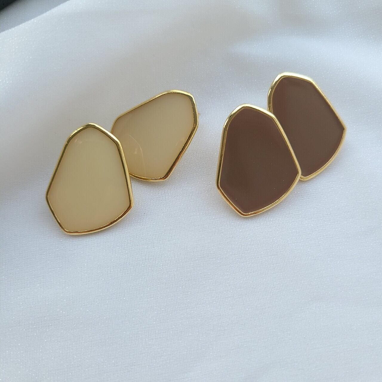 つるんとした滑らかな質感にこっくりカラーを合わせたシンプルながらも、存在感のあるピアス。