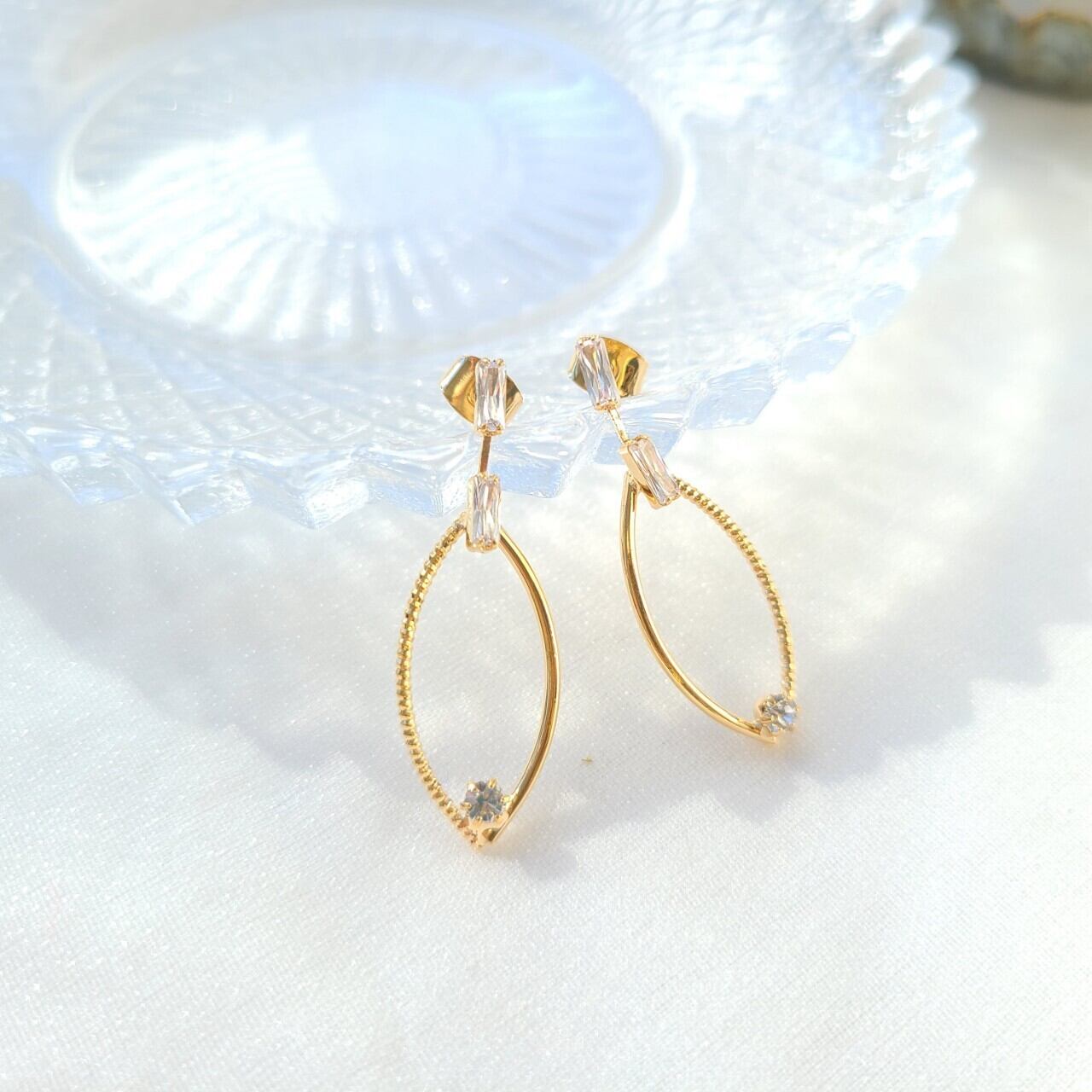 リーフ型に所々ビジューを散りばめた上品なピアスです。