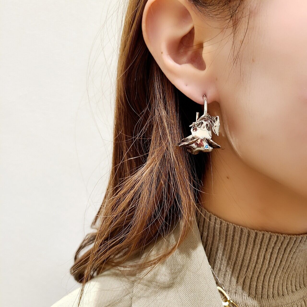シンプルになりがちなフープピアスにメタルでデザインしたお花を合わせ、華やかに仕上げたピアス。