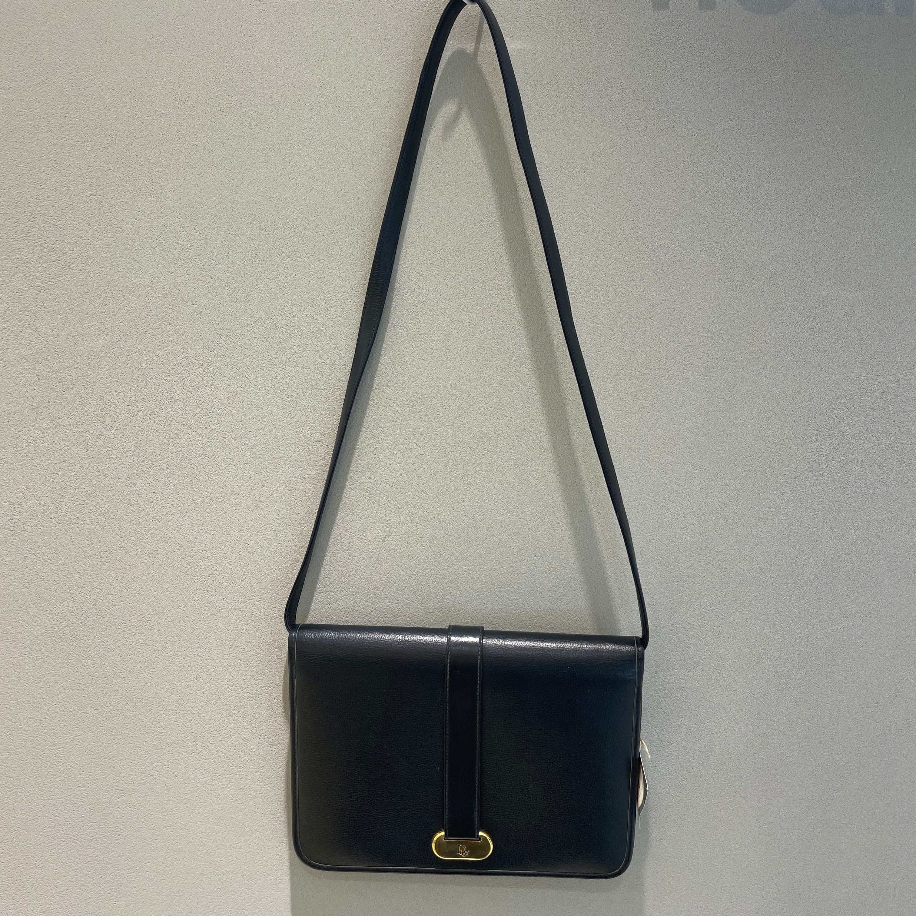 シンプルなボディにディオールのエンブレムがポイントになったショルダーバッグ。