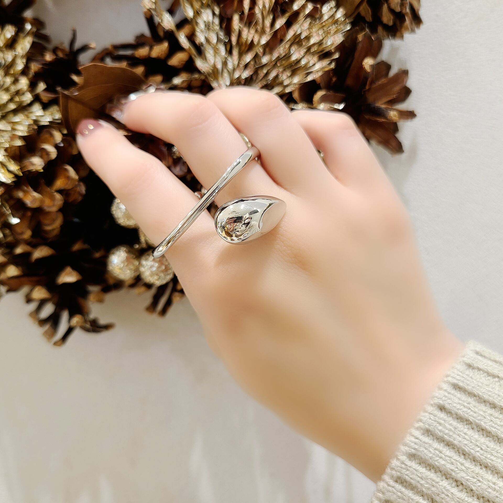 しずく型のようなメタルモチーフがアクセントになったトレンドライクなダブルフィンガーリング。
