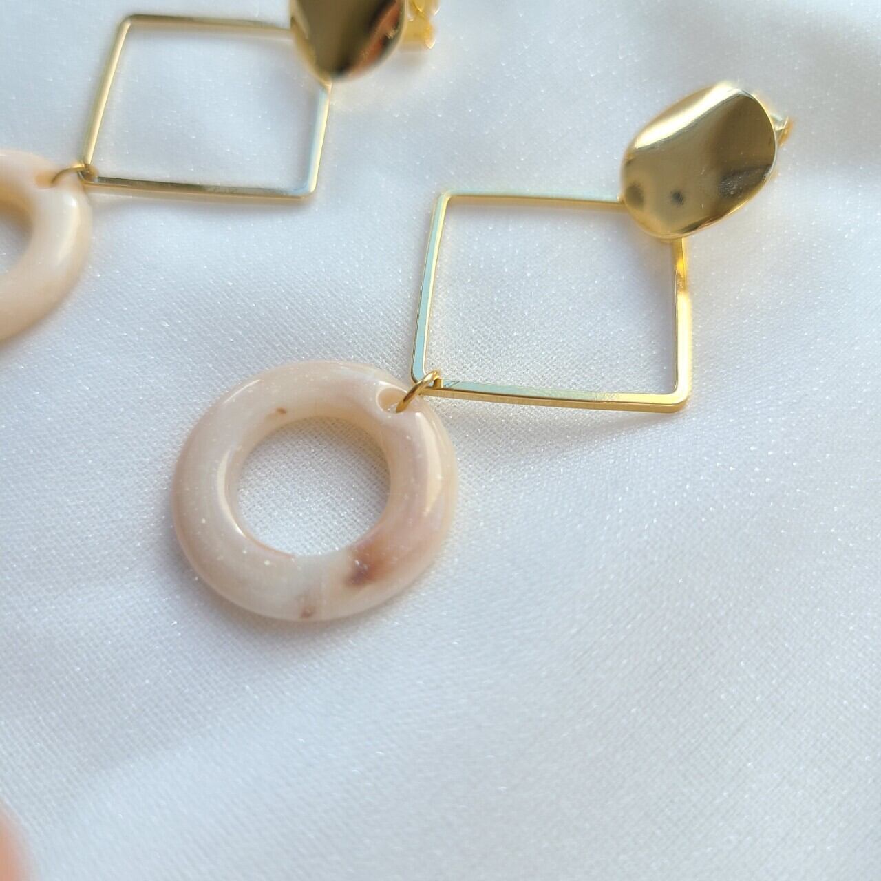 〈ピアス〉マーブル アクリル スクエア メタル ピアス P-0165