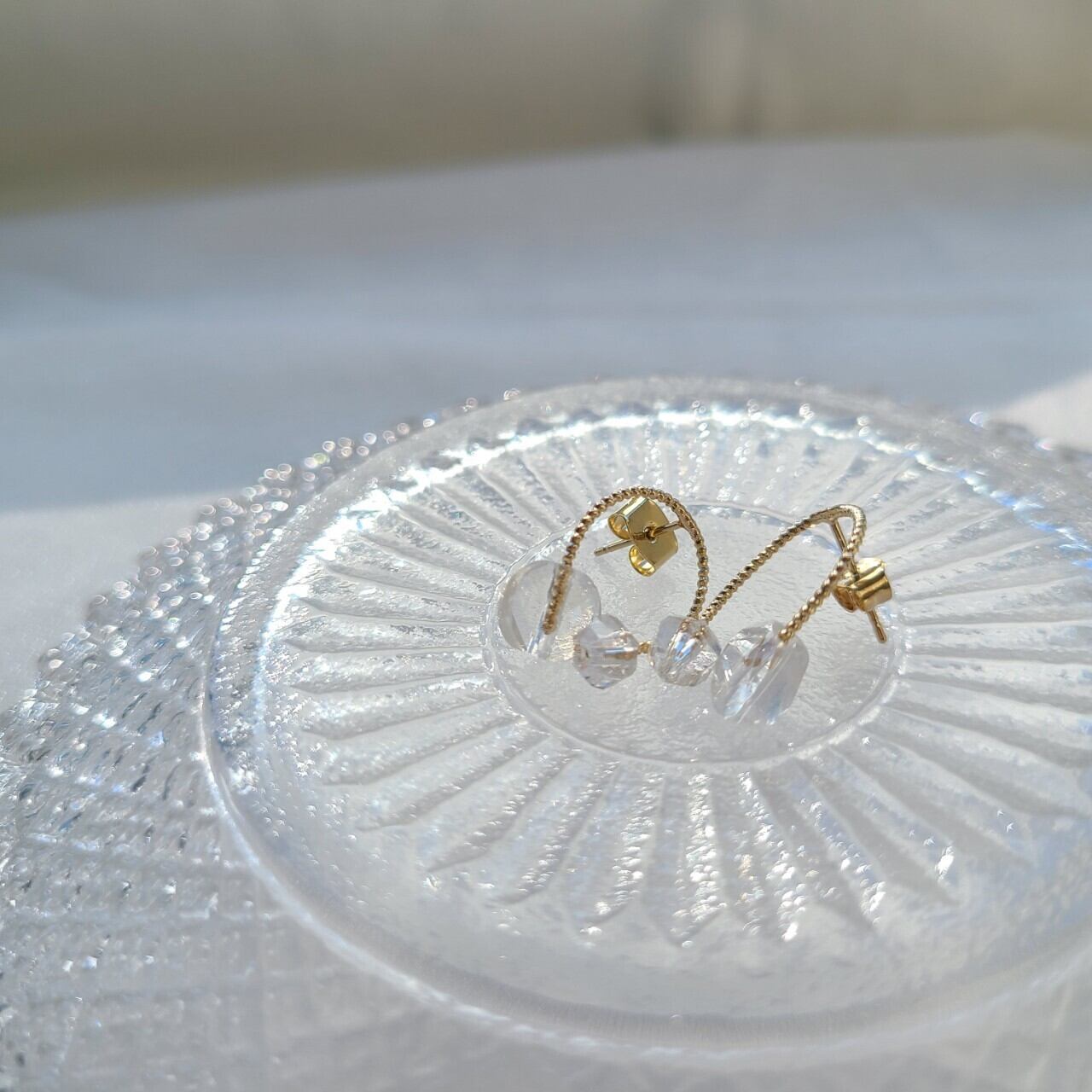 表面が細かくカットされたアクリルのクリアボールが上品に光を集め、メタルで大人っぽさをプラスしたピアス。