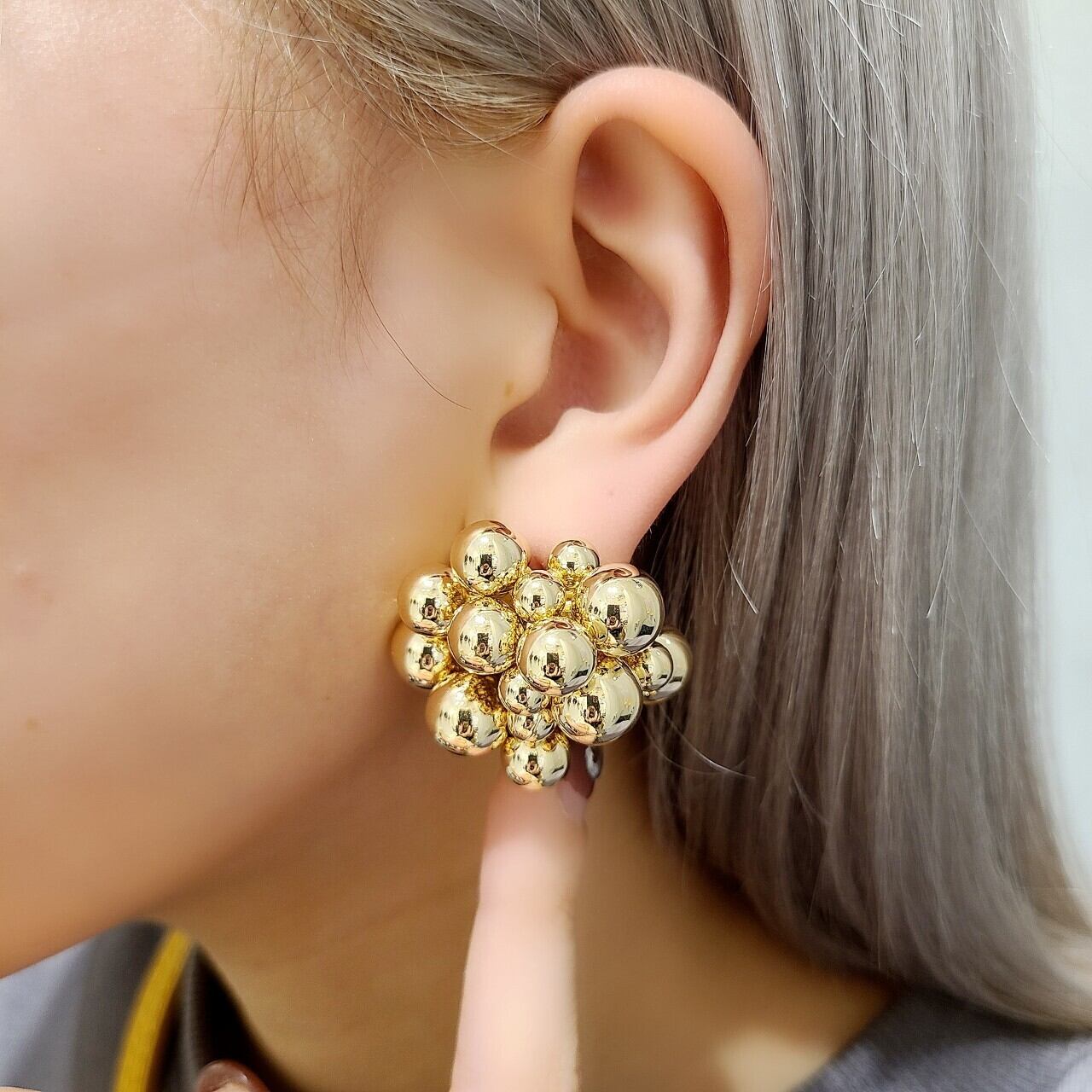 メタルボールをふんだんに使用したボリュームのあるピアス。