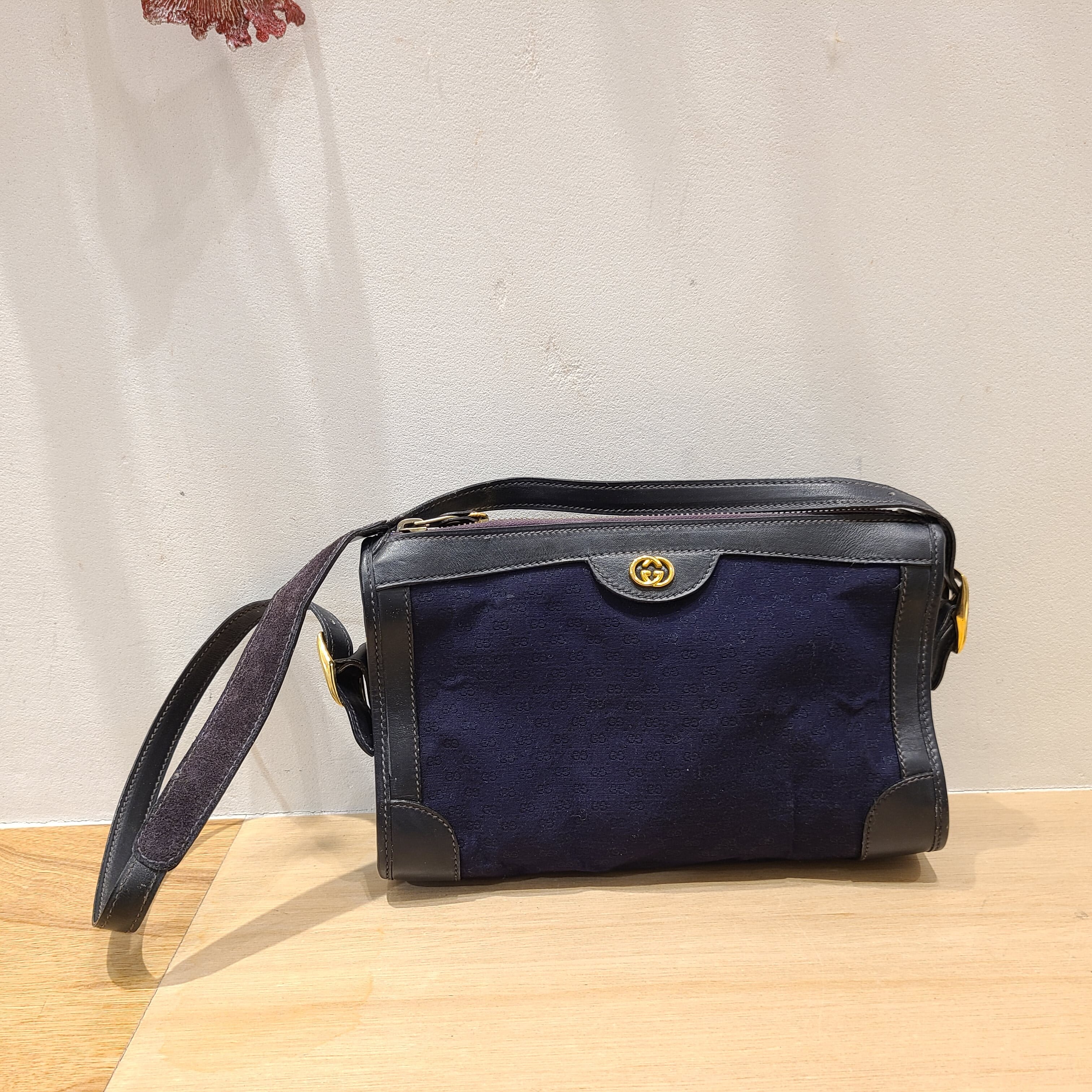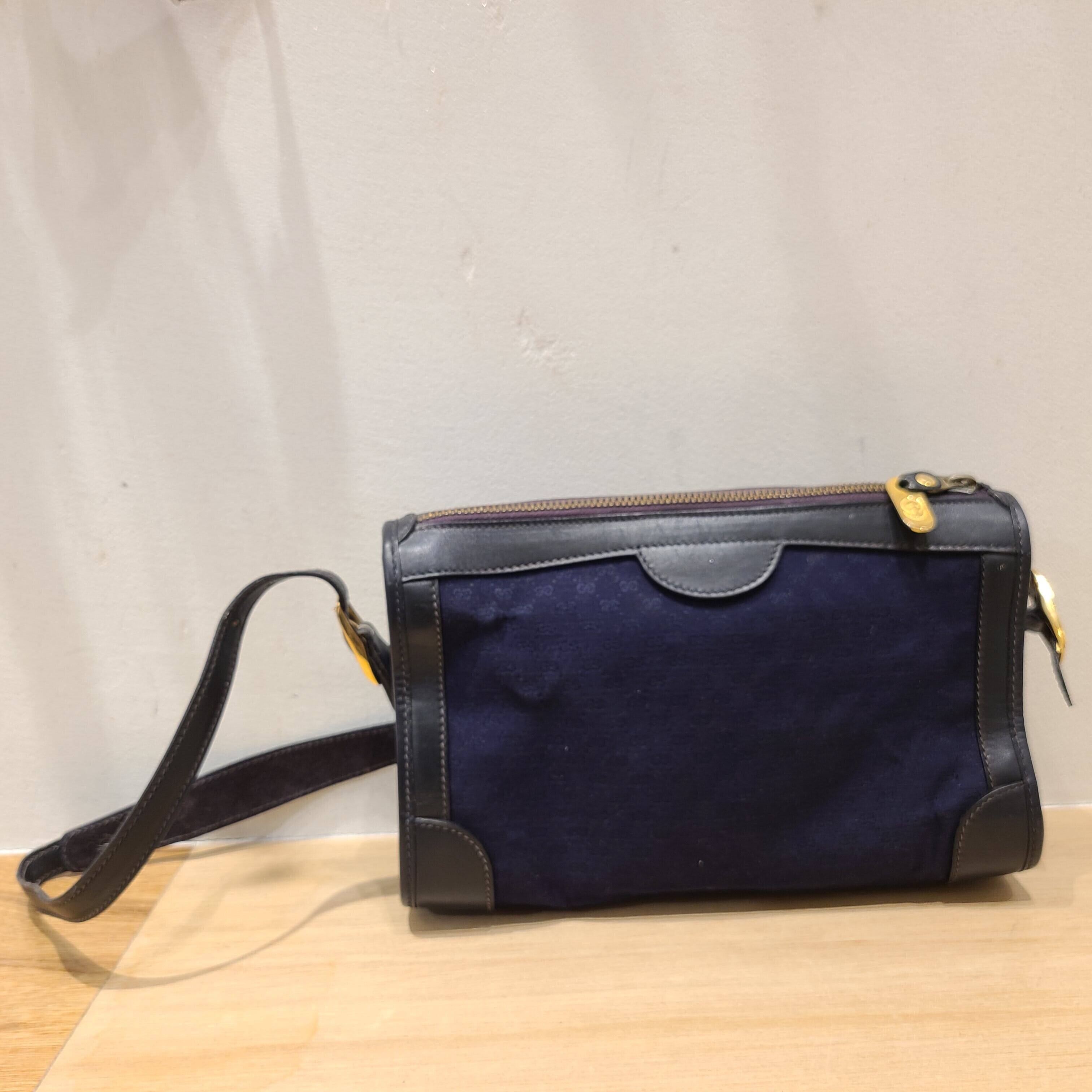 ネイビーの落ち着いた配色にマイクロGGモノグラムが上品な一点。