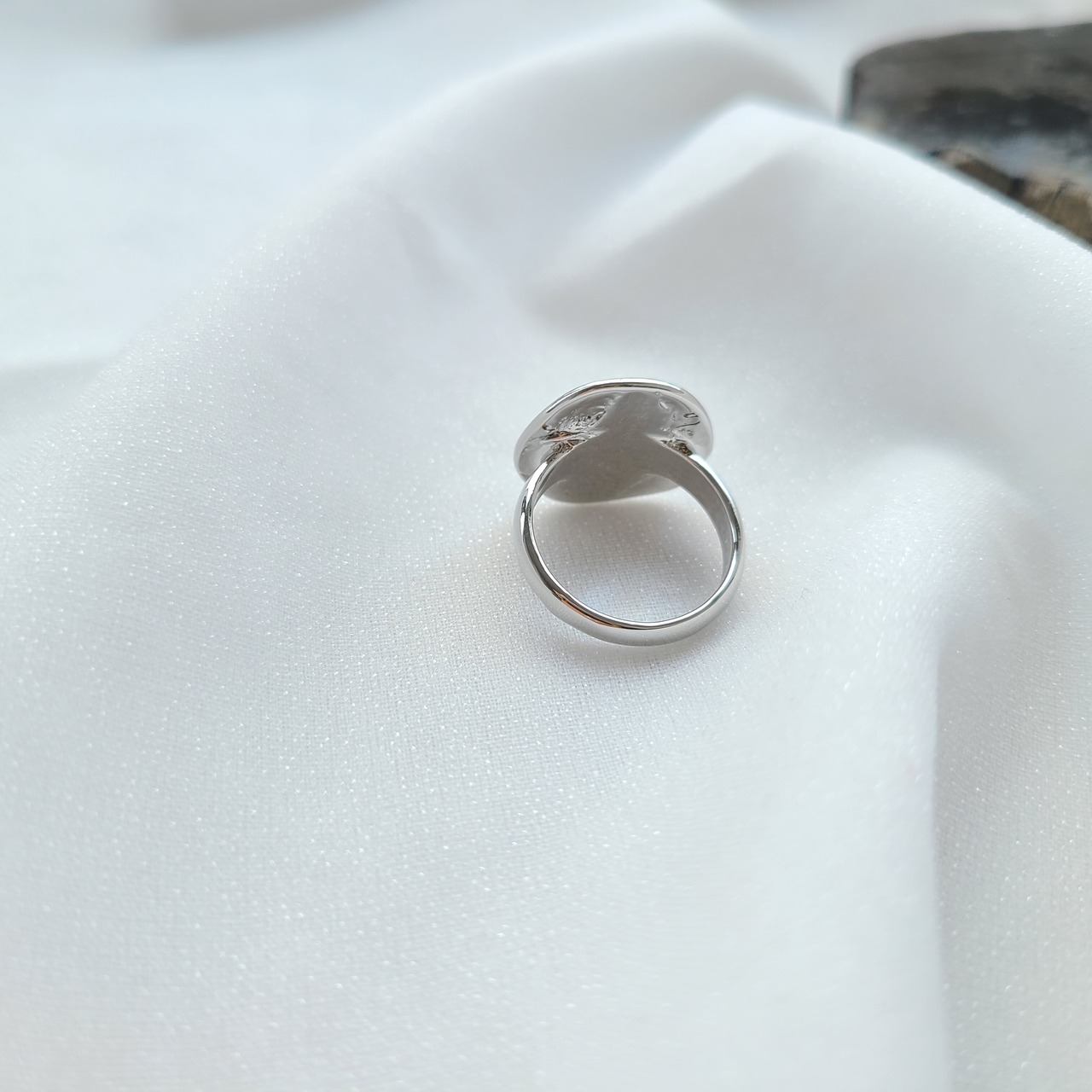 大き目のコインモチーフがシックな雰囲気のメタルリング。