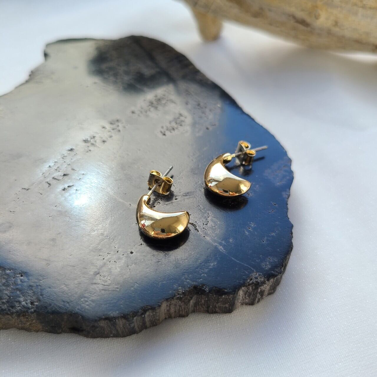 ぽってりとした丸みのあるフォルムが女性らしいミニピアス。