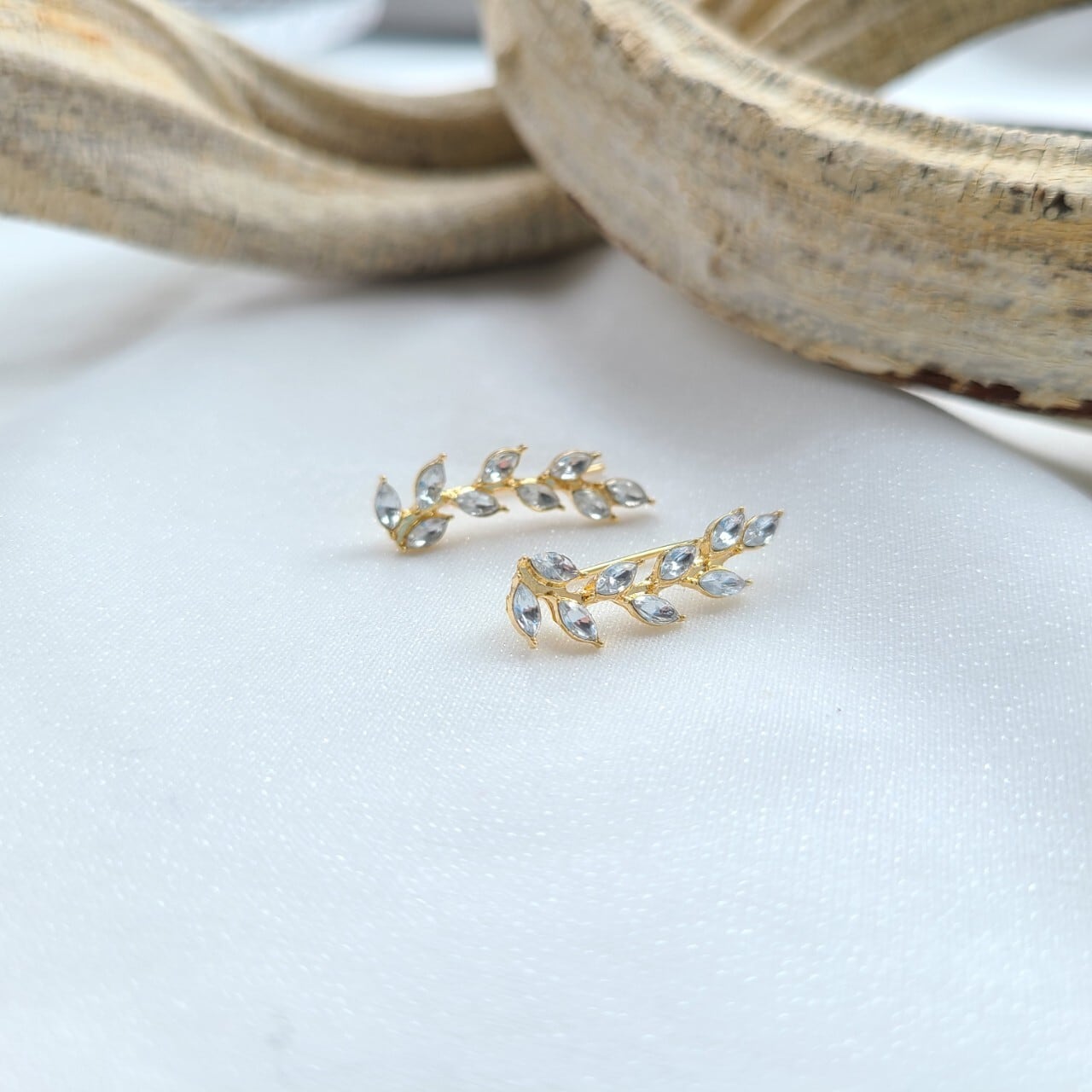 たっぷりとラインストーンを施したリーフデザインのピアス。