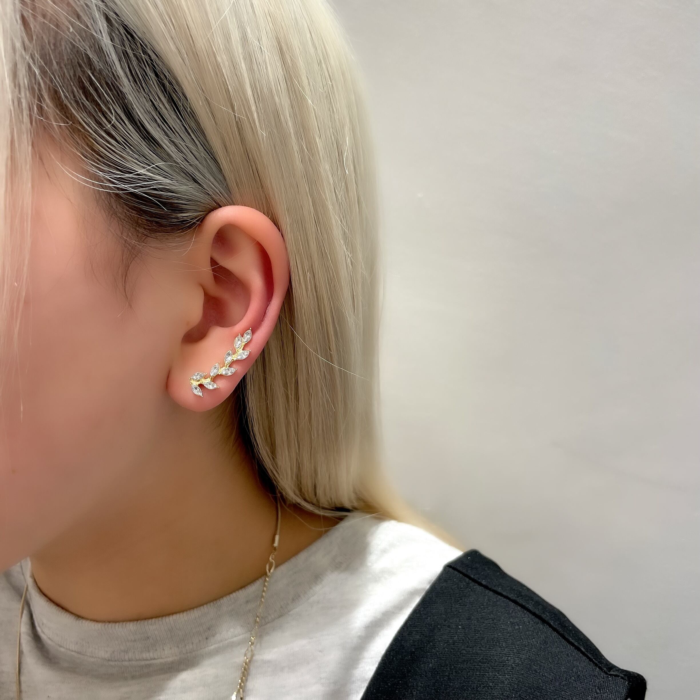 動くたびにストーンが耳元でキラッと輝くので、お顔周りが華やかになり女性らしさもアップしますよ!