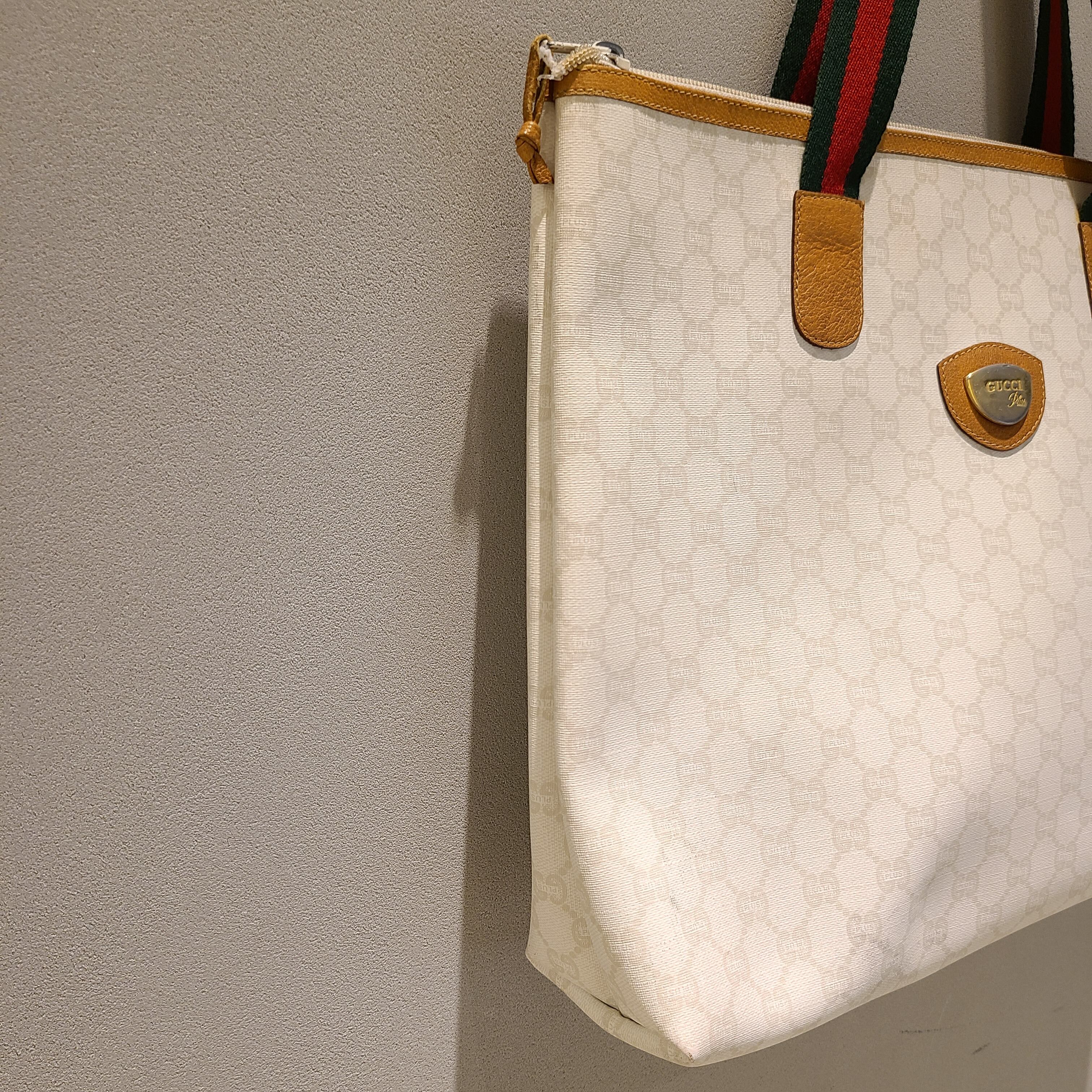 GUCCI plusのロゴが前面にプリントされたトートバッグ。