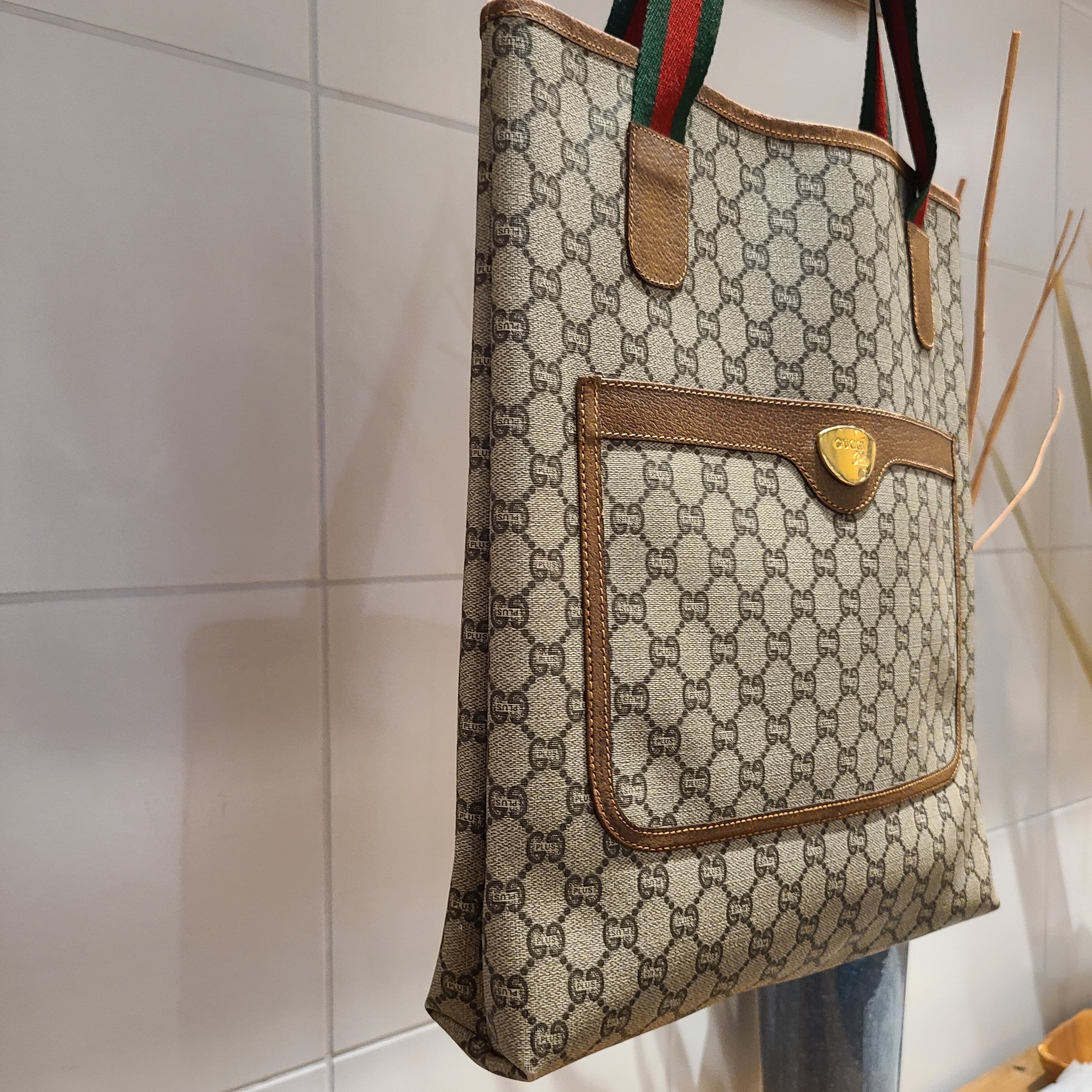 GUCCI定番のモノグラムが前面にプリントされたGUCCI Plusのトートバッグ。