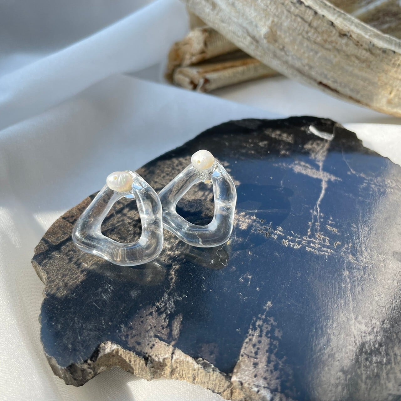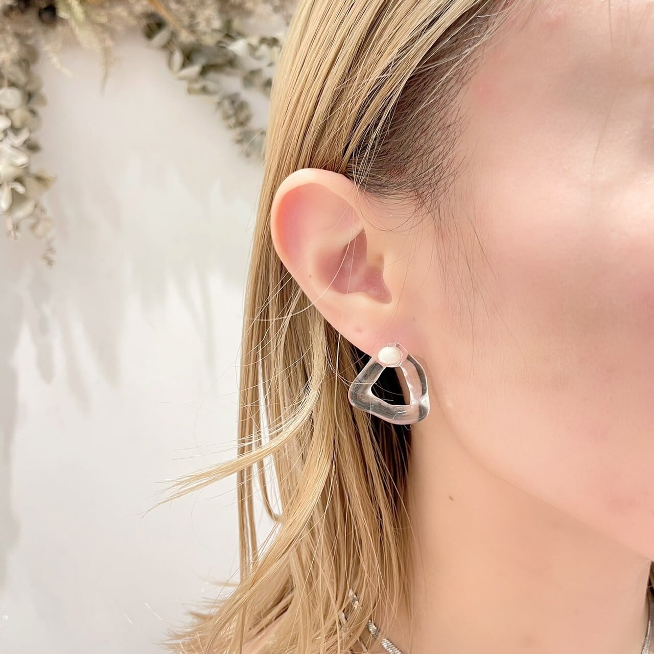不規則な凹凸が施されたクリアアクリルと淡水パールの組み合わせが人気のアイテム!