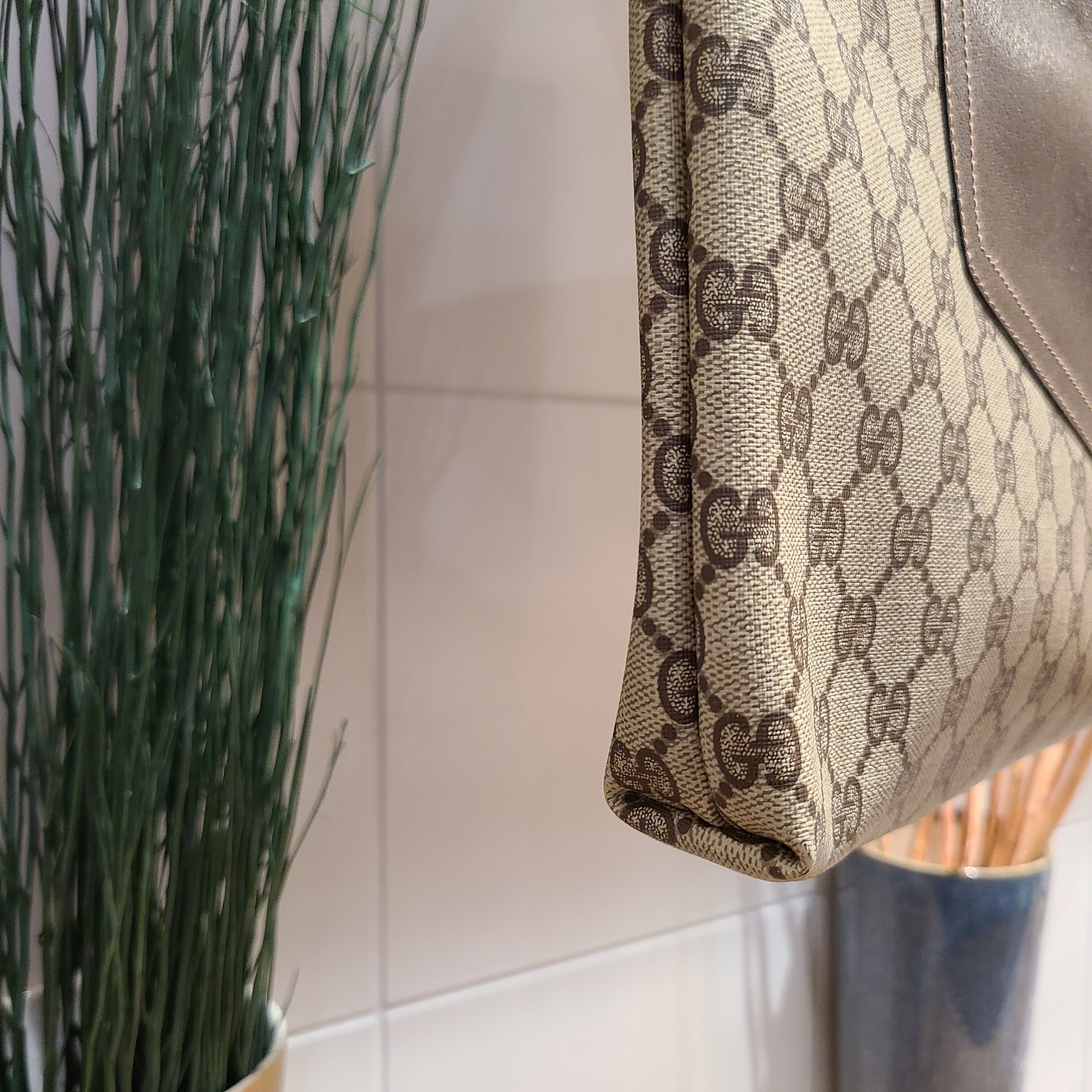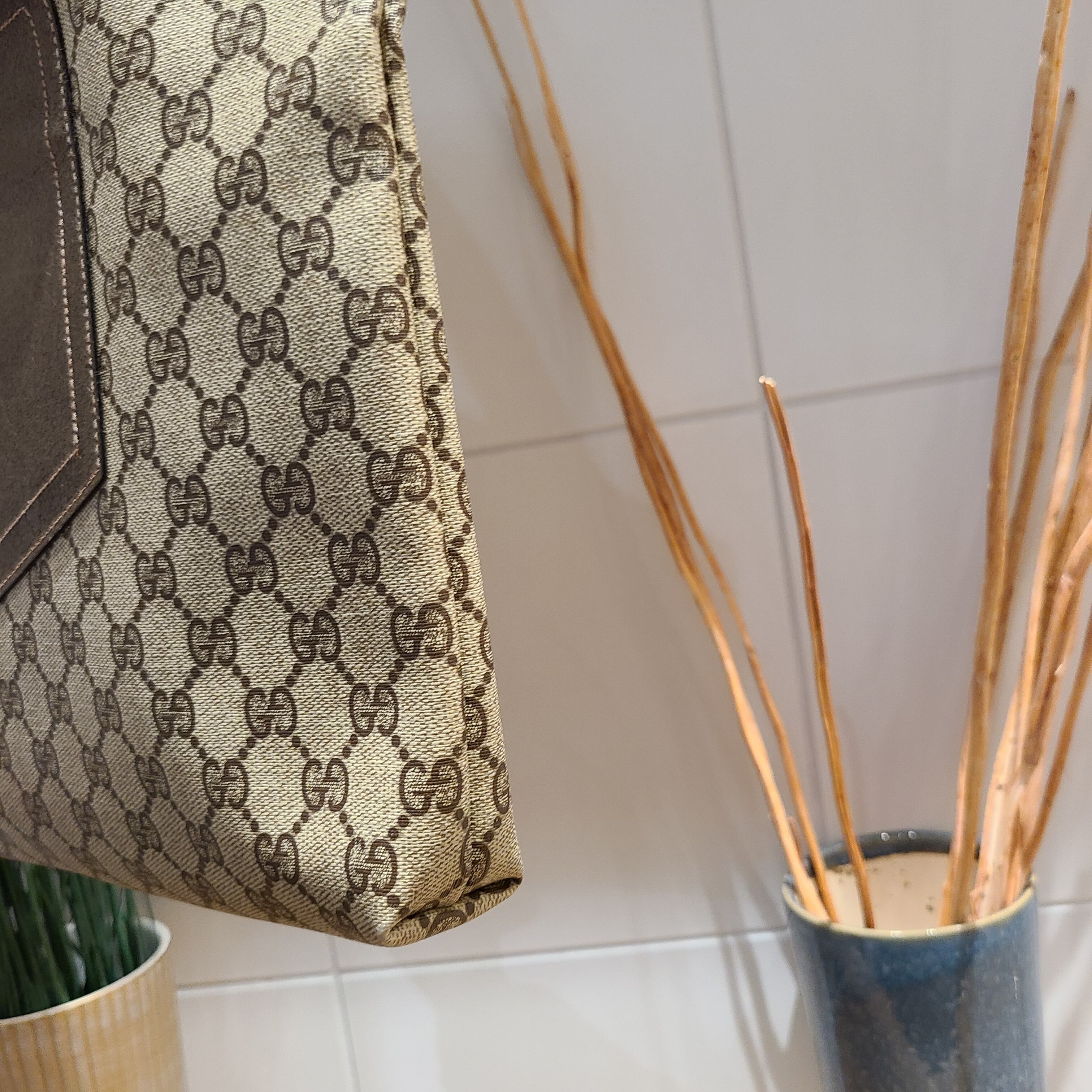 GUCCI定番のモノグラムが前面にプリントされたトートバッグ。