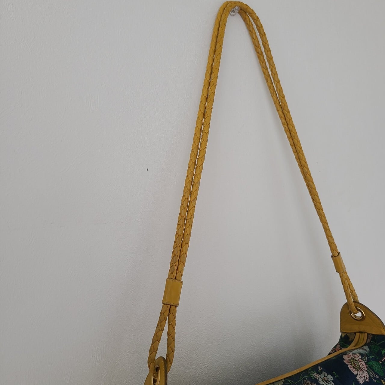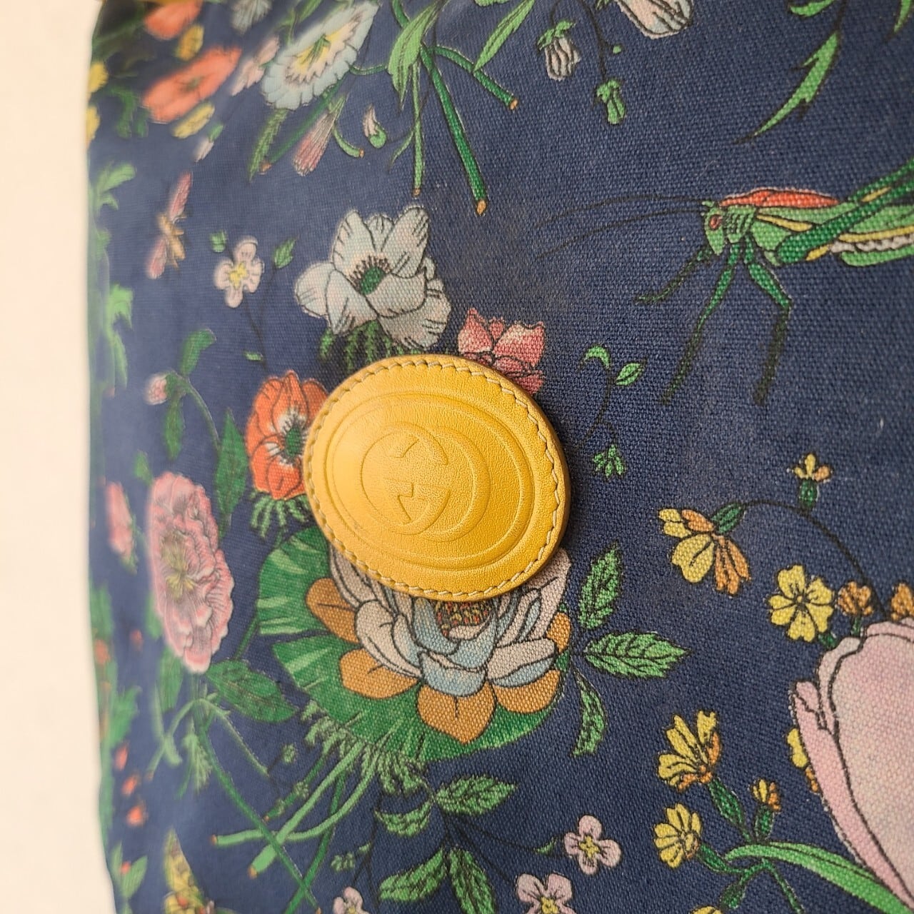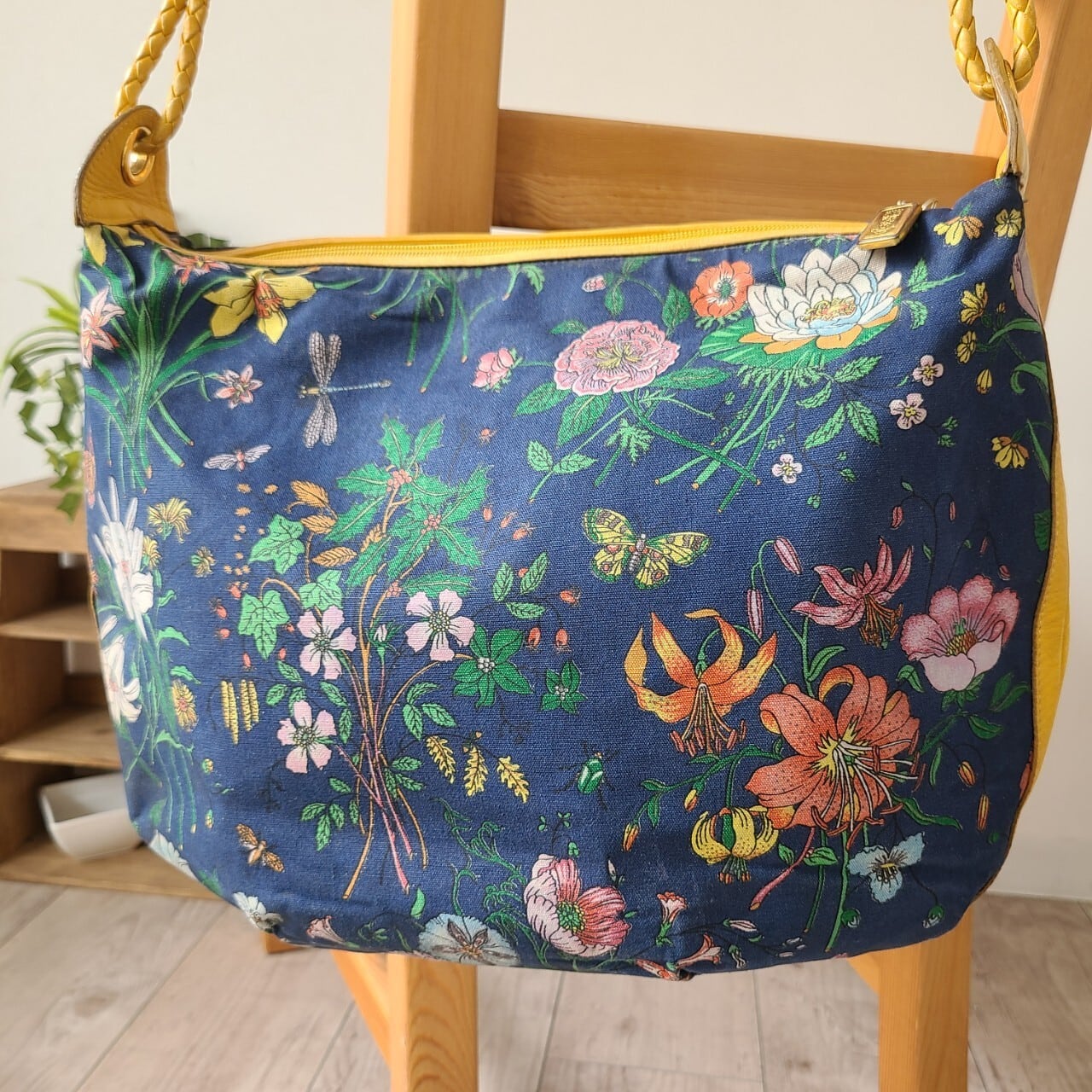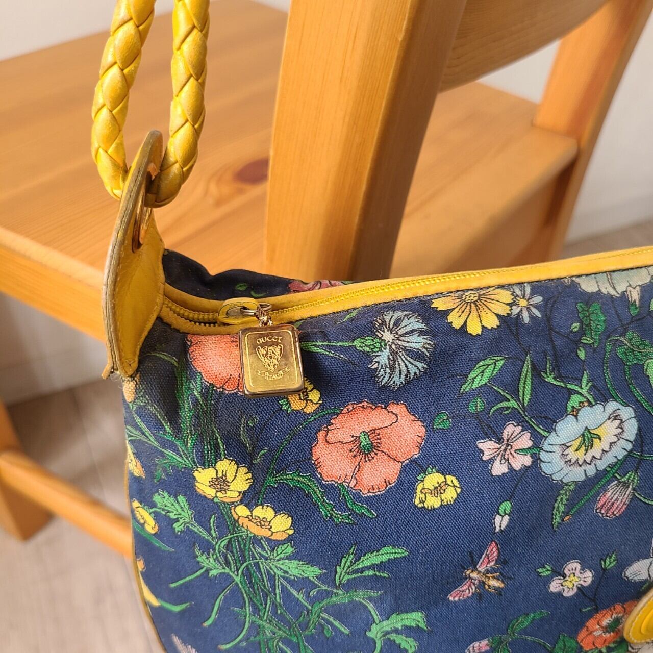 側面とショルダー部分は明るいイエローのレザーであしらわれ、華やかでありながら落ち着いた色合いでコーディネートにも合わせやすい一点です。