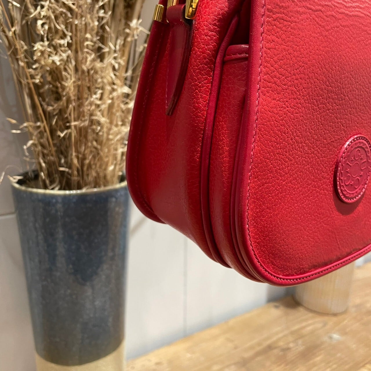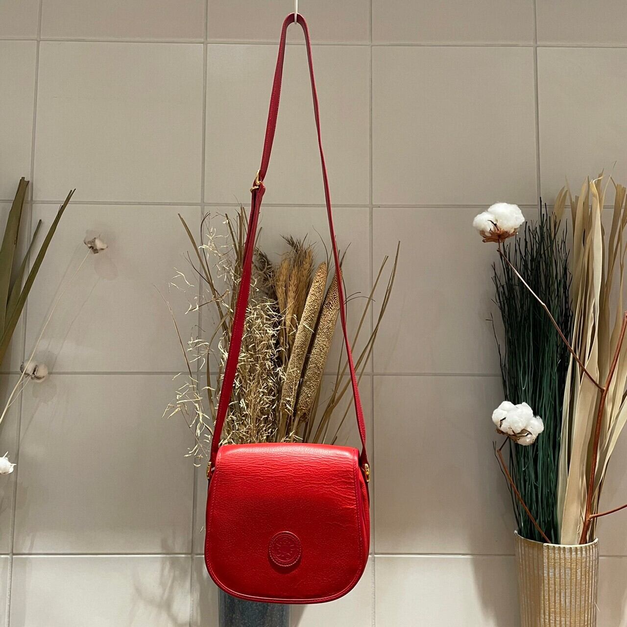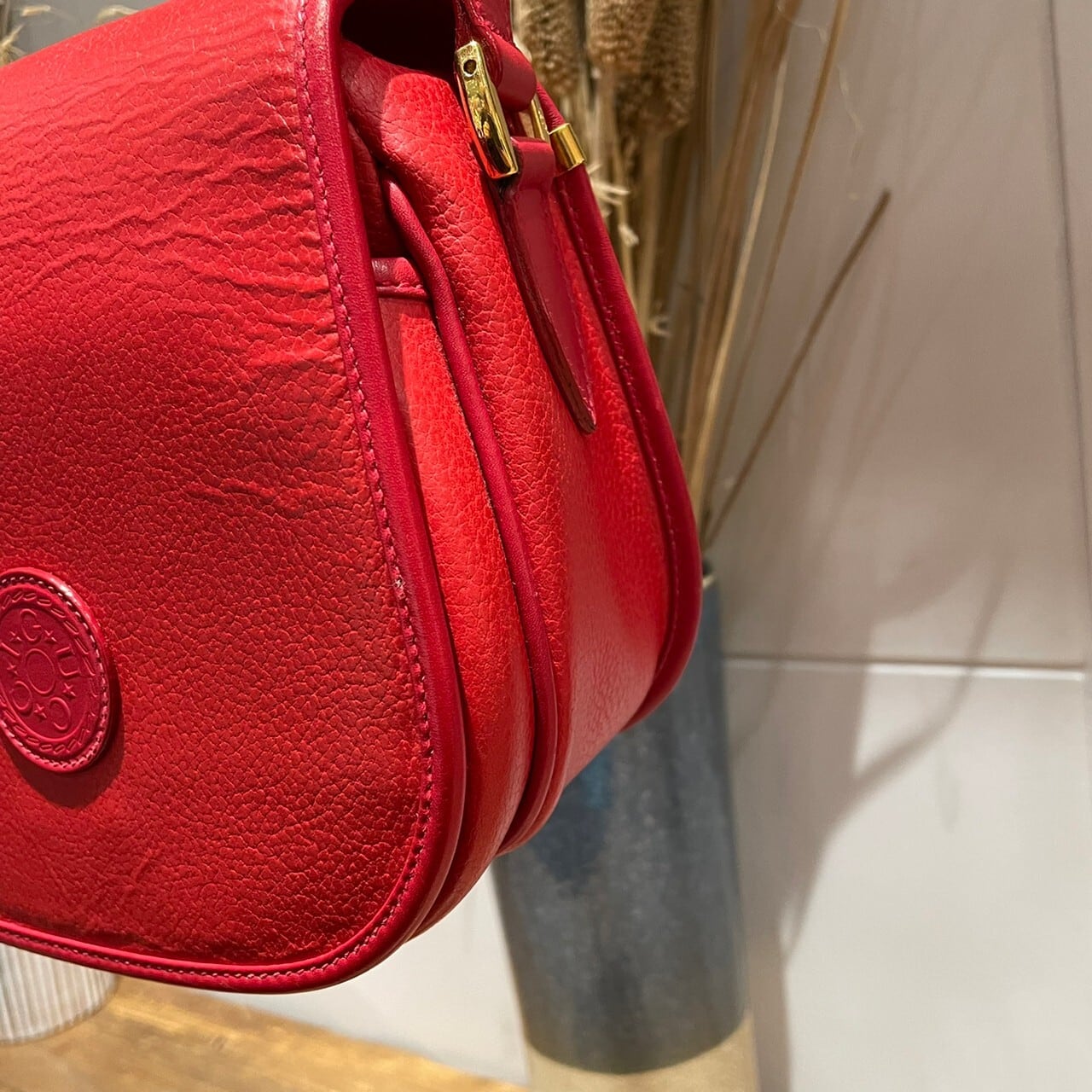 深みのあるレッドのOLD GUCCIショルダーバッグ。