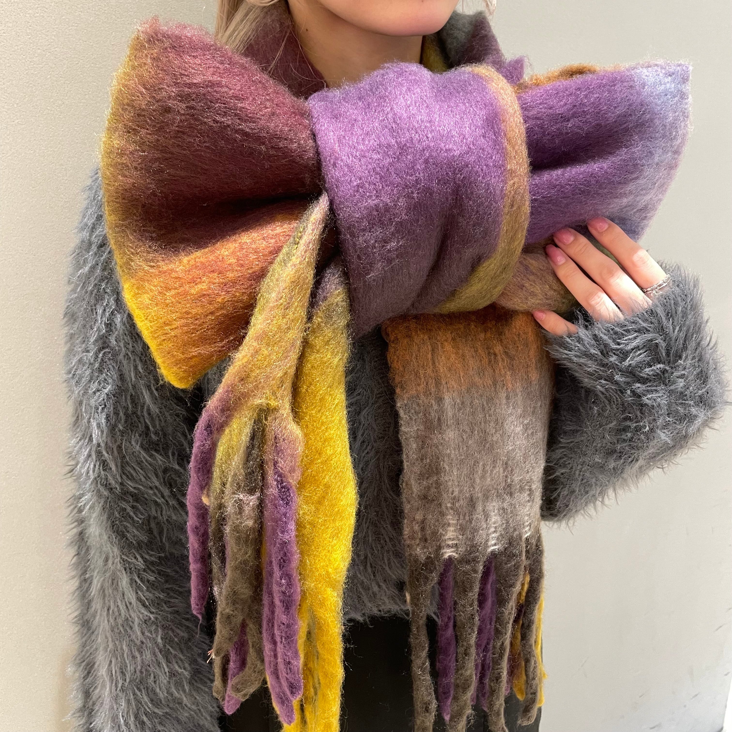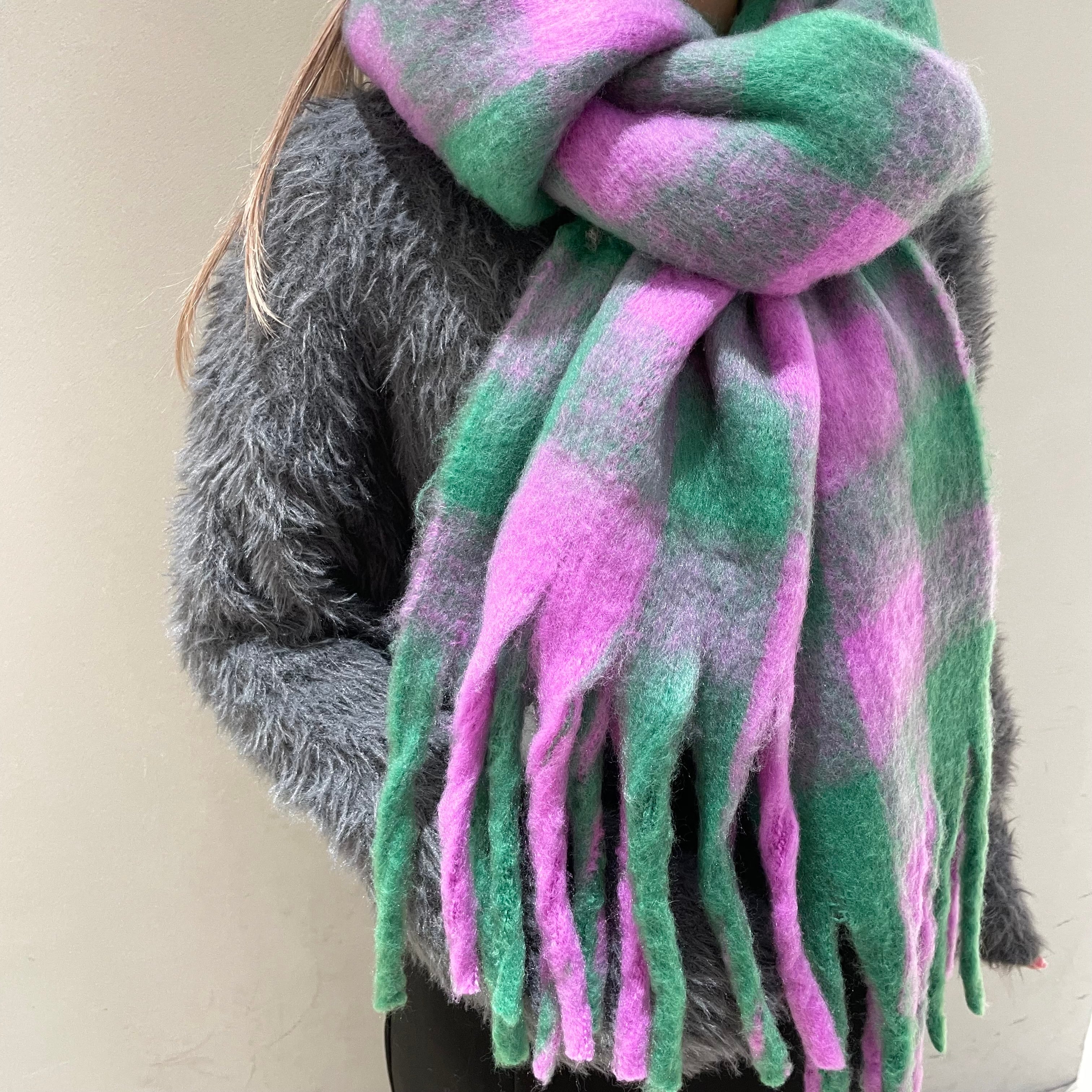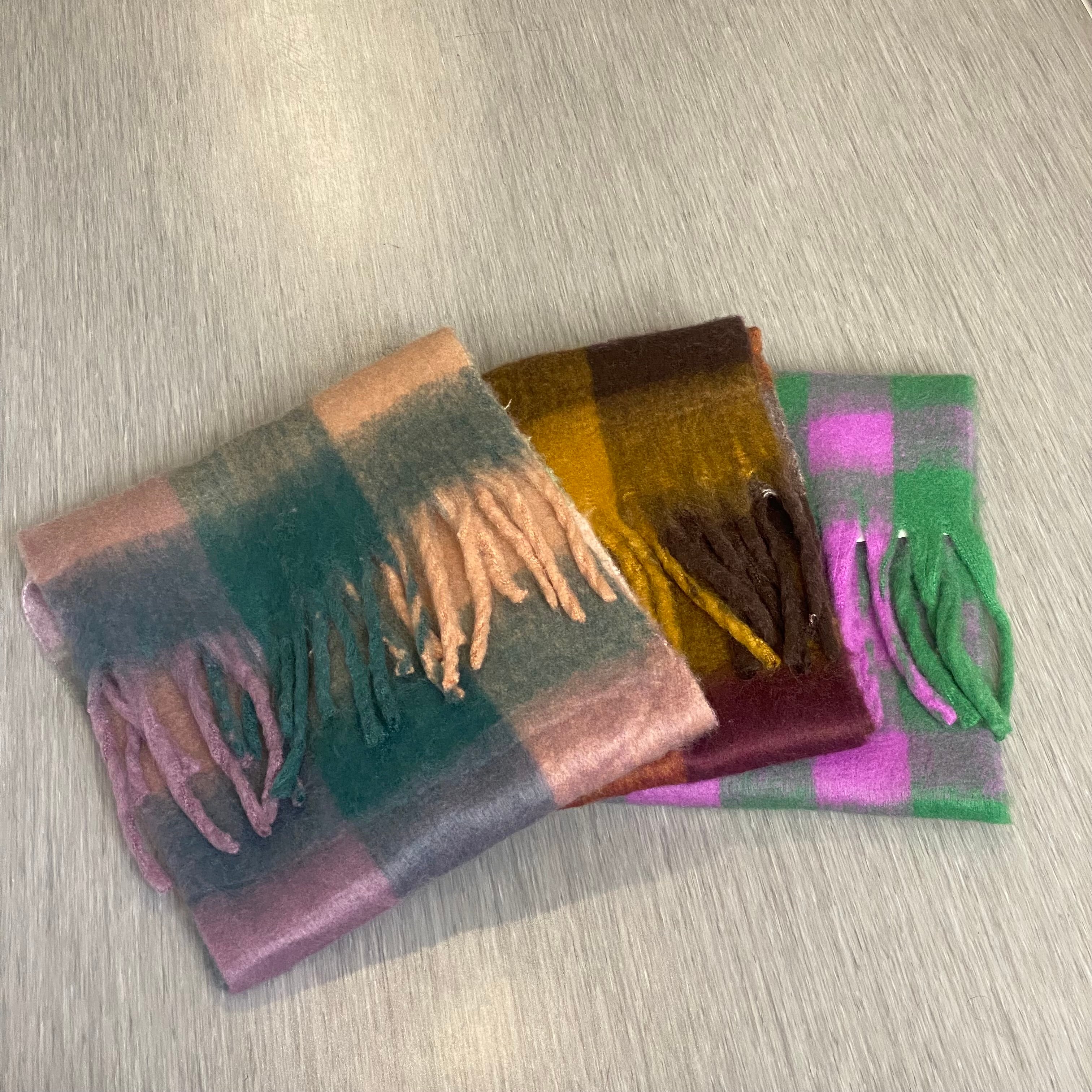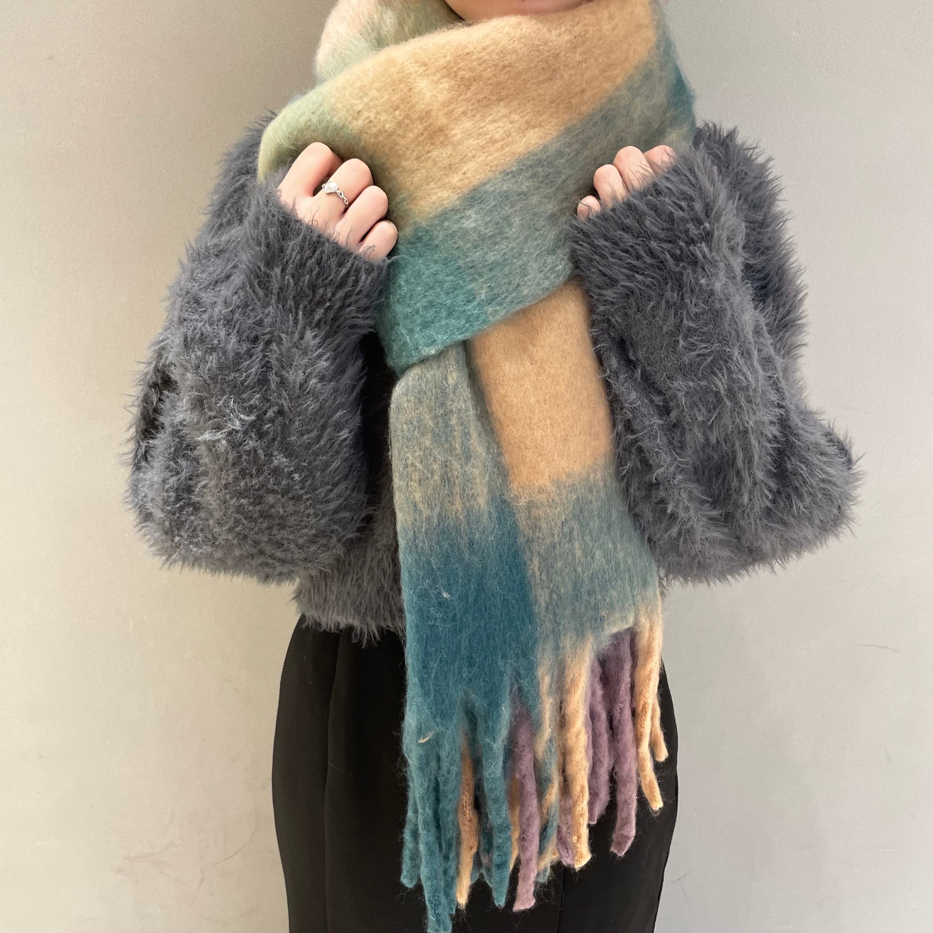 ふんわりボリューム感が堪らないチェック柄大判マフラーのご紹介です♪