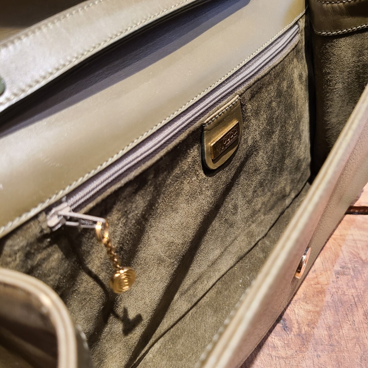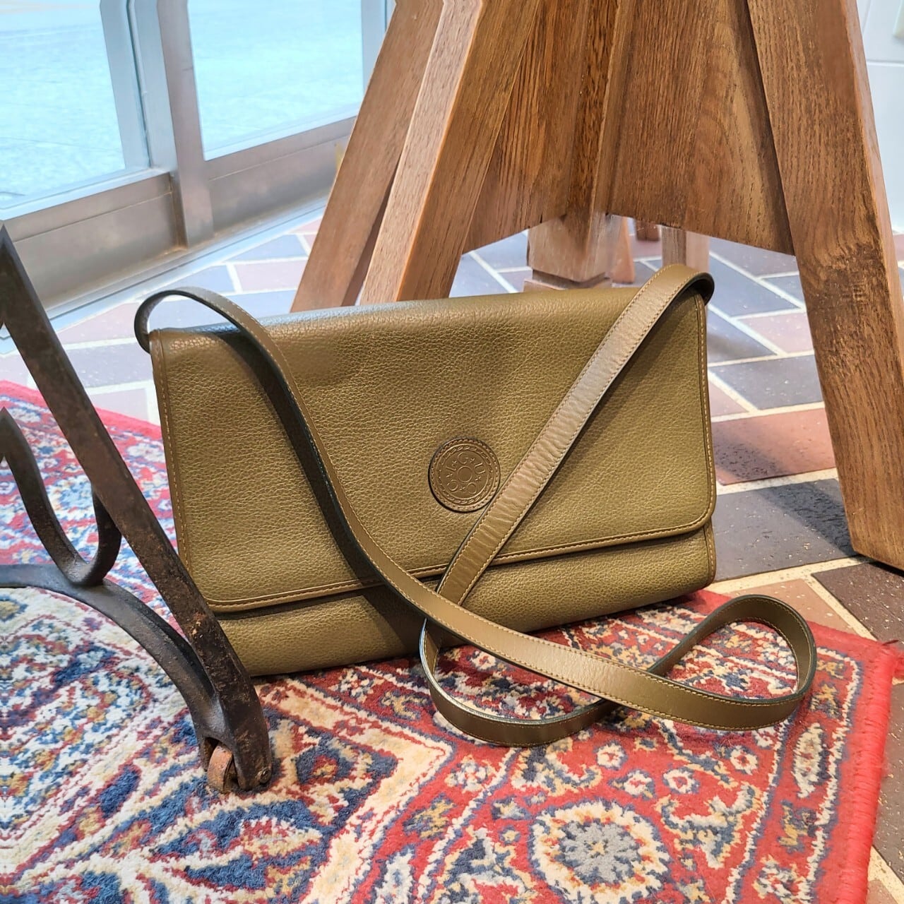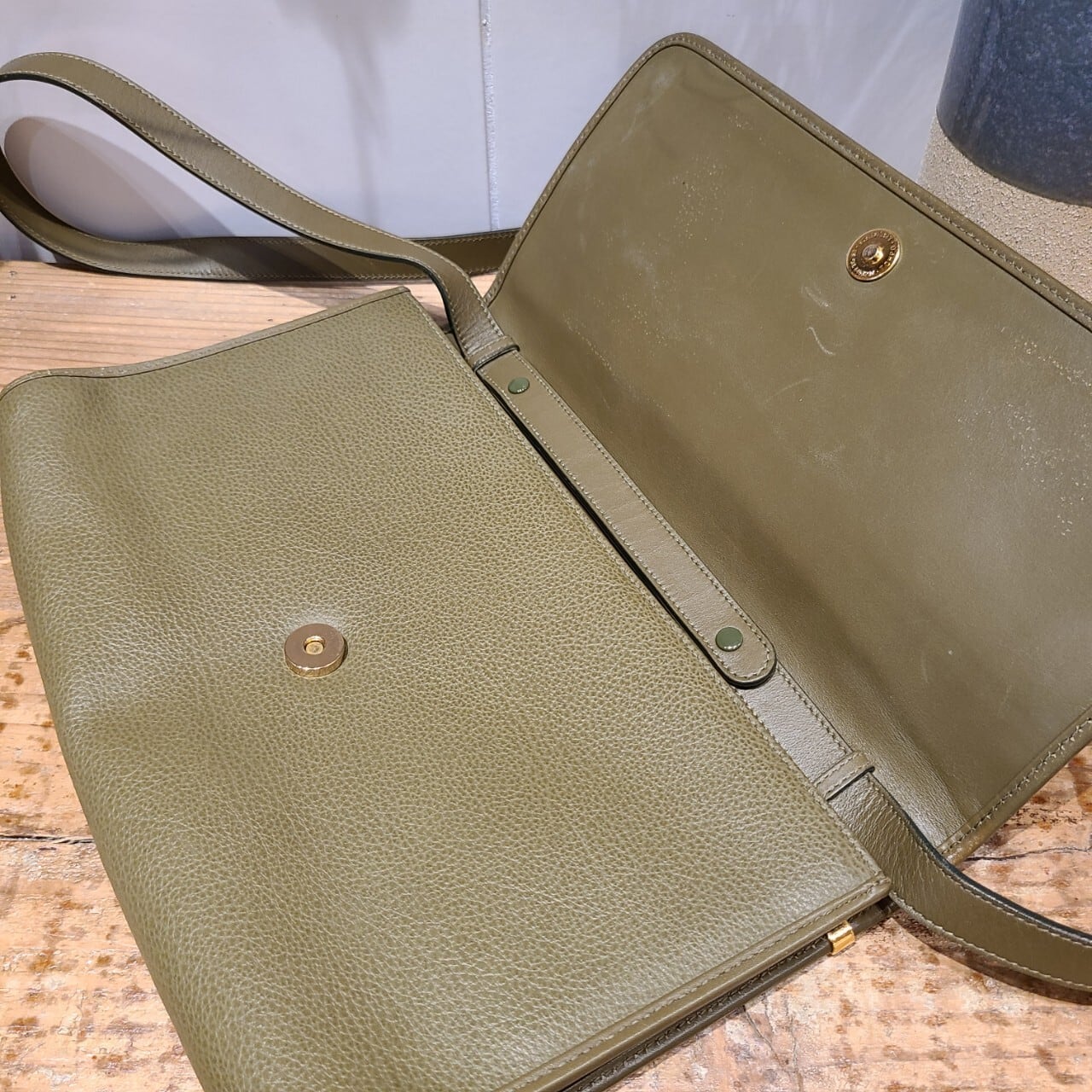 柔らかいカーキカラーが目を惹くOLD GUCCIショルダーバッグ。