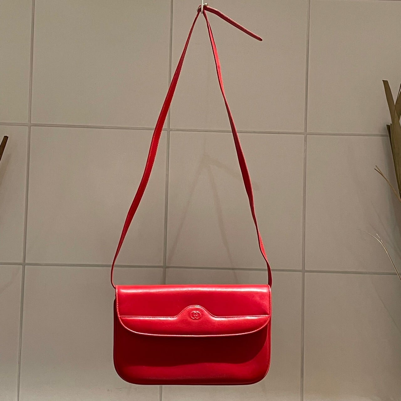 深みのあるレッドのOLD GUCCIショルダーバッグ。