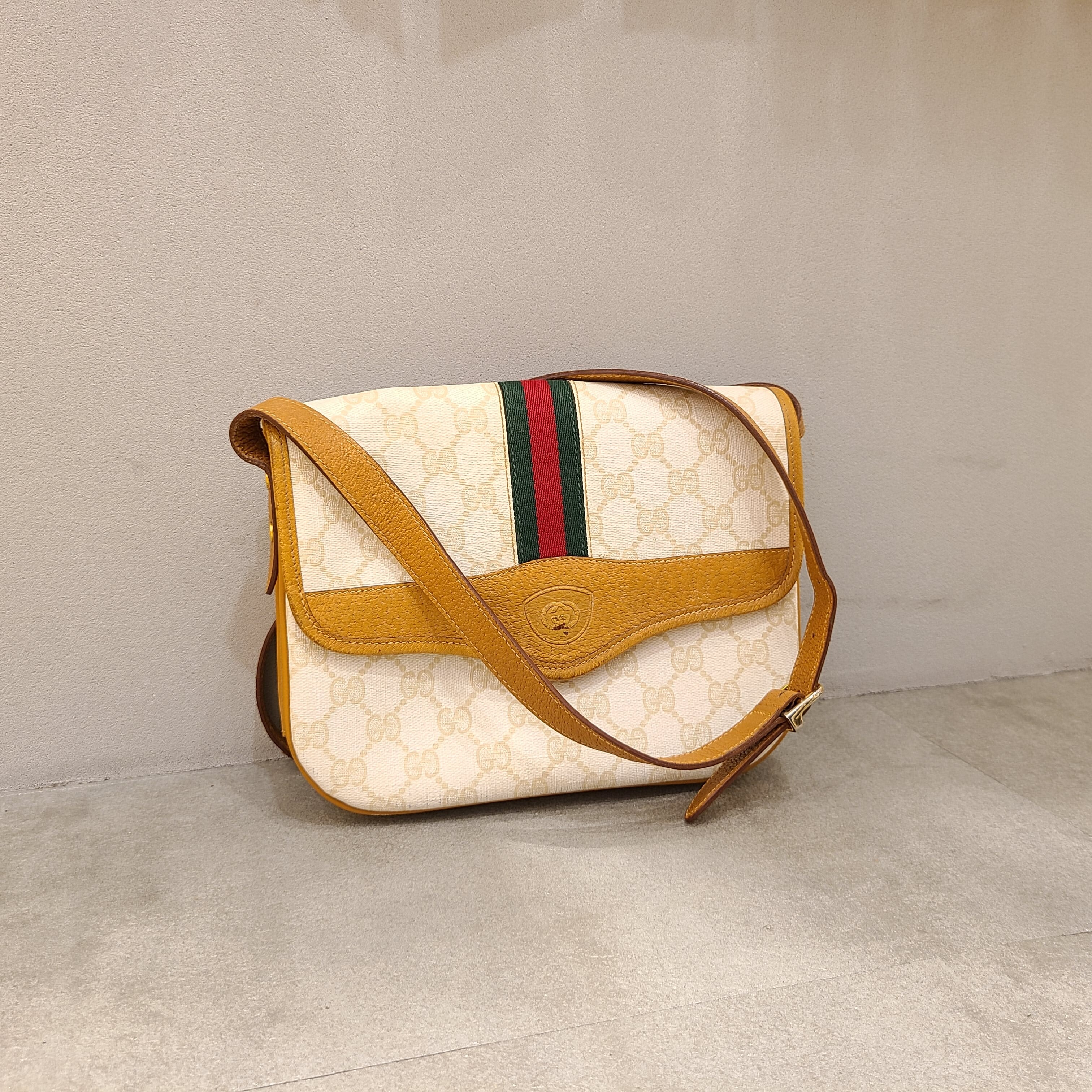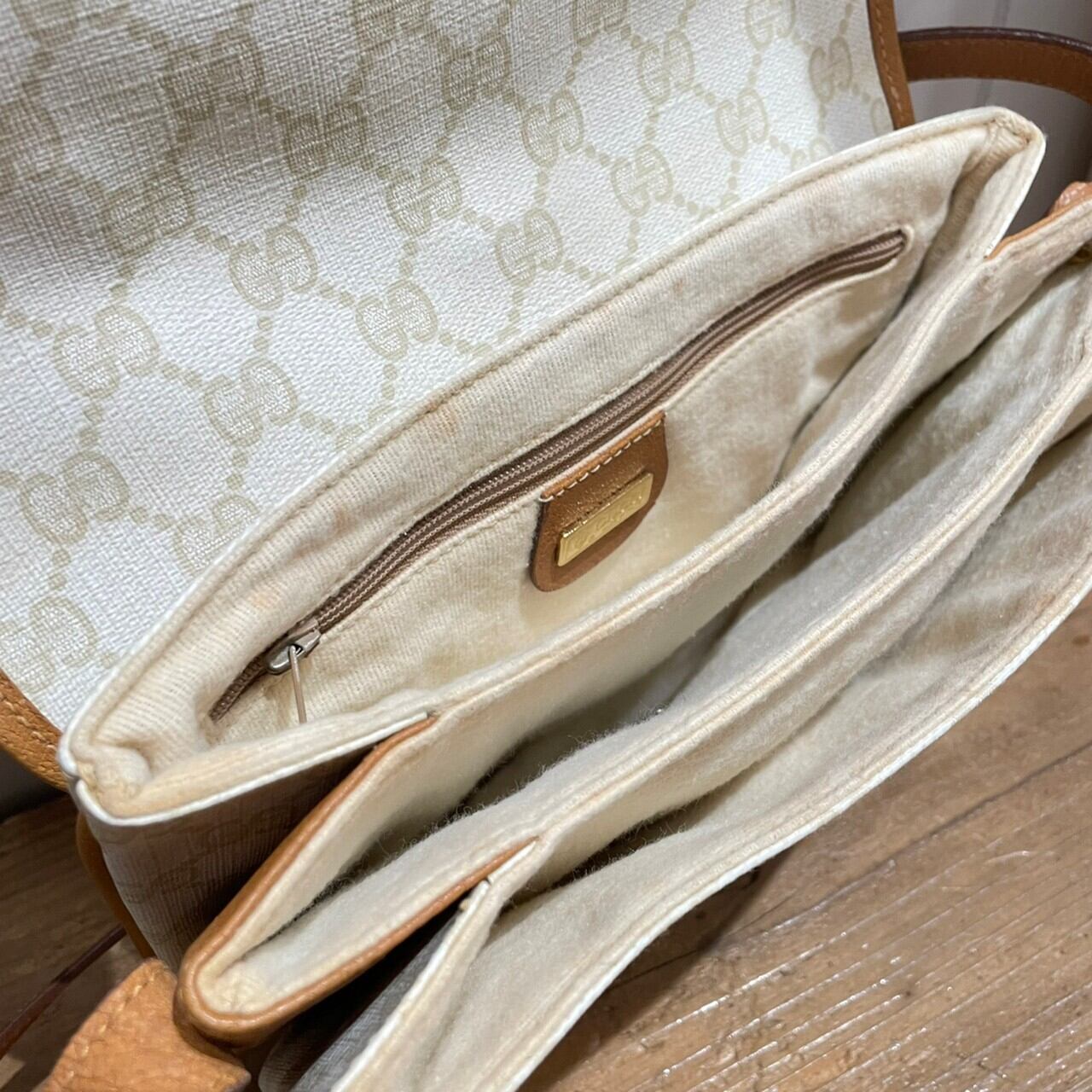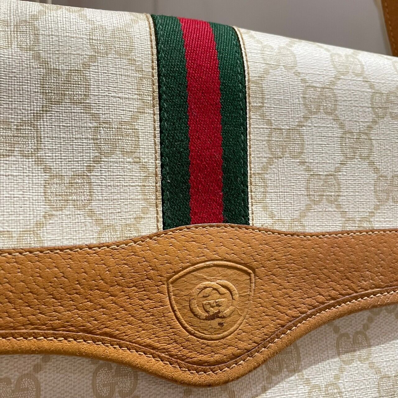 オフホワイトのボディが目を惹くOLD GUCCIのショルダーバッグ。