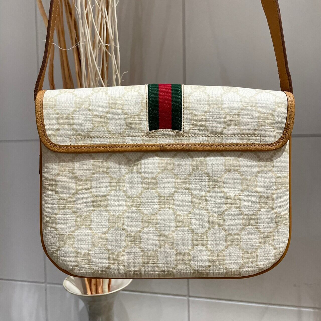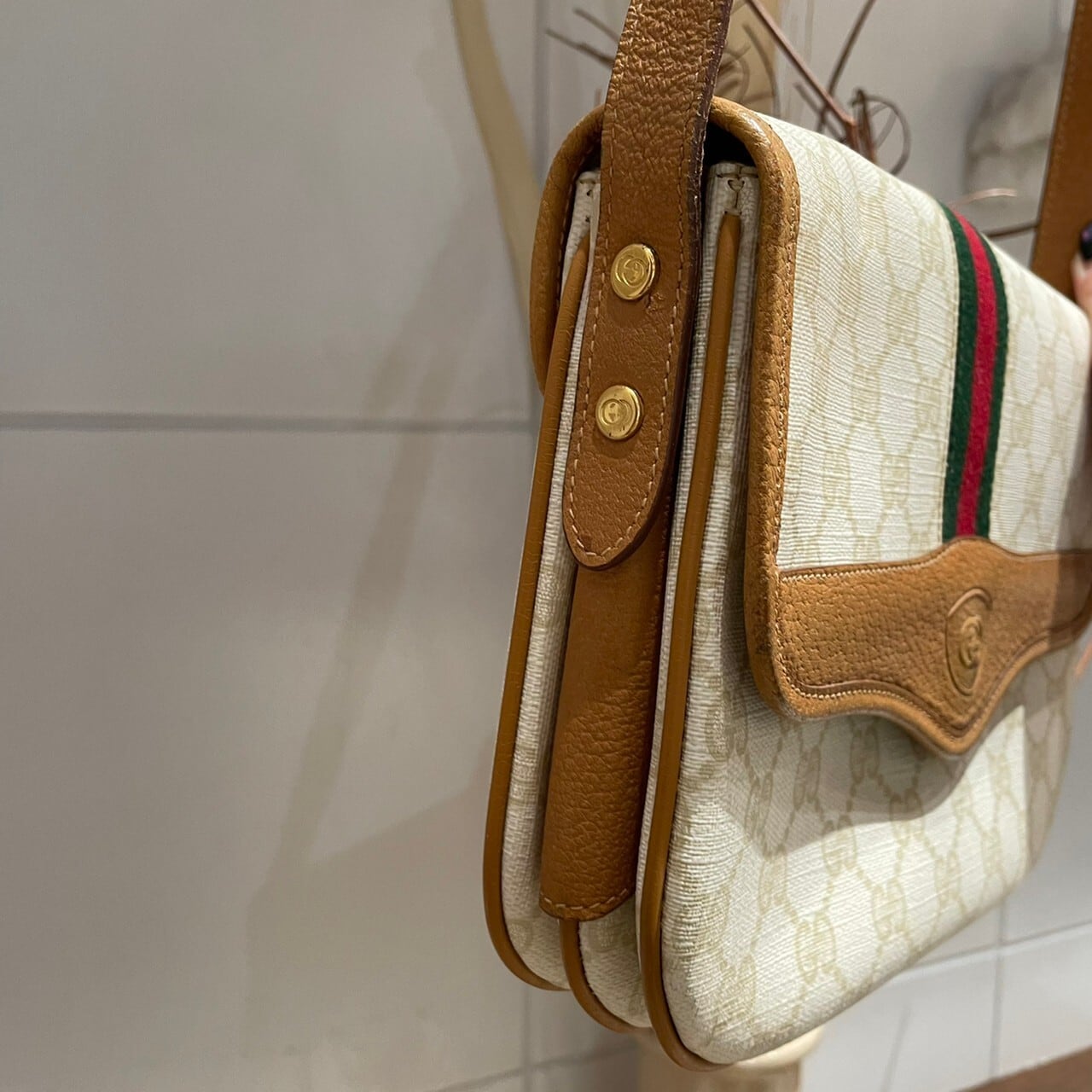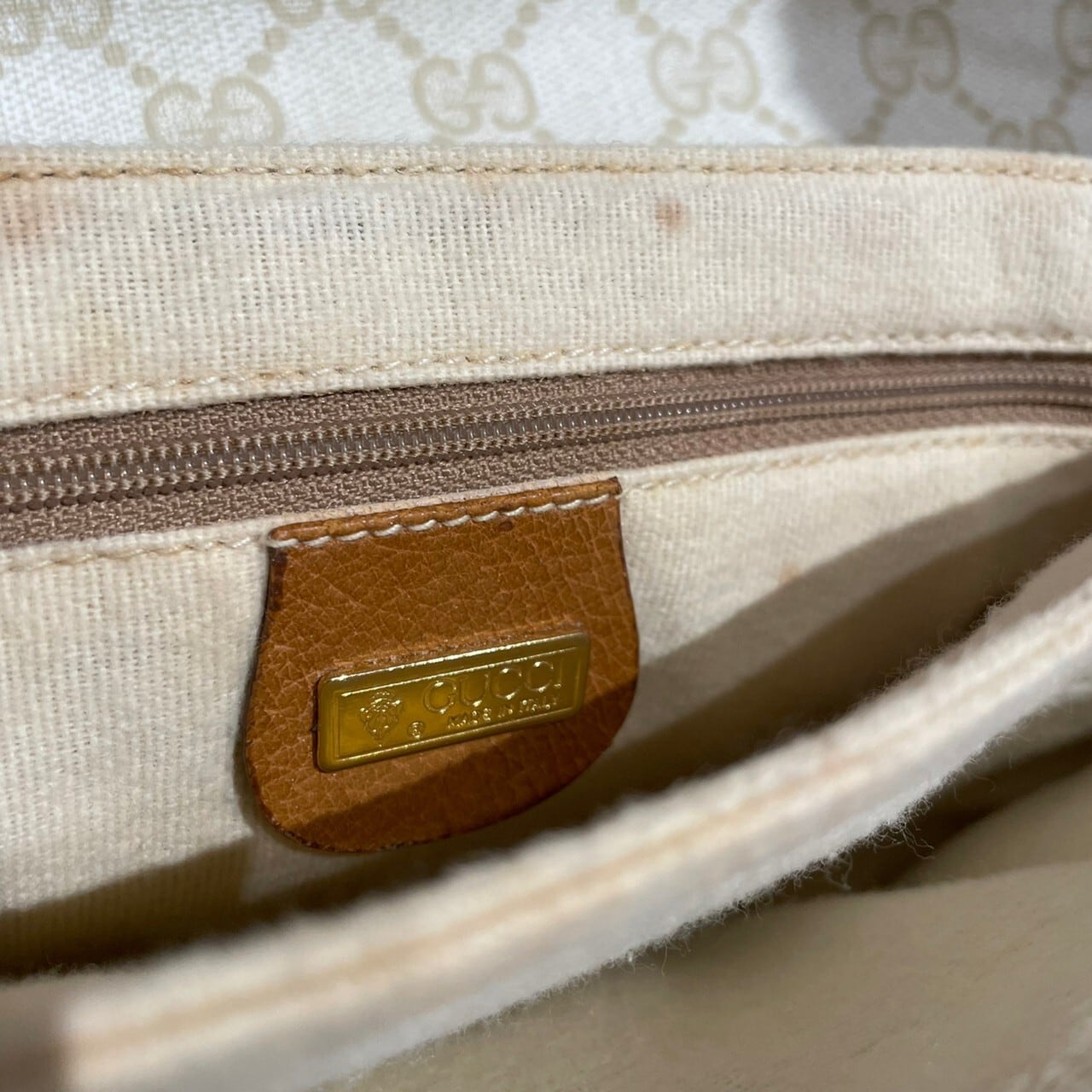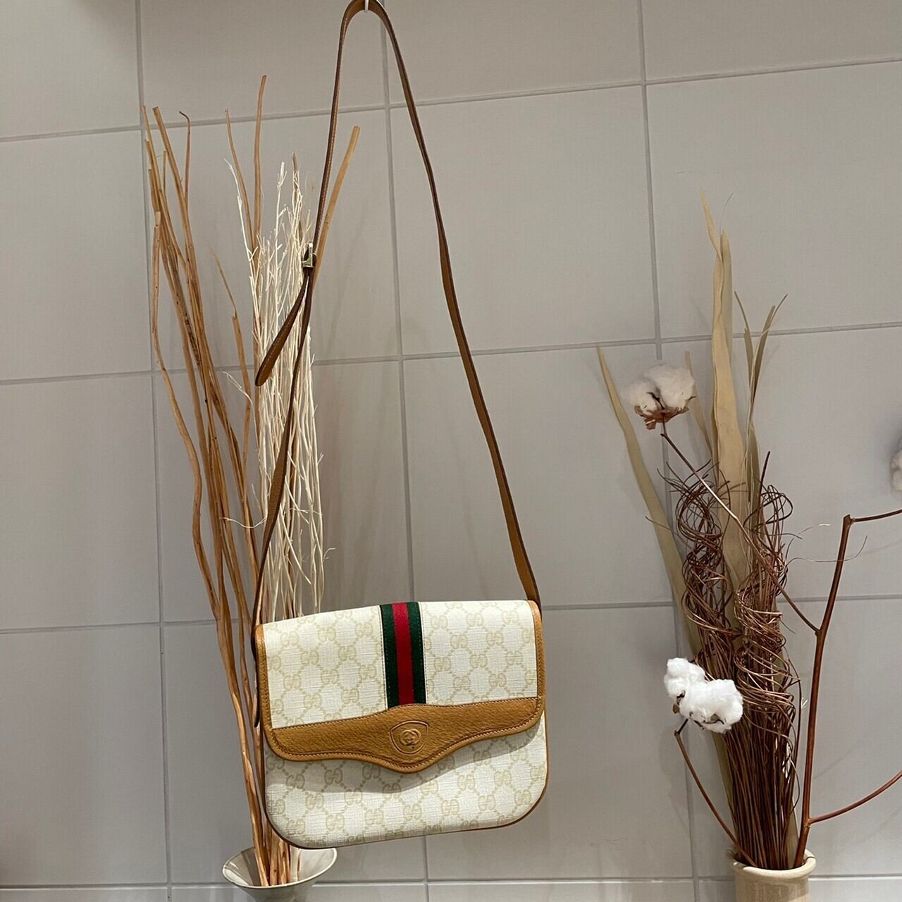 オフホワイトのボディが目を惹くOLD GUCCIのショルダーバッグ。