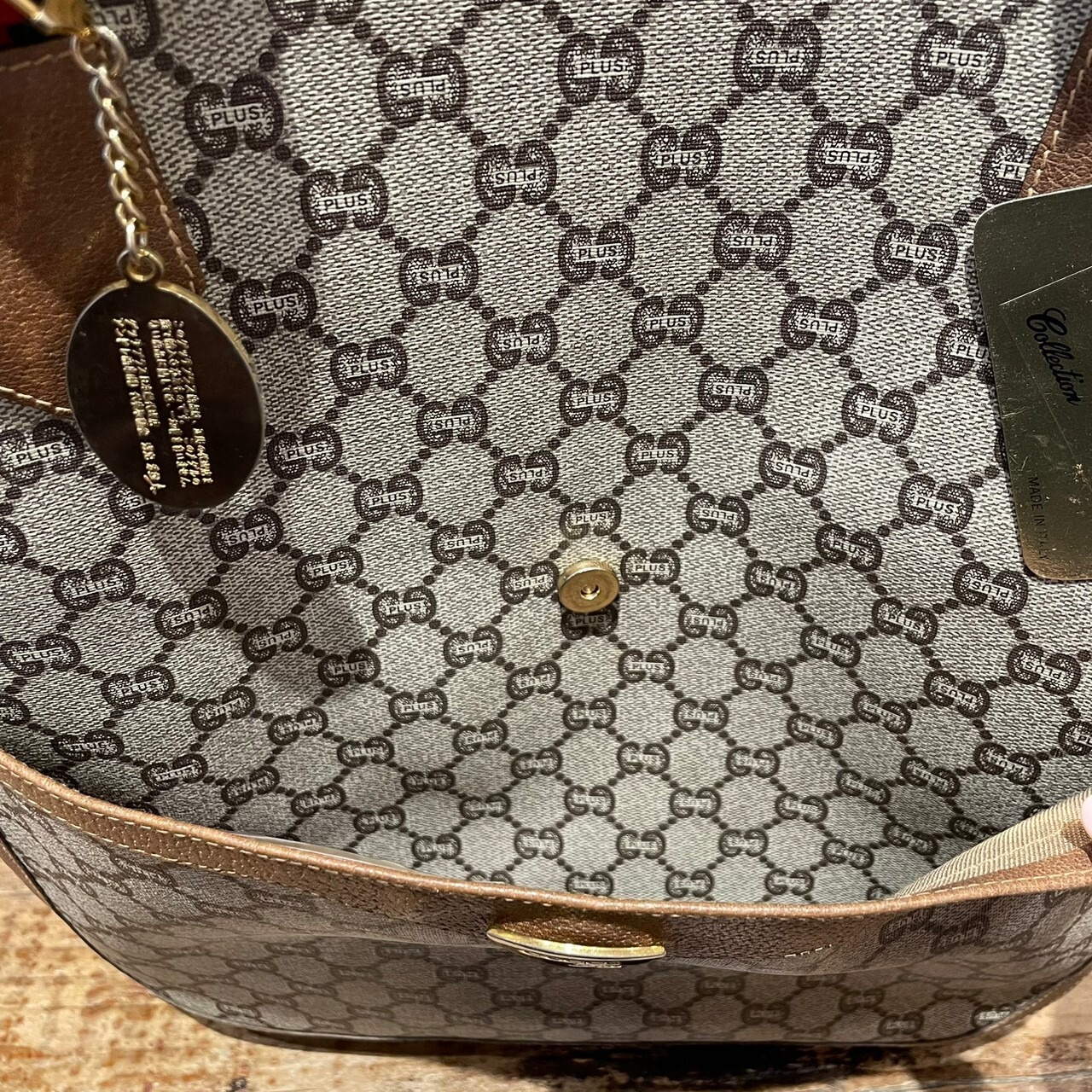 GUCCI定番のモノグラムが前面にプリントされたGUCCI Plusのトートバッグ。