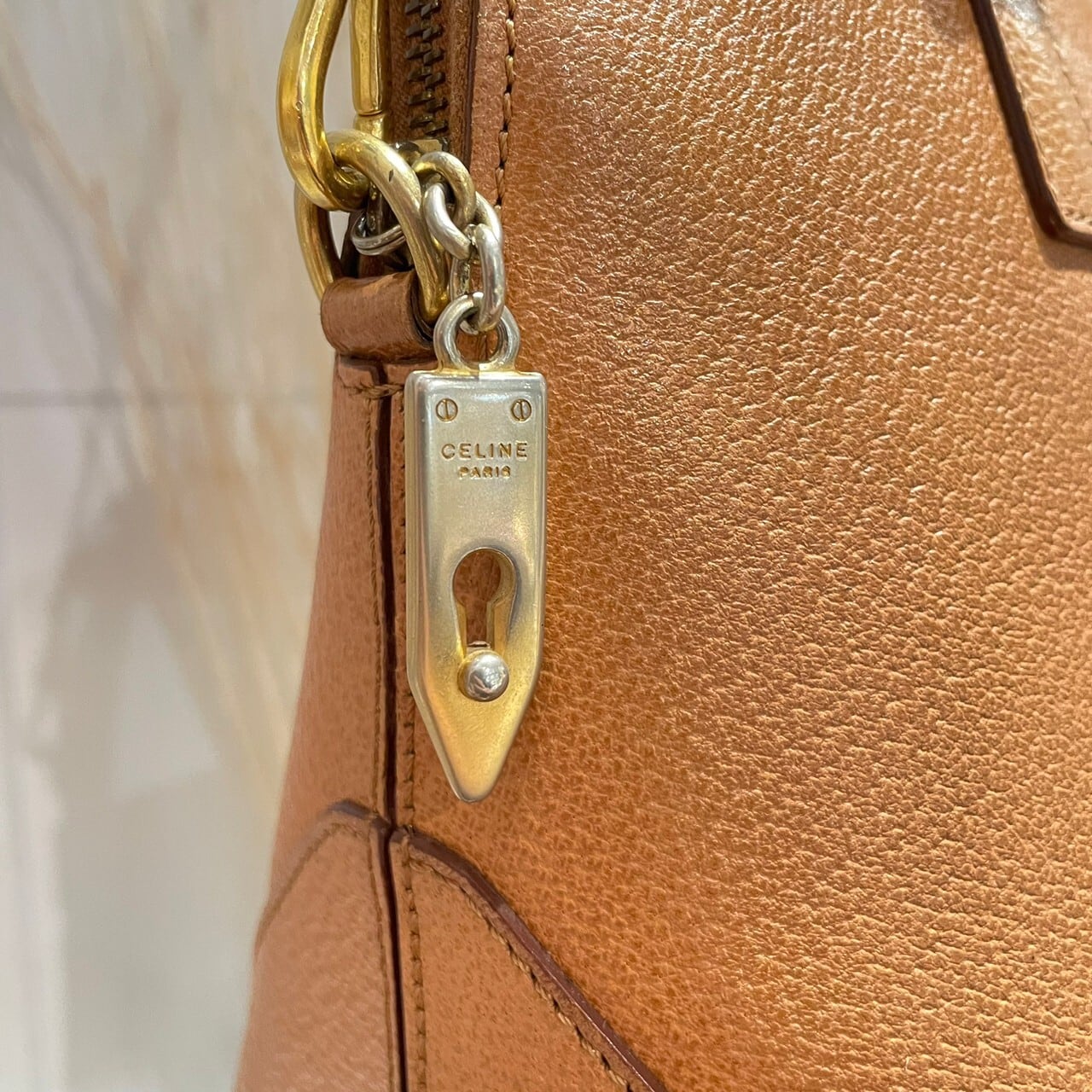 ジップ部分のゴールドチャームにはCELINEの刻印と鍵をモチーフとし、ブランドを主張しすぎないデザインにも心惹かれます。