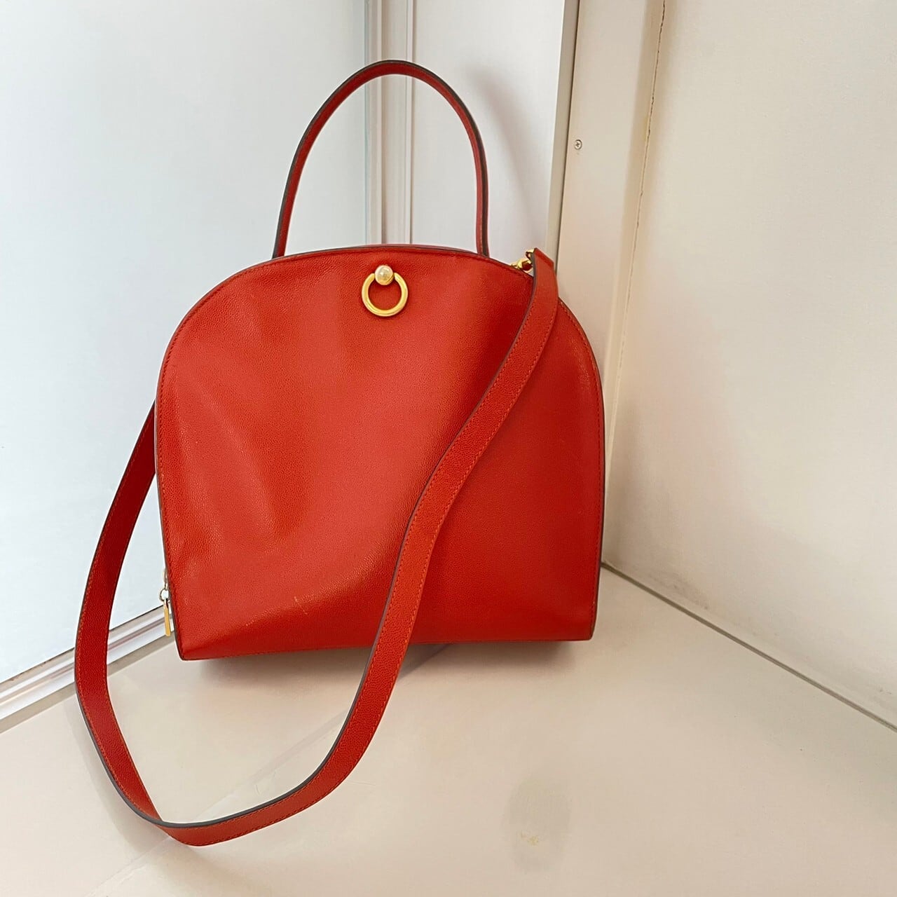 深みのあるレッドのショルダーバッグ。